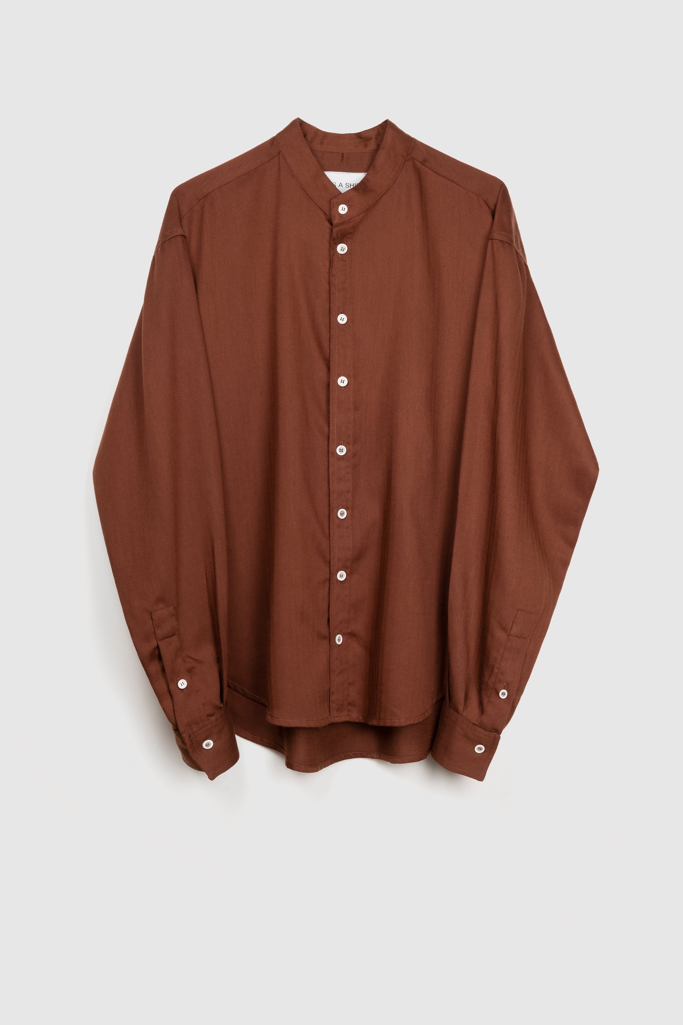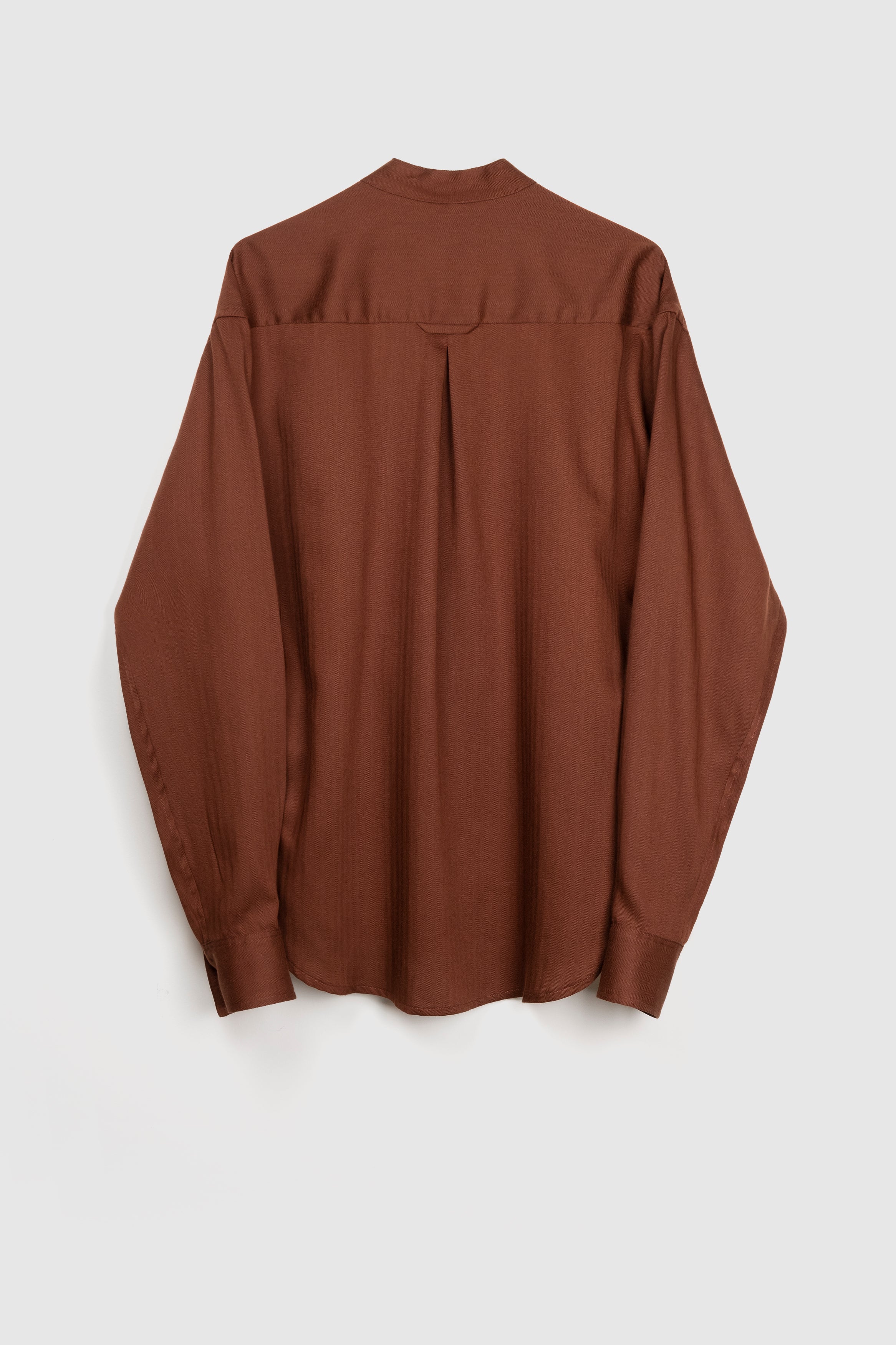 This long sleeve shirt was designed while having in our mind the falling leaves from trees as well as all the colours autumn portrays. It owns a unisex fit yet is characterised by curvy lines, has a round shape and a mandarin collar. Made from dead-stock herringbone mixed fabric, 50%cotton-50%viscose, this shirt is a timeless semi-weight garment which can be worn during any time of the day in fall/winter.