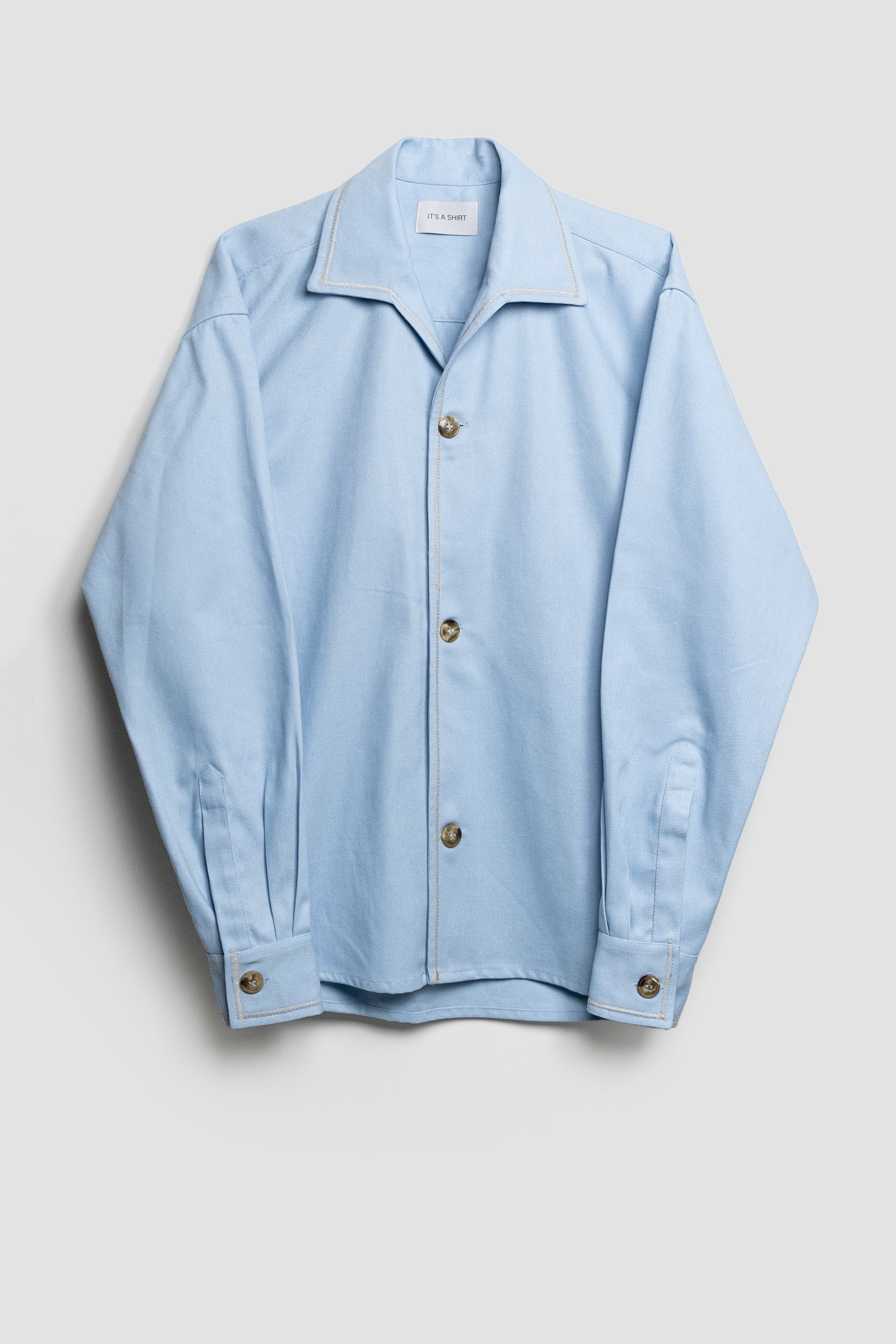 ANDERSON is a long sleeve unisex overshirt with a boxy fit. It owns a spread collar which is a continuation of its body, not a separate one. The garment is made of a heavy dead-stock textured cotton. Alongside the shirt there are three middle sized buttons as well as it is embellished with zig zag stitching. Limited garments available.