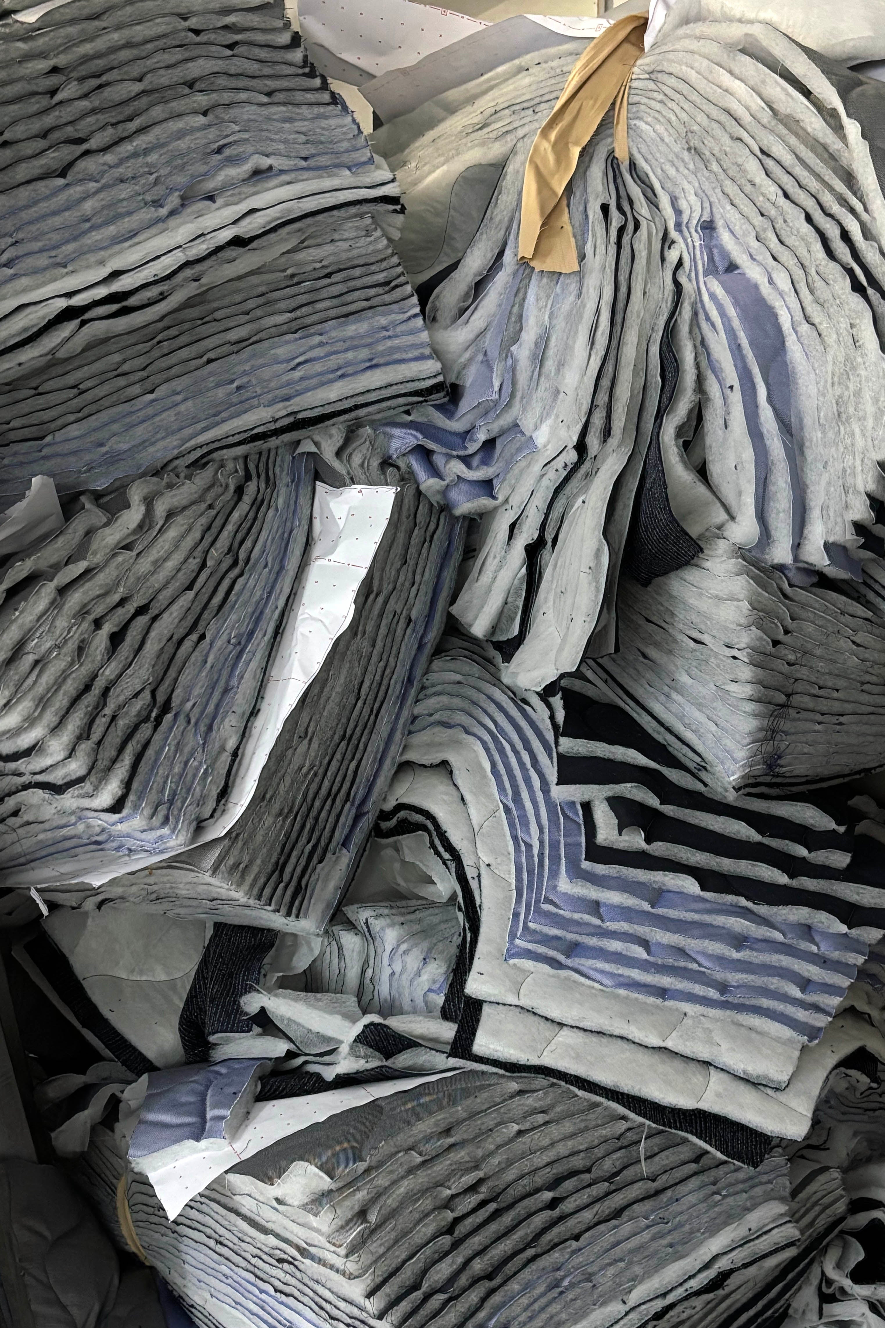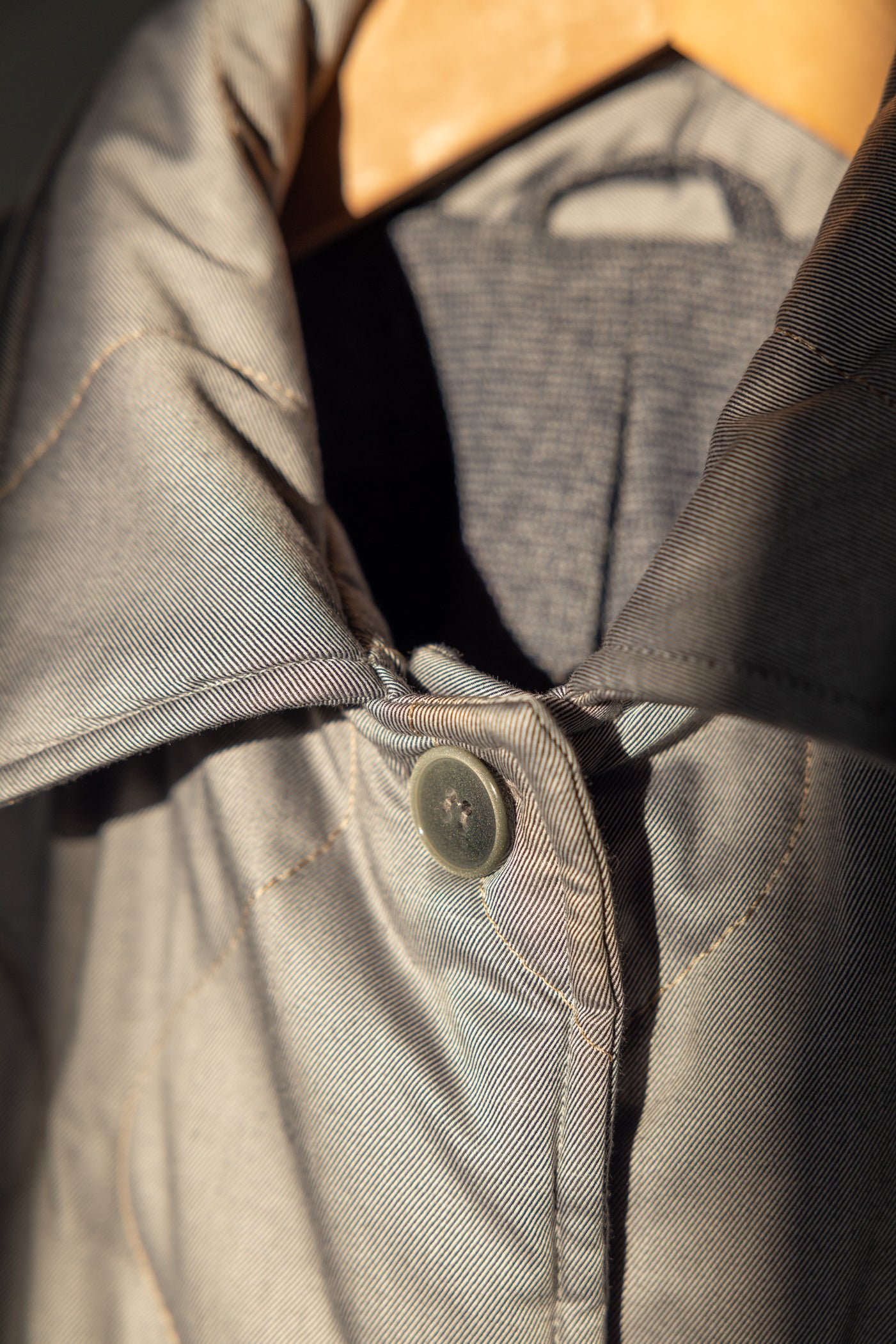 Firstly, we selected Swiss shirt poplins and transformed them into quilted fabric. The color of the FULL MOON jacket is a metallic grey, with beige stitching that runs along its surface. It features two aligned flat pockets and large bone dead-stock buttons as well as a three dimensional padded surface. The process of cutting, sewing, and finishing was a lengthy one due to the thickness of the fabrics their linings. To ensure the jacket is warm enough for colder days, we crafted the inner lining from dead-stock dark blue/grey wool from France and added a delicate hidden pocket for functionality. As this is our first attempt at creating such an outerwear, we hope you embrace it and have it as a long-lasting part of your wardrobe, accompanying you through each and every winter day. Stay cozy and warm while wearing a garment you truly deserve!