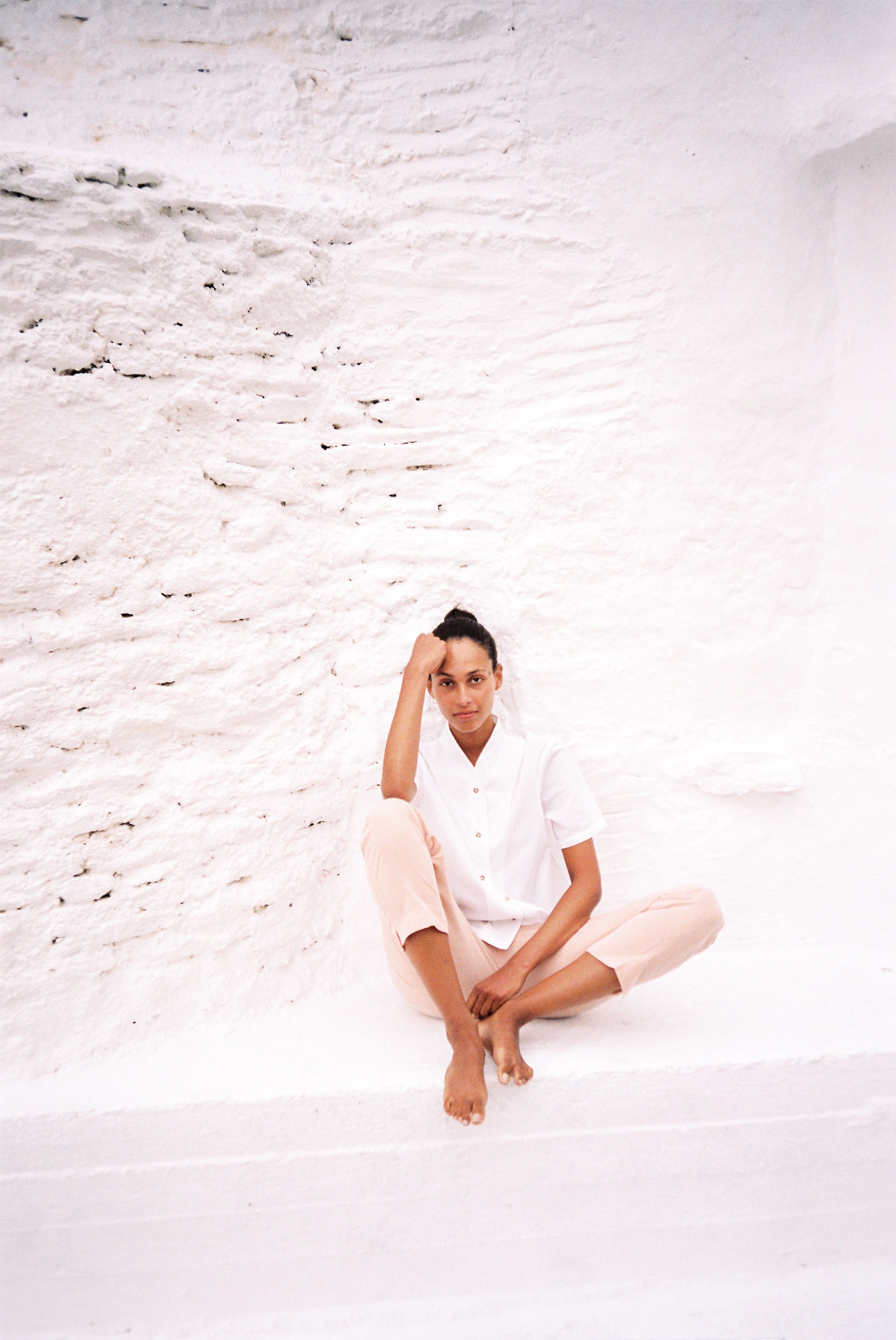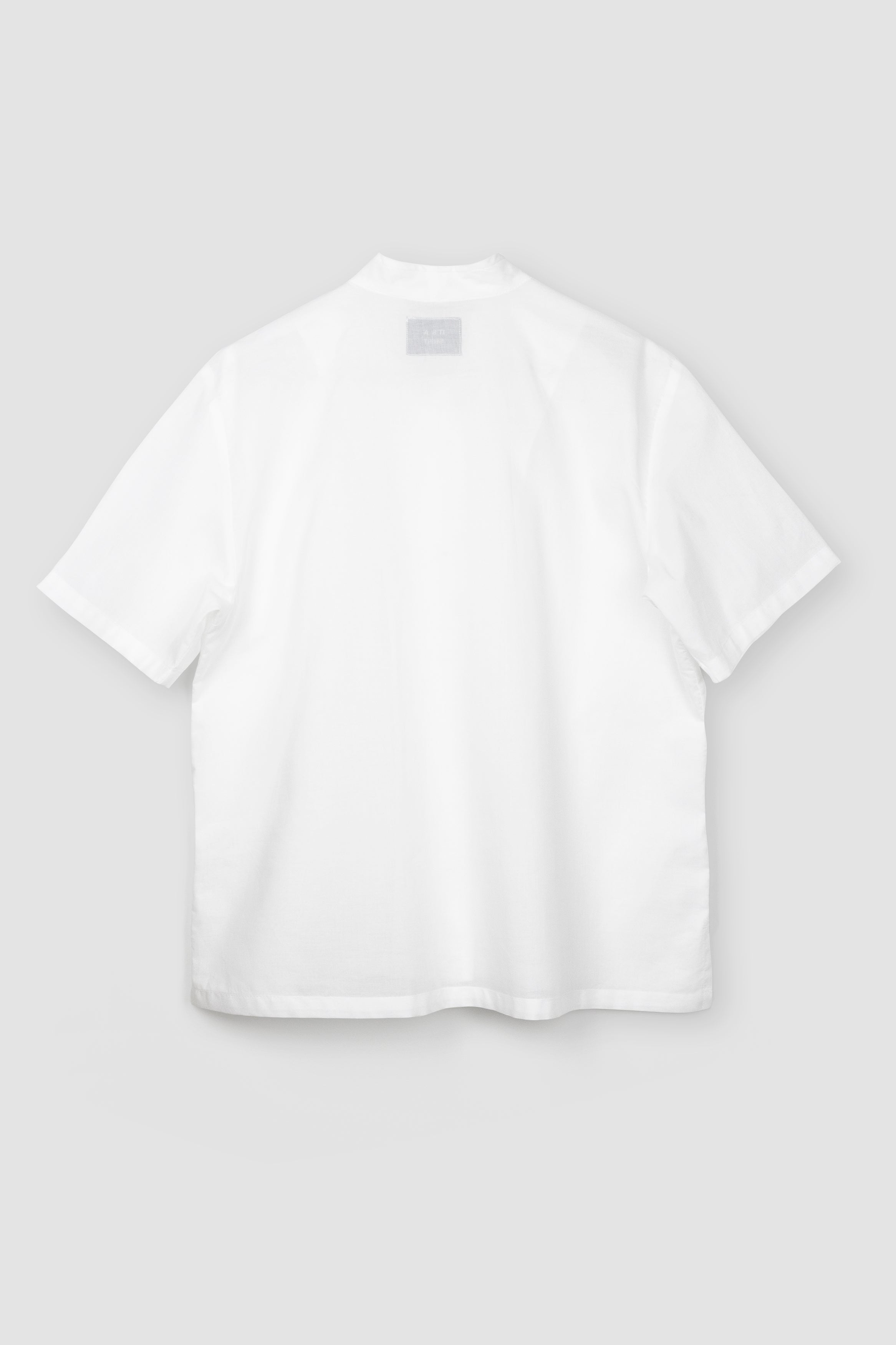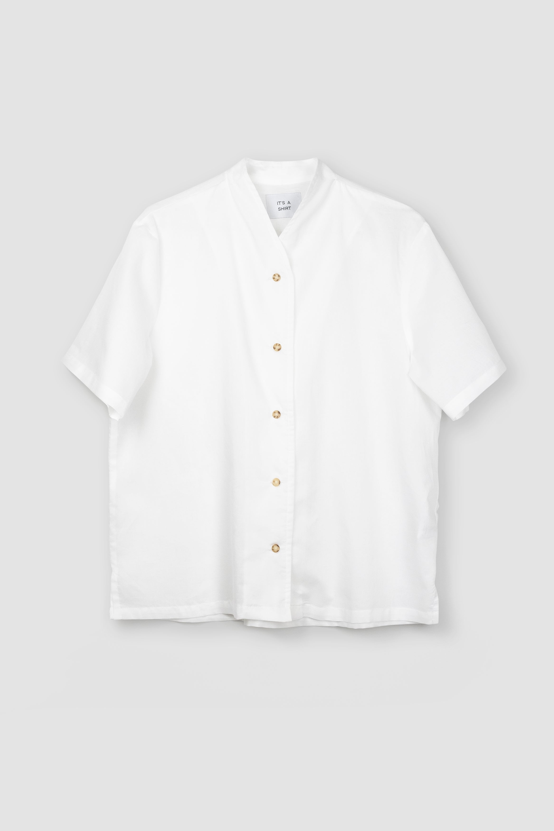 Sailor is a short sleeve shirt with a V-neck collar inspired by the Japanese wafuku robes. Its boxy-squared cut makes it unisex and easy-to-wear as an every day garment owing a delicate collar shape. To create this garment we used white voile cotton produced in Greece as well as tortoise bone buttons. Limited pieces available.