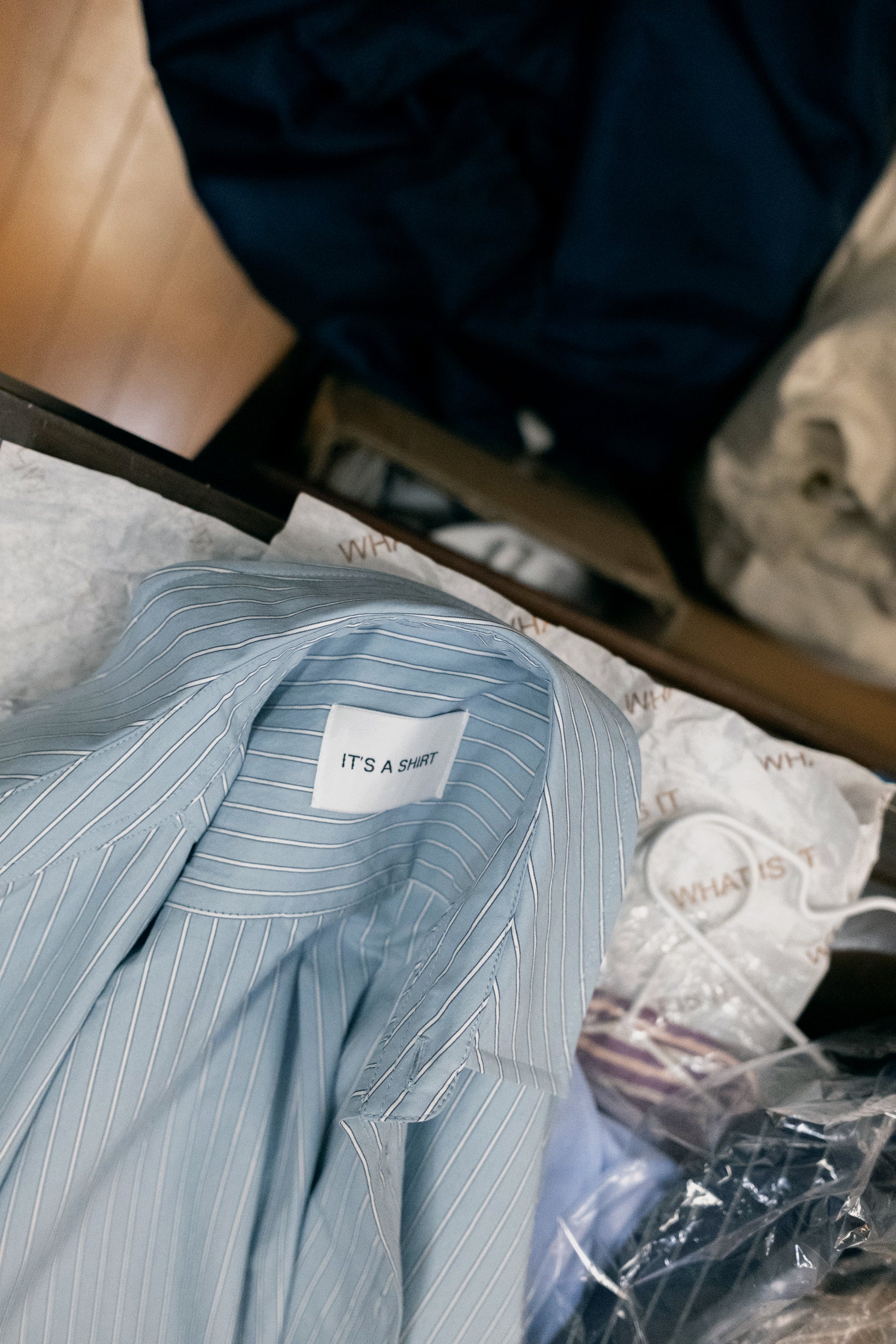 We produce and curate our garments from soup to nuts. Our materials are sourced in Greece. Many fabrics we use are produced in Italy, France and Switzerland. Each and every shirt is curated and produced in our family production space located a few minutes away from our physical store in Athens. Our products are exclusively available in our physical and online store. No wholesale because of our limited quantities.
