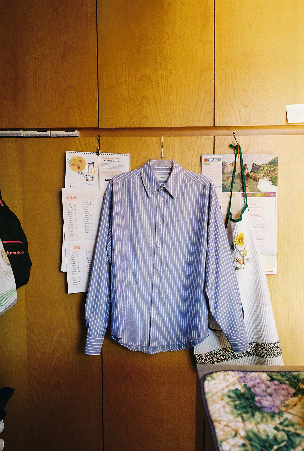 Long story short it is our long sleeve timeless unisex shirt with a contemporary twist. Its relaxed yet neat fit makes it appropriate to accompany you during the whole day on every occasion. It is made from Italian striped oxford cotton and finished with white matte buttons. Each and every shirt is produced in our small-family-production space. This shirt is made to last and be worn during any season.