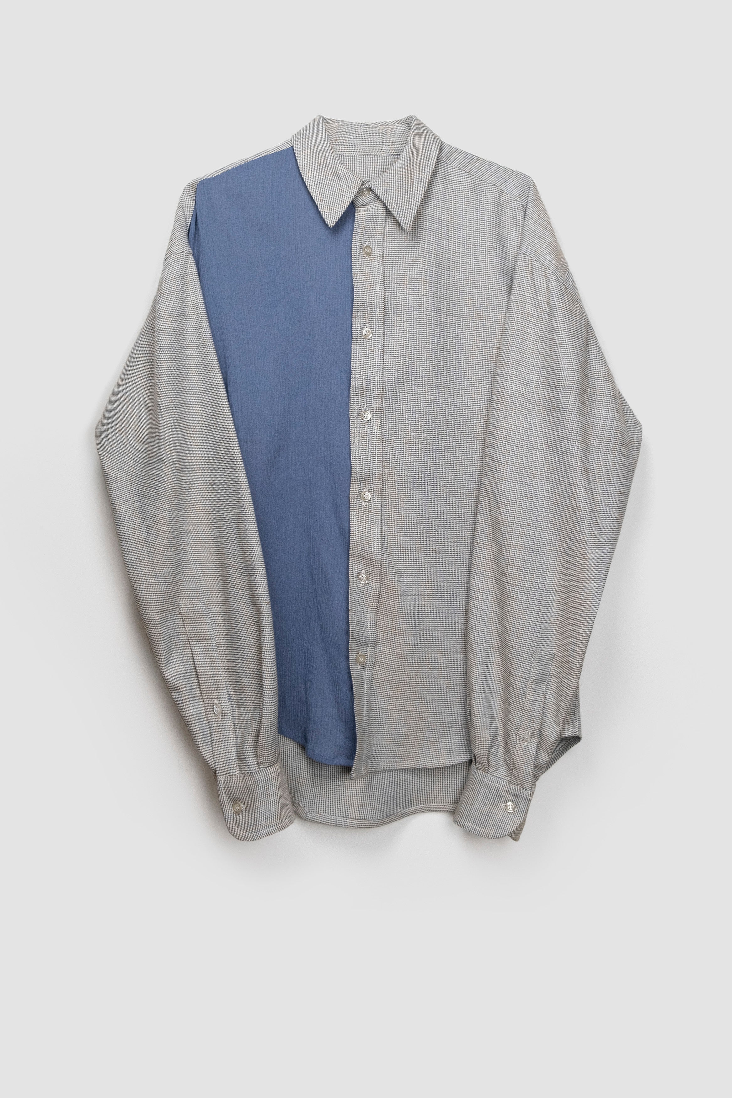 Long story short it is our long sleeve timeless unisex shirt with a contemporary twist. Its relaxed yet neat fit makes it appropriate to accompany you during the whole day on every occasion. It is made from Italian wool and dead-stock gauze cotton, finished with light grey pearl buttons. Each and every shirt is produced in our small-family-production space. This shirt is made to last and be worn during any season.