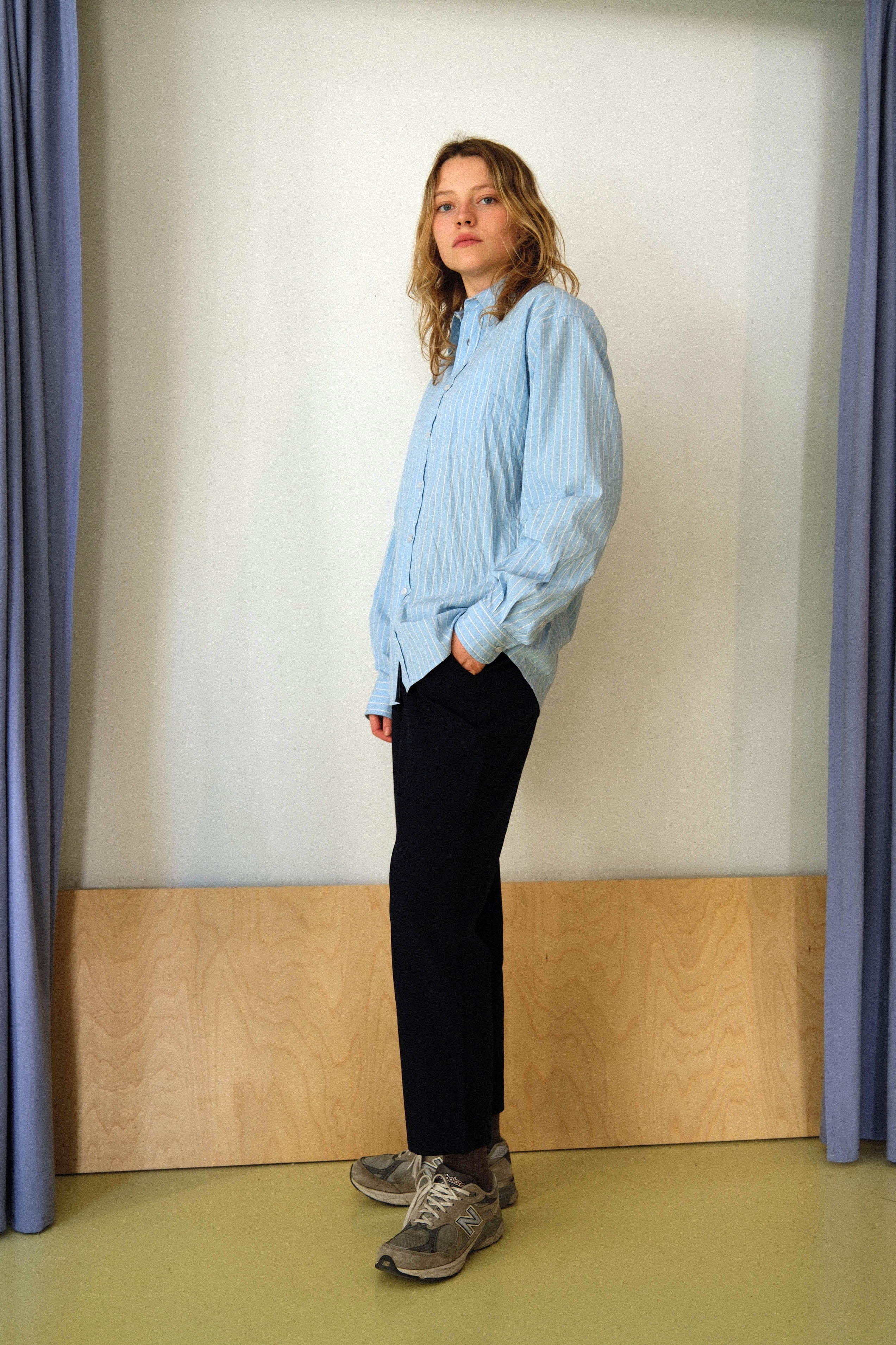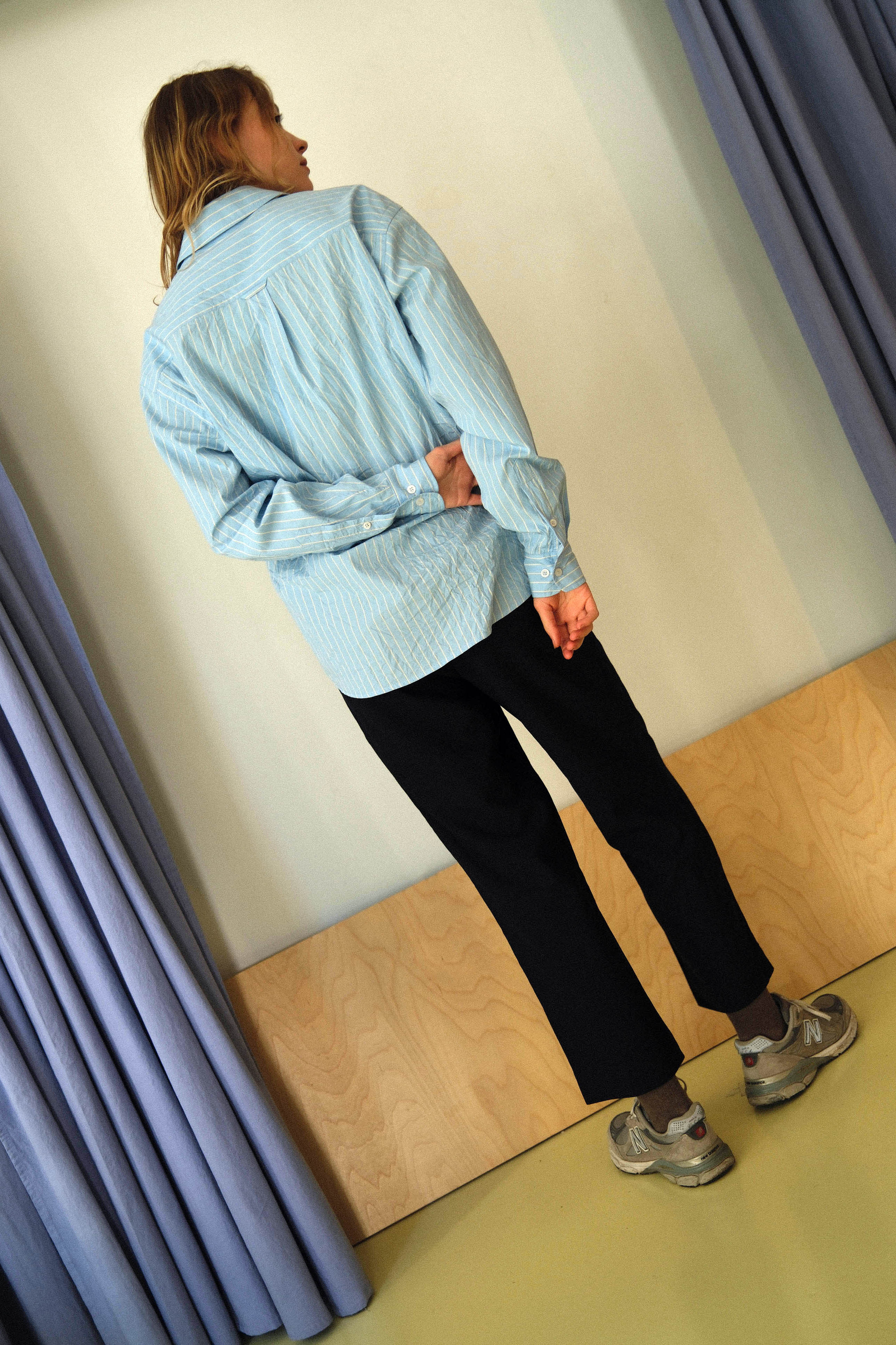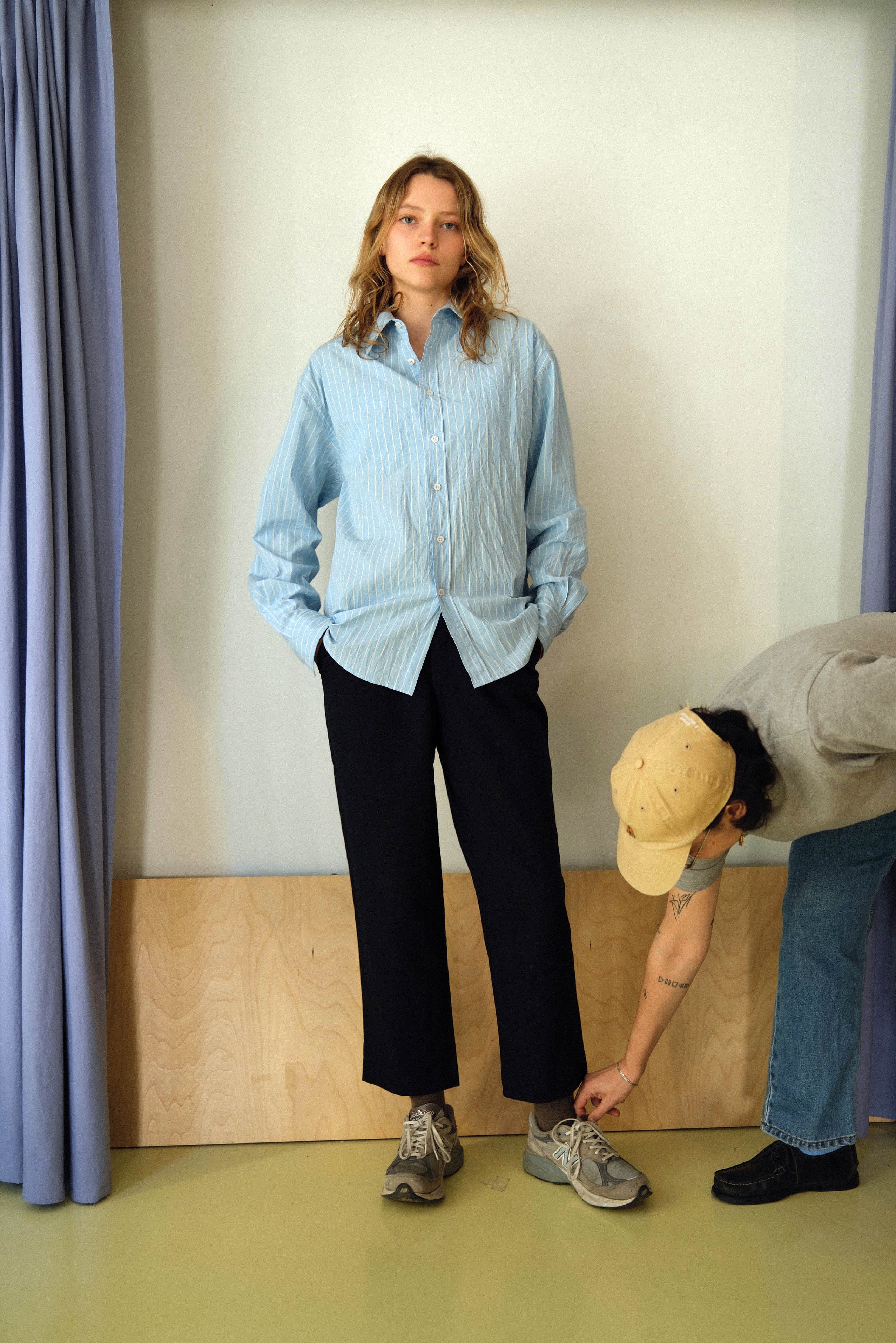 This timeless long-sleeve unisex shirt features a contemporary twisted fit that strikes the perfect balance between relaxed and refined, making it an ideal companion for any occasion throughout the day. Crafted from crispy wrinkled poplin with stripes produced in north Italy, the shirt shapes a sleek silhouette and is beautifully finished with white matte bone buttons. Each garment is produced in our family-run workshop, ensuring quality and care in every piece. Designed for durability, DRY CLEAN classic is a versatile clean cut shirt for every season, on any occasion. Limited pieces available.
