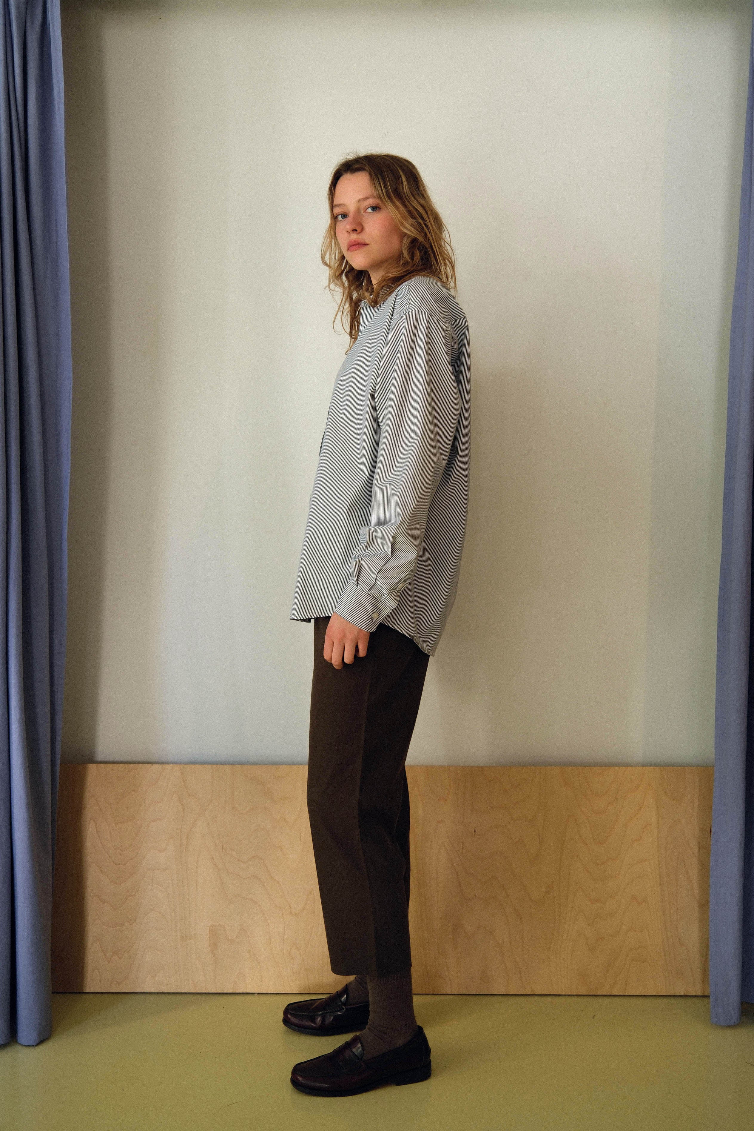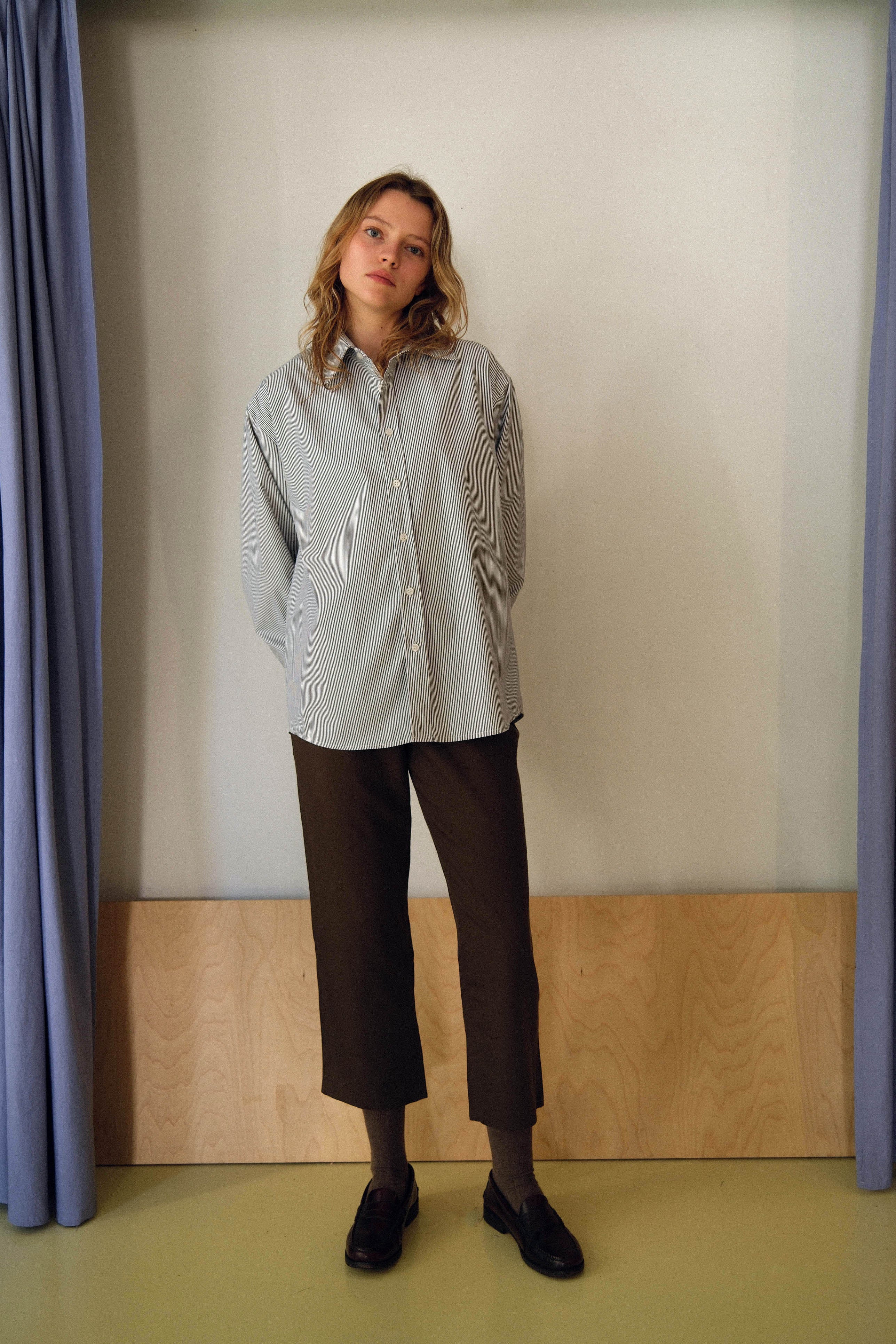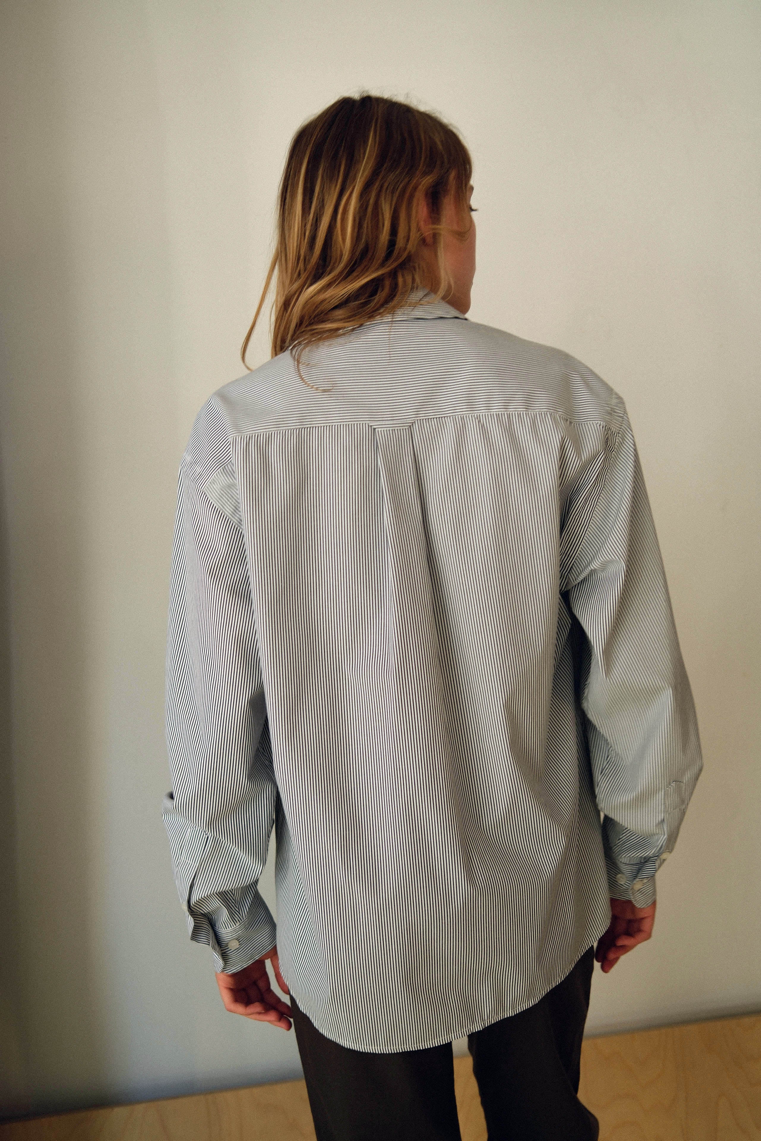 This timeless long-sleeve unisex shirt features a contemporary twisted fit that strikes the perfect balance between relaxed and refined, making it an ideal companion for any occasion throughout the day. Crafted from a soft yet crispy striped thin poplin from north Italy, the shirt shapes a sleek silhouette and is beautifully finished with white matte bone buttons. Each garment is produced in our family-run workshop, ensuring quality and care in every piece. Designed for durability, Family Classic is a versatile shirt for every season, on any occasion.