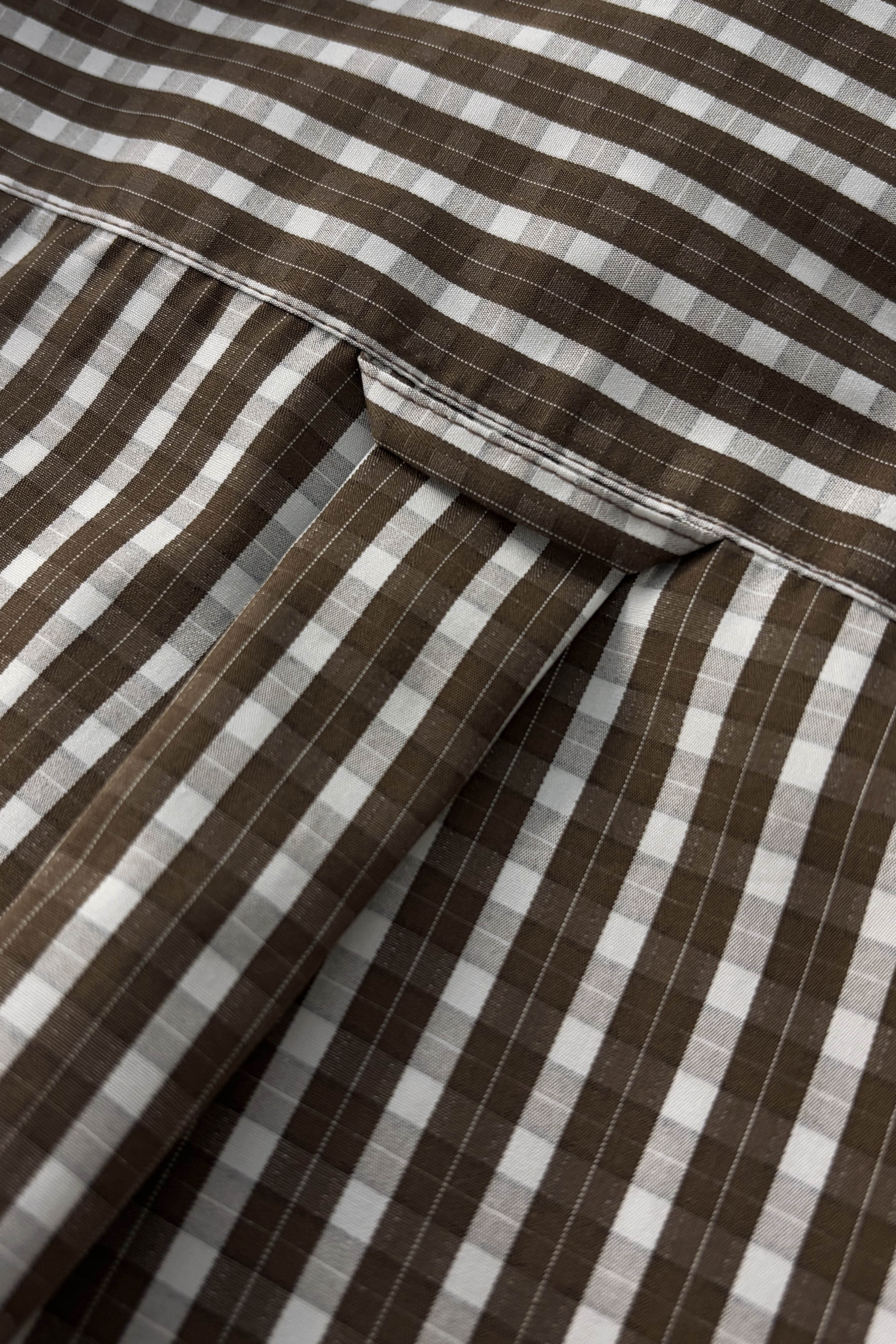 Our timeless long-sleeve unisex shirt features a contemporary fit that strikes the perfect balance between relaxed and refined, making it an ideal companion for any occasion throughout the day. Crafted from semi-thick, dark brown, checkered cotton from Italy, the shirt shapes a sleek silhouette and is nicely finished with natural mother or pearl buttons. Each garment is produced in our family-run workshop, ensuring quality and care in every piece. Designed for durability, FILTER COFFEE classic is a garment for every season, on any occasion.