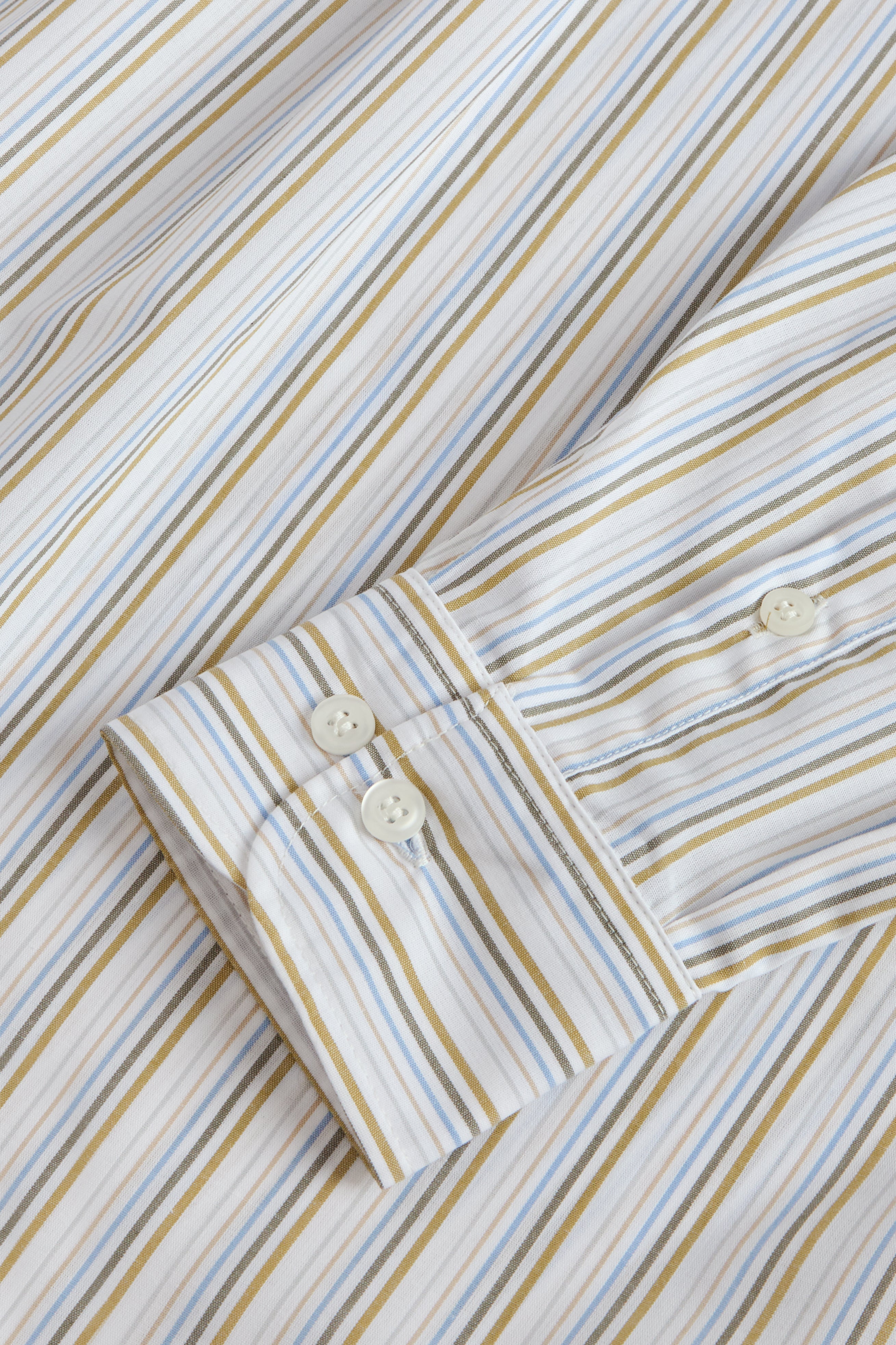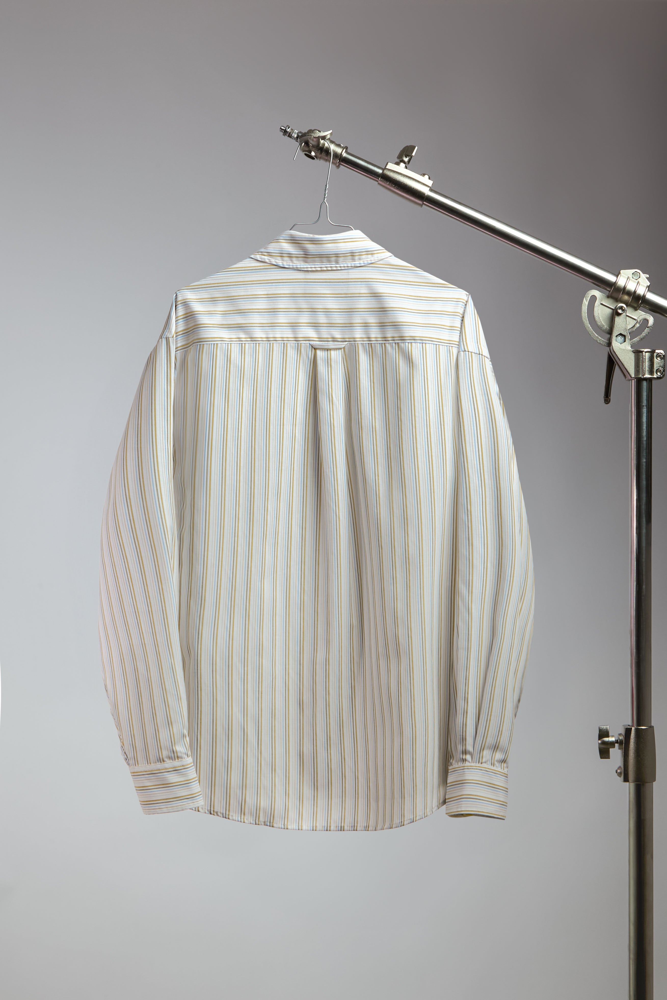 Hang out shirt belongs to our CLASSICS collection. It's our long sleeve timeless unisex shirt owning a contemporary loose fit. Its relaxed yet neat flow makes it appropriate to accompany you during the whole day on every occasion. The garment been crafted from light-weight Italian cotton with pastel-nude stripes on its white surface and finished with white matte bone buttons. Each and every shirt is produced in our small-family-production space. This shirt is made to last and be worn during any season. Limited garments available.