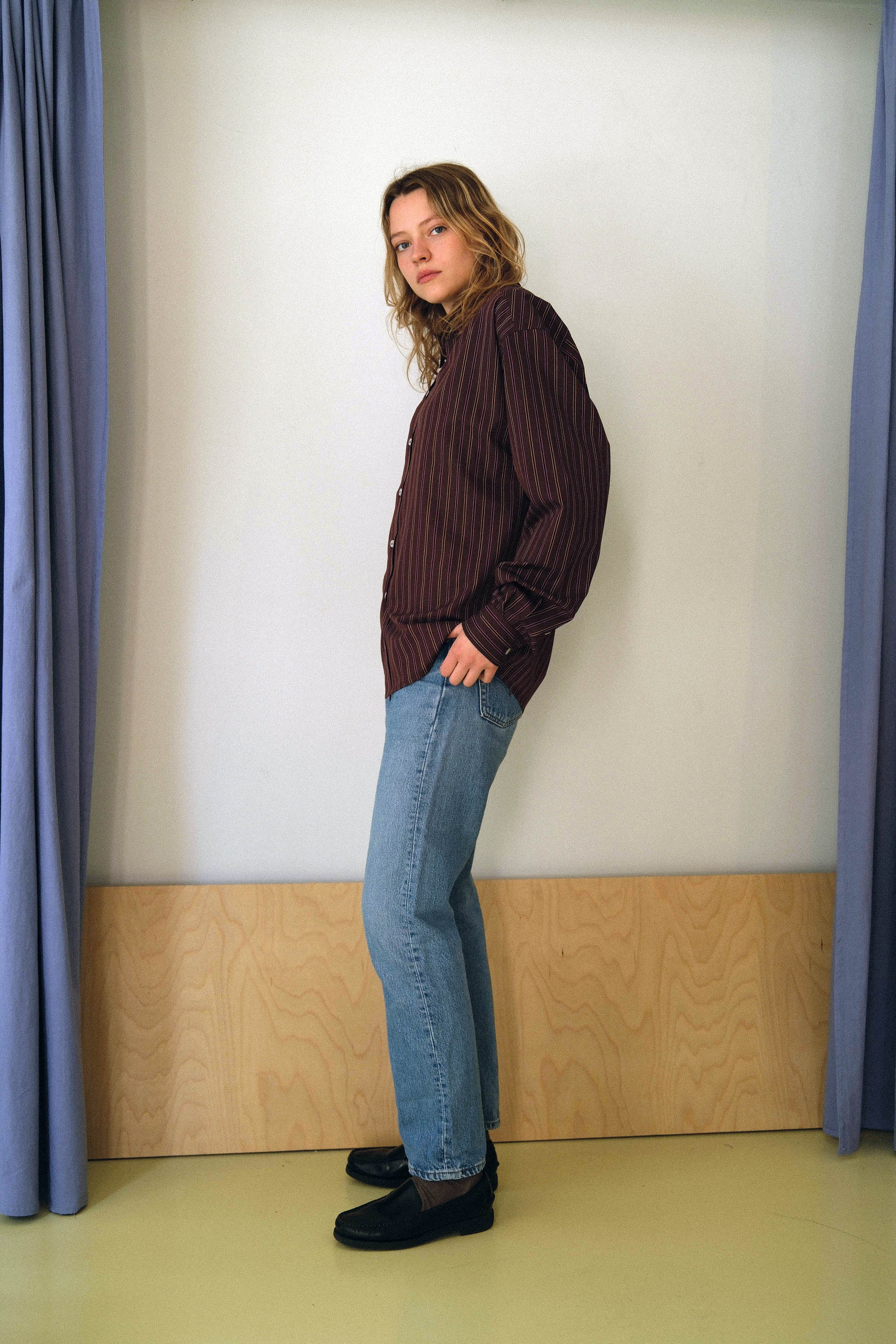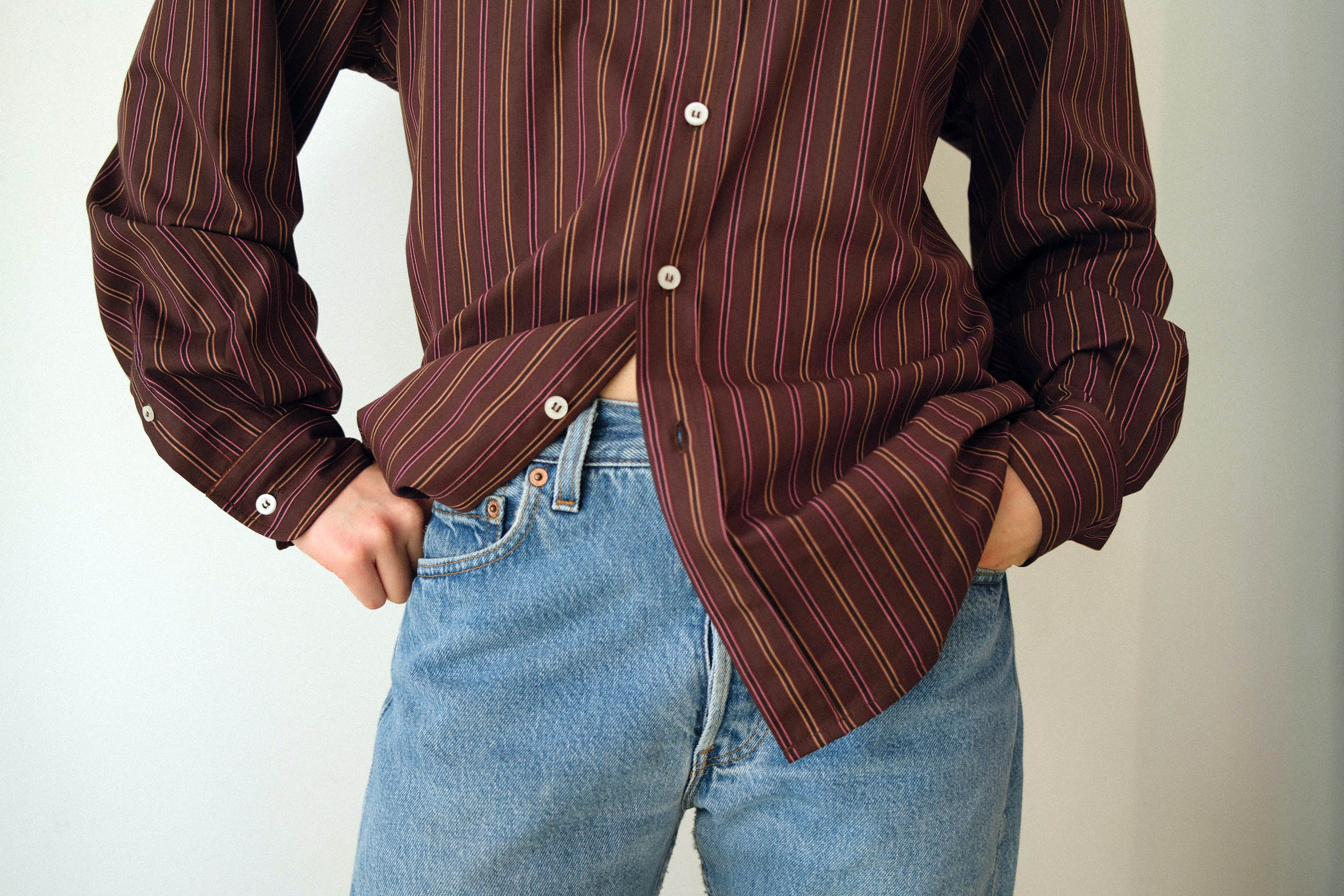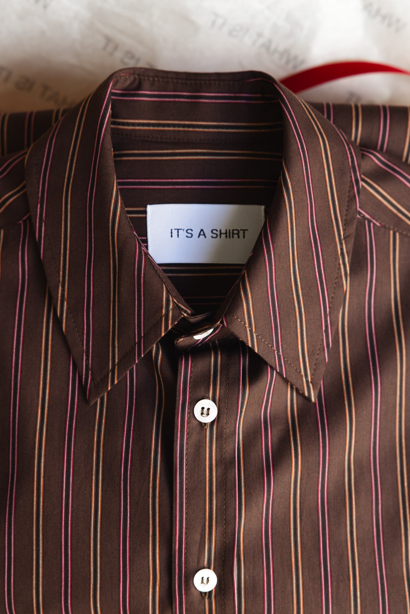 This timeless long-sleeve unisex shirt features a contemporary twisted fit that strikes the perfect balance between relaxed and refined, making it an ideal companion for any occasion throughout the day. Crafted from a silky colorful striped poplin produce in north Italy, the shirt shapes a sleek silhouette and is beautifully finished with white matte bone buttons. Each garment is produced in our family-run workshop, ensuring quality and care in every piece. Designed for durability, HOLLY MOTORS classic is a funky and versatile shirt for every season, on any occasion. Only 1 garment available per size.