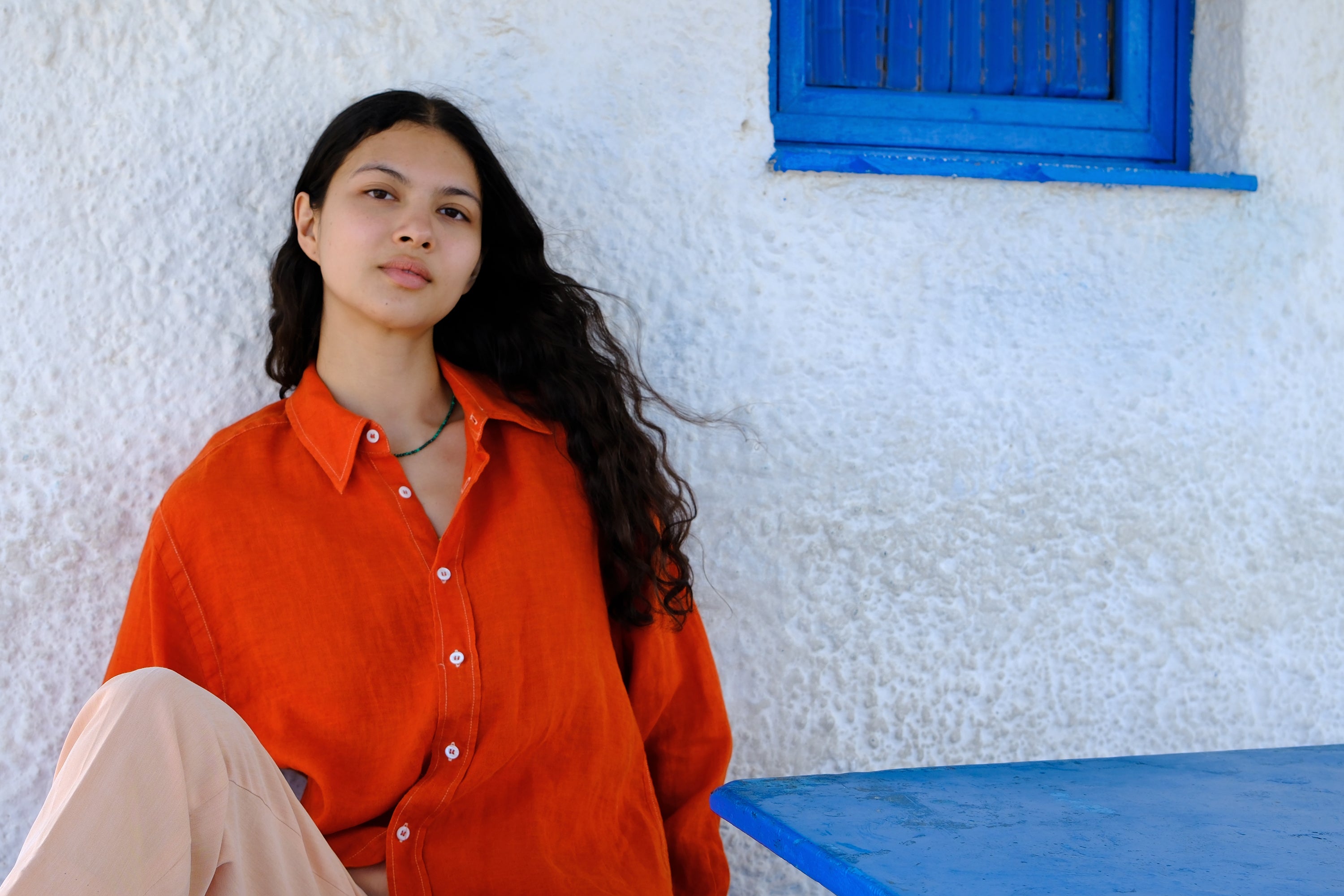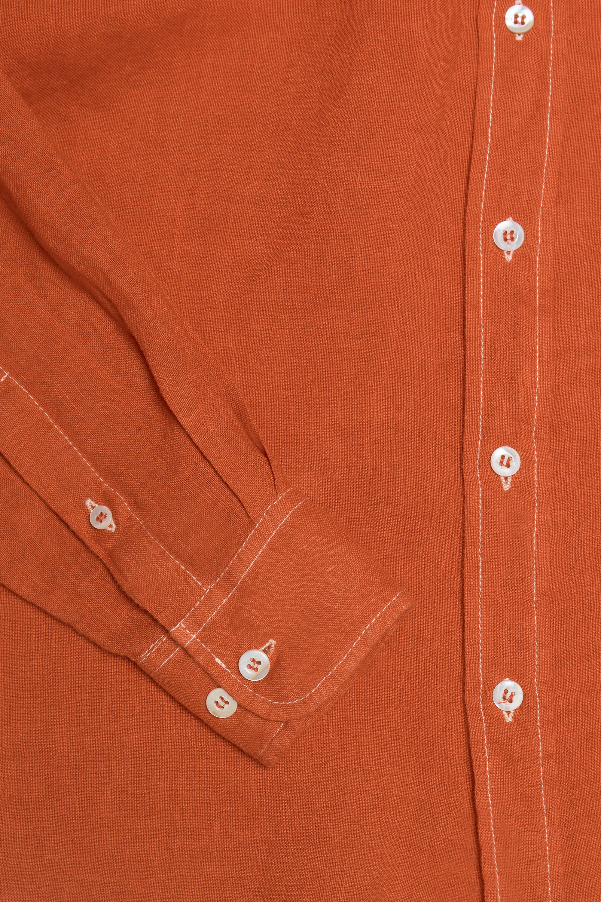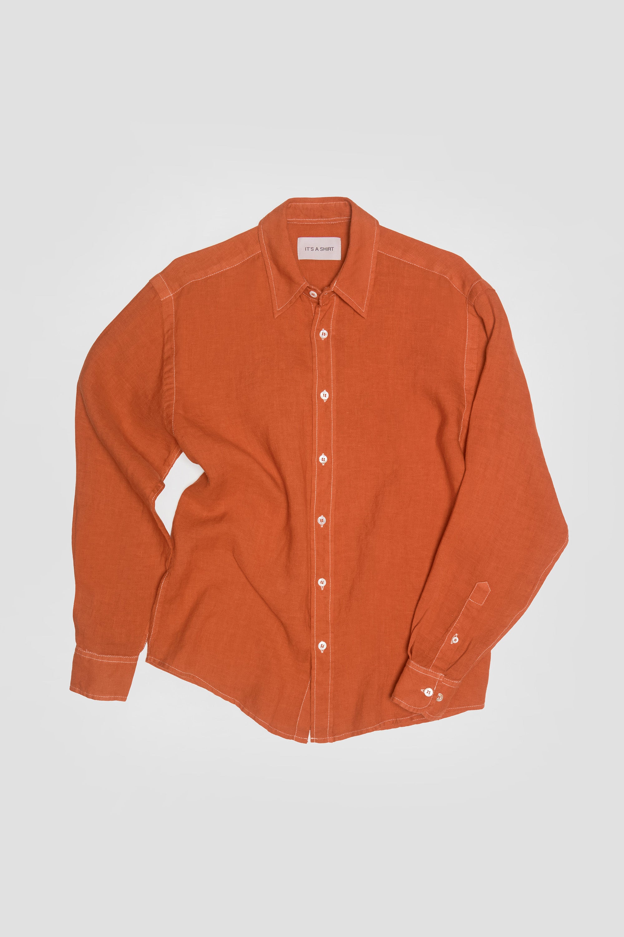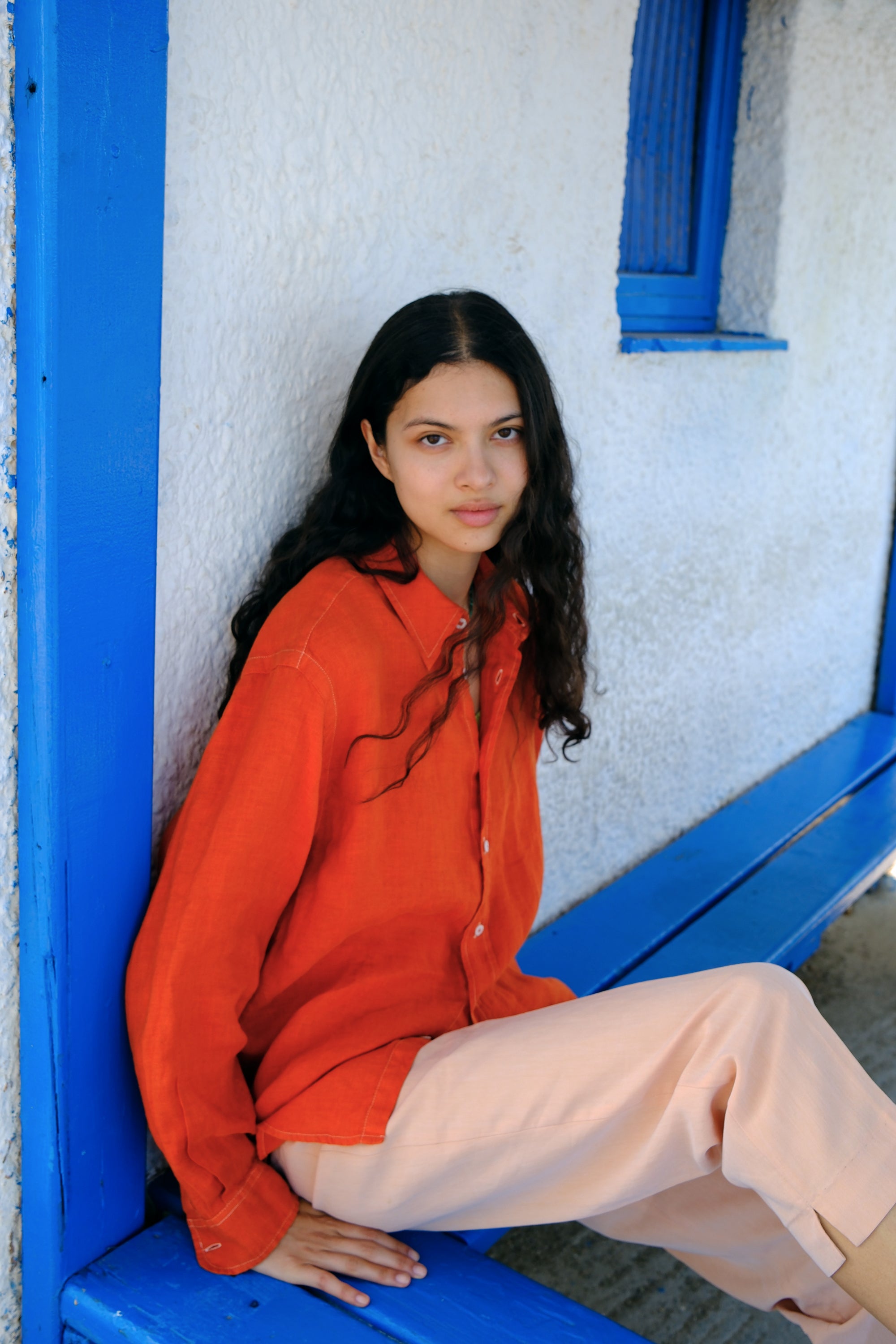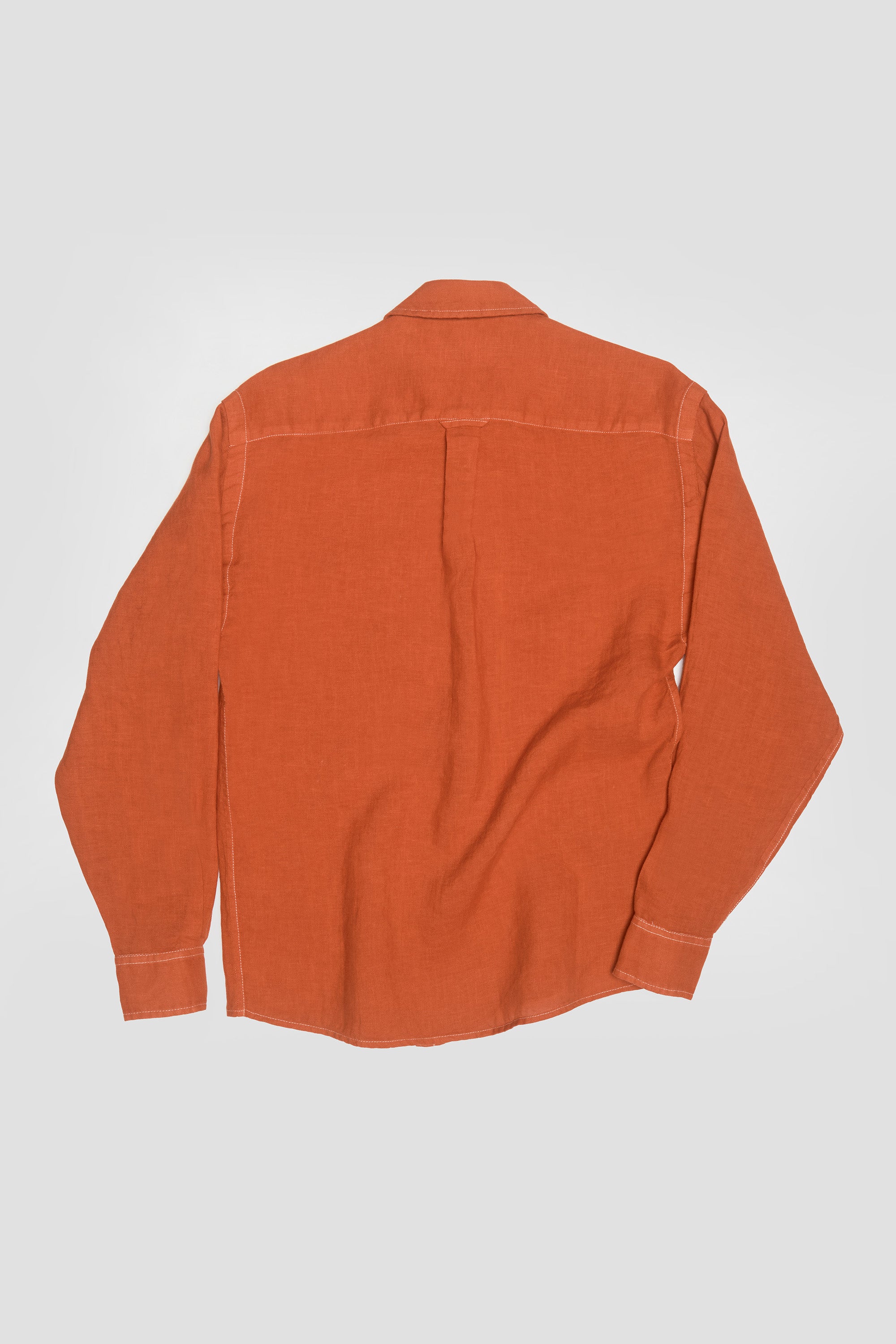 Our timeless long sleeve unisex classic shirt features a contemporary fit and design striking the perfect balance between relaxed and refined, making it an ideal companion for any occasion throughout the day. Crafted from natural greek lightweight linen, the shirt shapes a casual yet sleek silhouette which is beautifully finished with natural mother of pearl buttons. The garment has been dyed with eco colours and has a smooth texture. Each garment is produced in our family-run workshop, ensuring quality and care in every piece. Designed for durability, Negroni is a delicate shirt for the summer season. Limited garments available. Note that the garment has a bold blood orange colour.