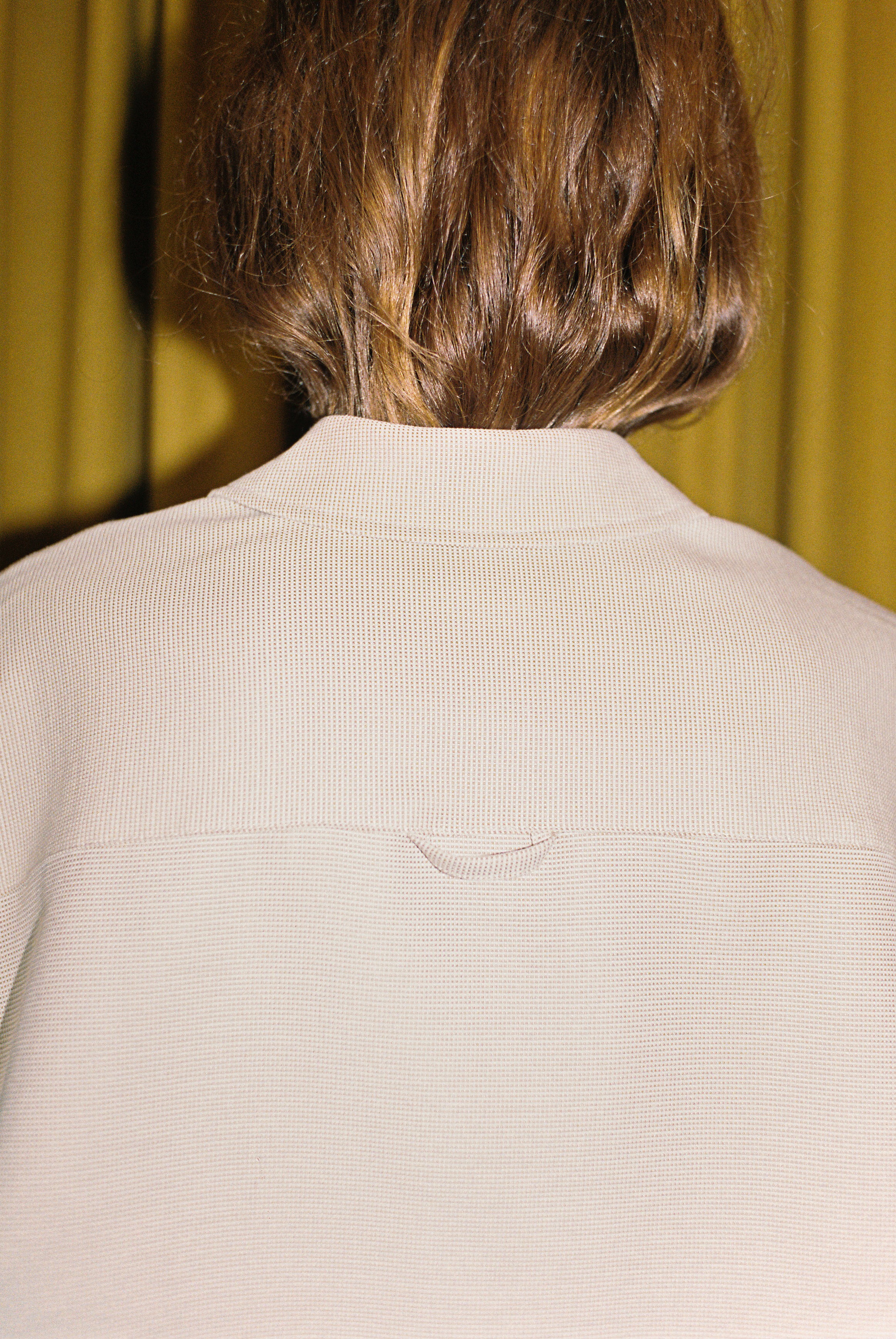 Neutral belongs to our CLASSICS collection, it's a long sleeve timeless shirt with a unisex cut and a contemporary twist. Through trials and errors we transformed the strict button down collar into a more playful version of it for any occasion. The fit is relaxed and the sleeves are quite loose. To create this garment we used extra premium quality pique cotton produced in Switzerland. It is finished with natural mother of pearl medium sized buttons. Each and every shirt is produced in our small-family-production space. This garment is made to last and accompany you all the way.