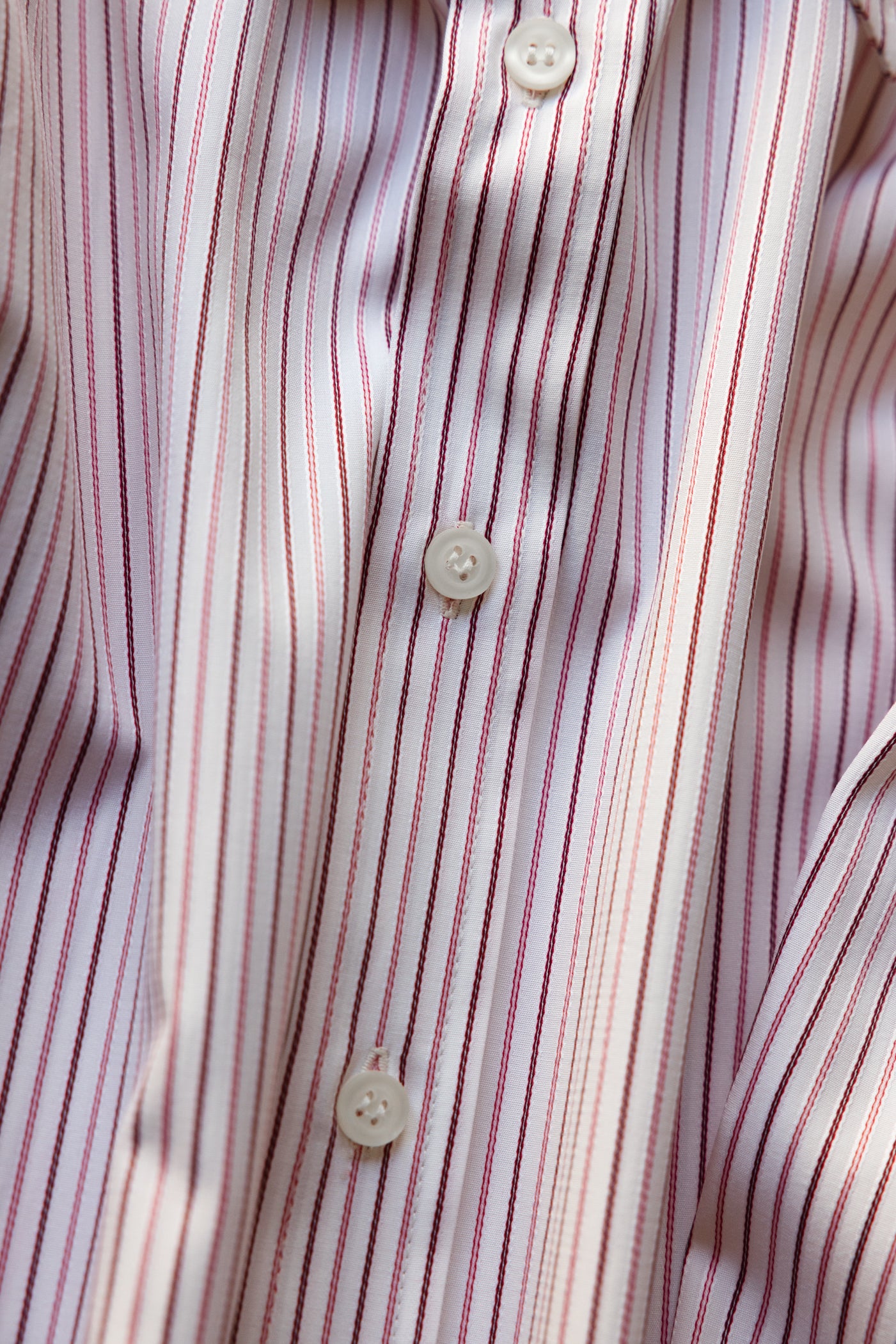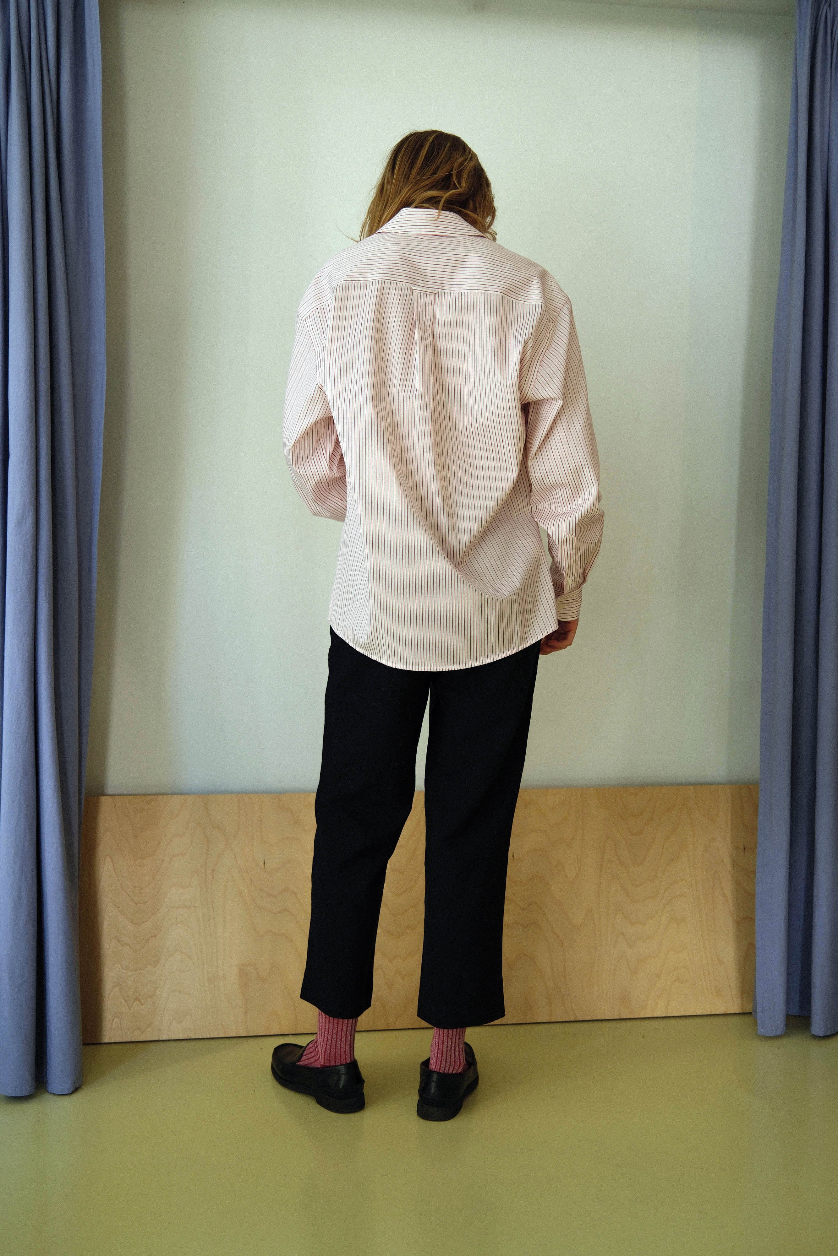 This timeless long-sleeve unisex shirt features a contemporary twisted fit that strikes the perfect balance between relaxed and refined, making it an ideal companion for any occasion throughout the day. Crafted from a textured/striped premium poplin produced in north Italy, the shirt shapes a sleek silhouette and is beautifully finished with white matte bone buttons. Each garment is produced in our family-run workshop, ensuring quality and care in every piece. Designed for durability, NEW YEAR'S EVE classic is a bold, unique shirt for every season, on any occasion.
