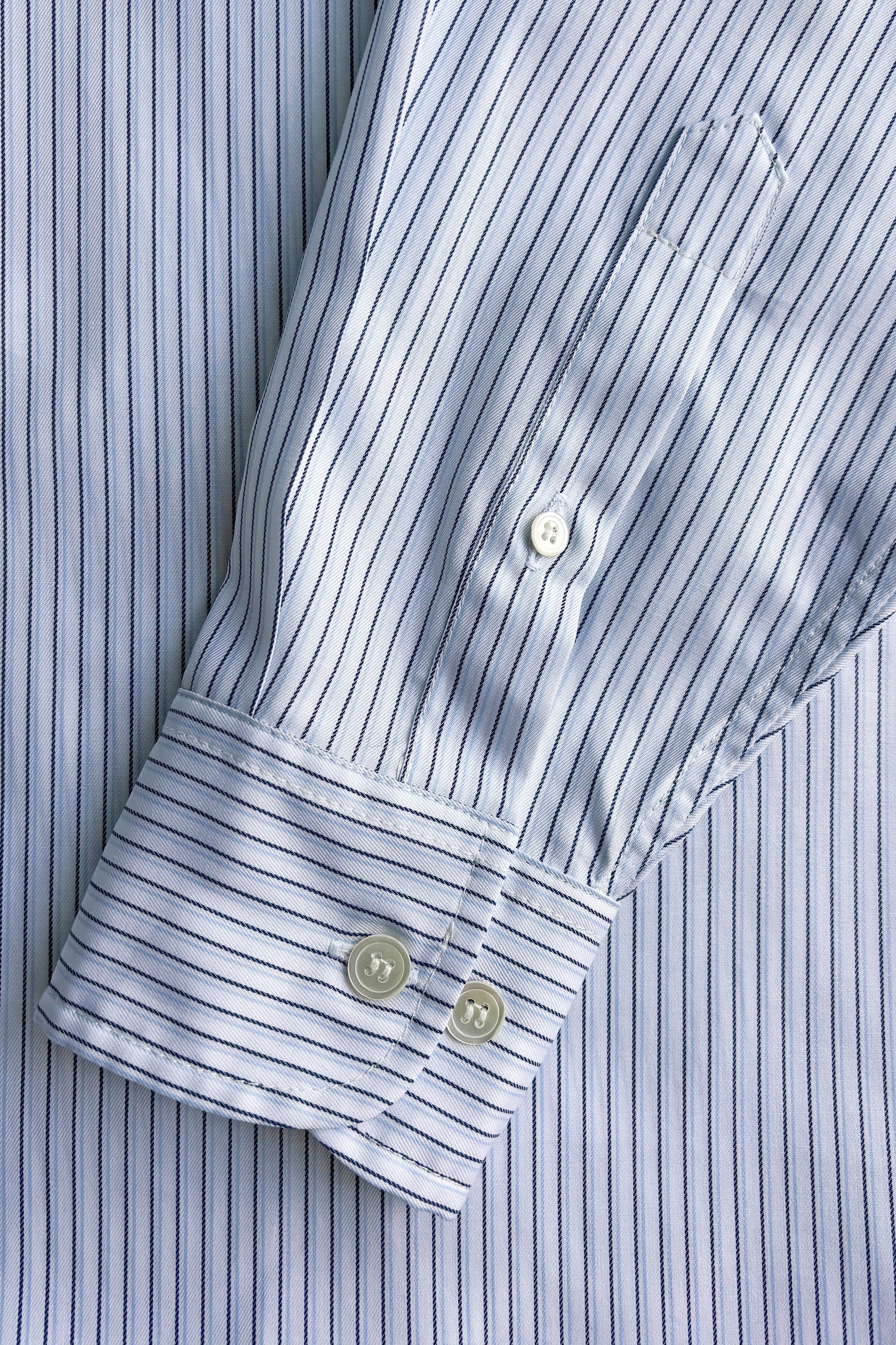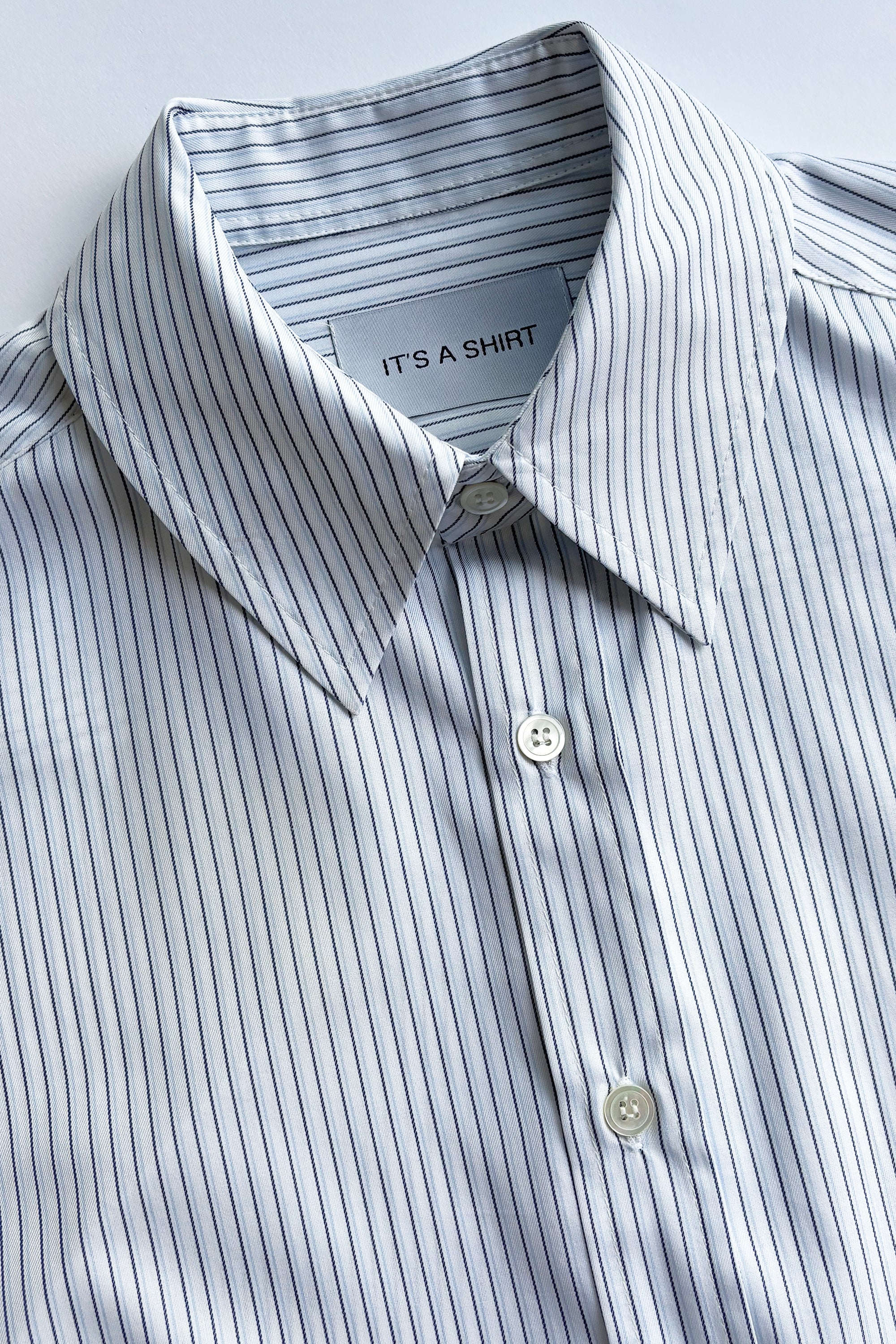 Our timeless long-sleeve unisex shirt features a contemporary twisted fit that strikes the perfect balance between relaxed and refined, making it an ideal companion for any occasion throughout the day. Crafted from a soft, silky striped poplin produced in north Italy, the shirt shapes a sleek silhouette and is finished with natural trocas shell pearl buttons. Each garment is produced in our family-run workshop, ensuring quality and care in every piece. Designed for durability, SPINNING AROUND classic is a premium shirt for every season, on any occasion.