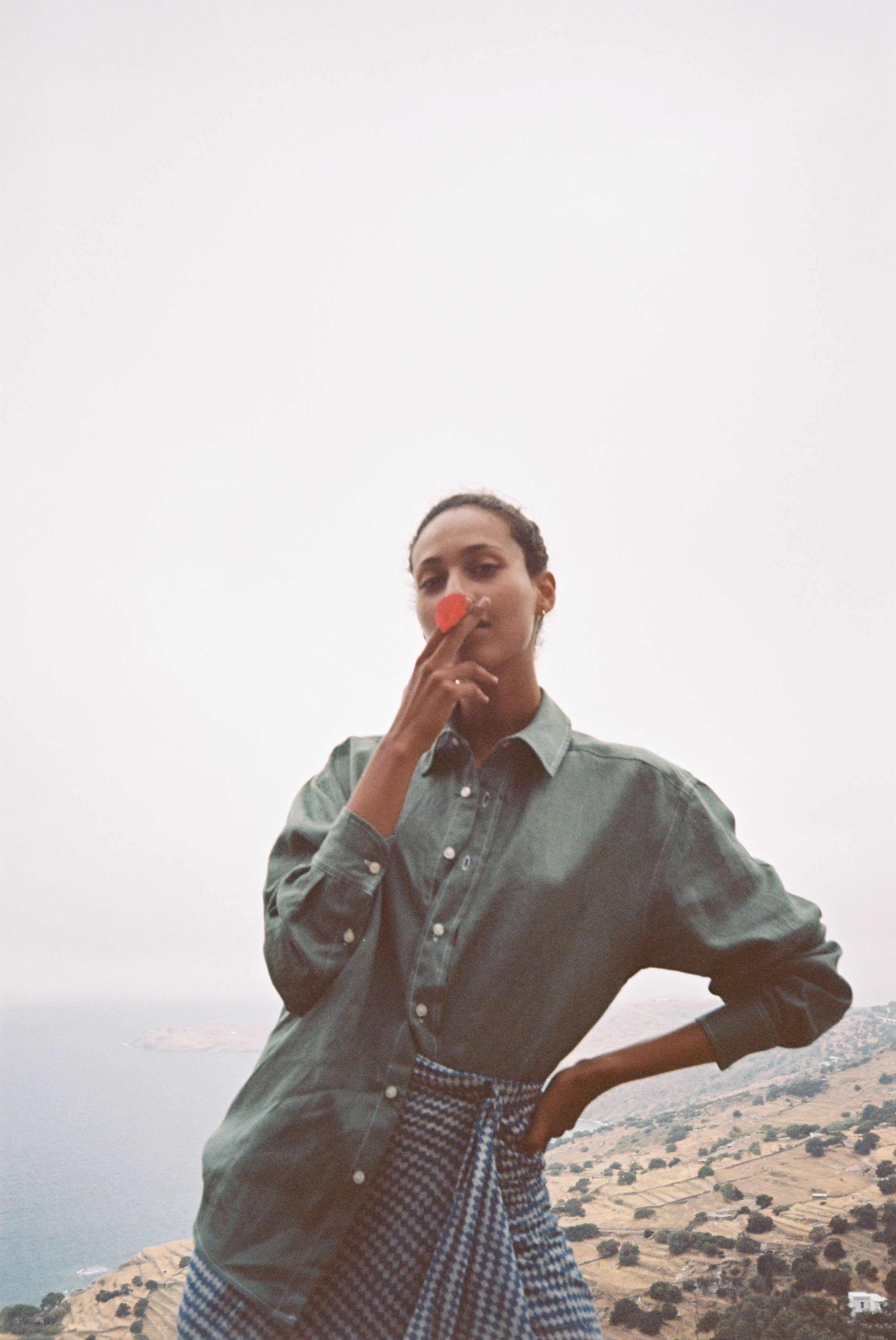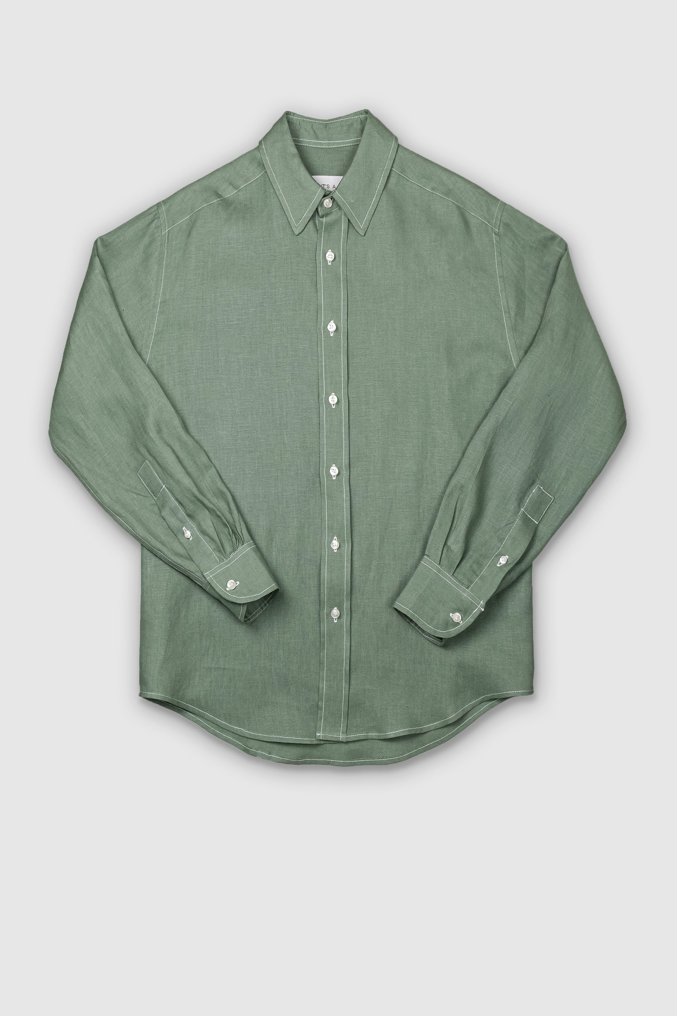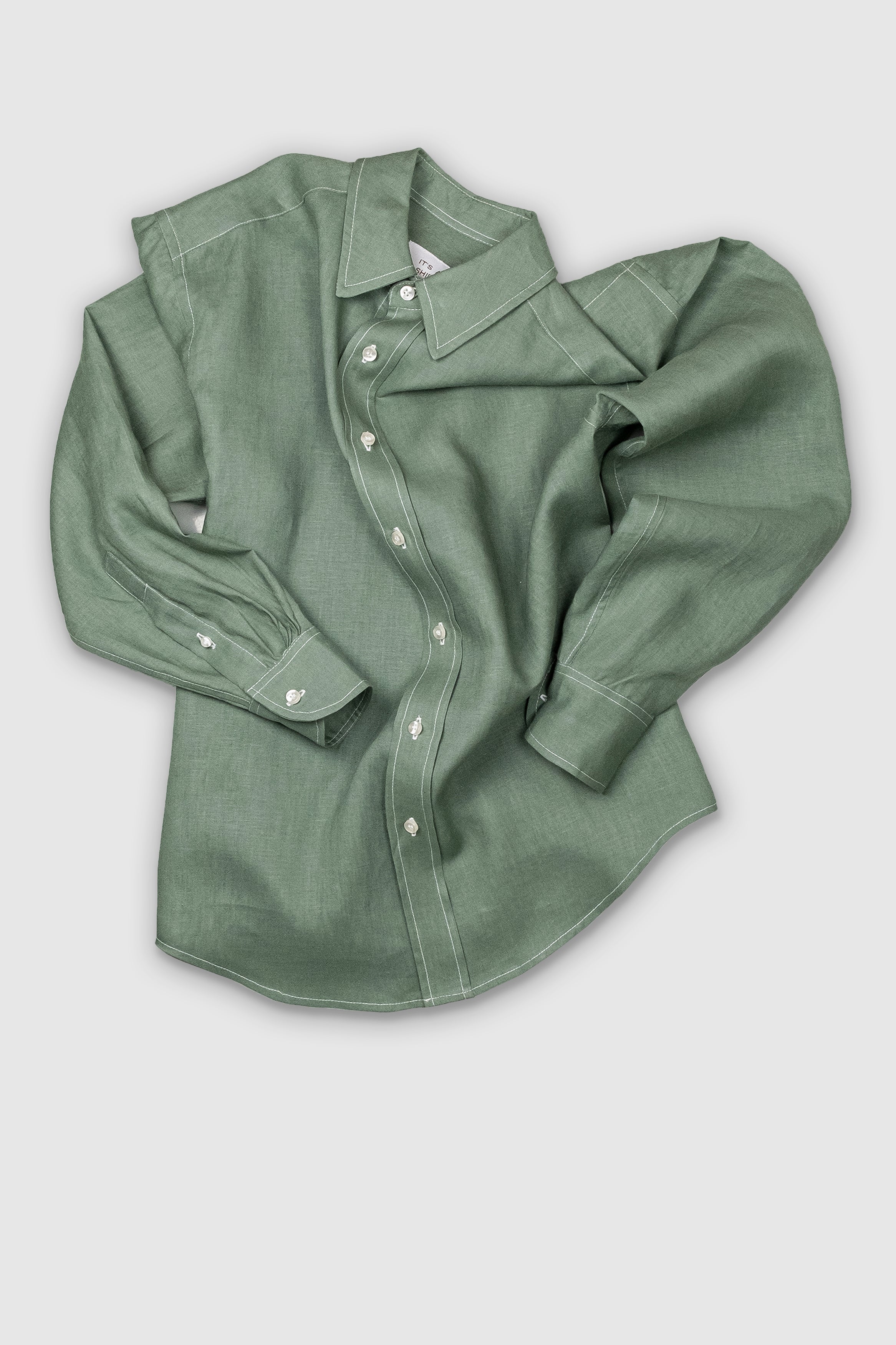 Thyme long is a long sleeve shirt shaped in our classic cut which is timeless, unisex with a contemporary twist. The fit is relaxed and airy, appropriate to accompany you during the summer days. To create this garment we used greek linen in khaki colour, a fabric that lets the skin breathe when the temperature rises. It is finished with white small sized bone buttons. Limited pieces available.