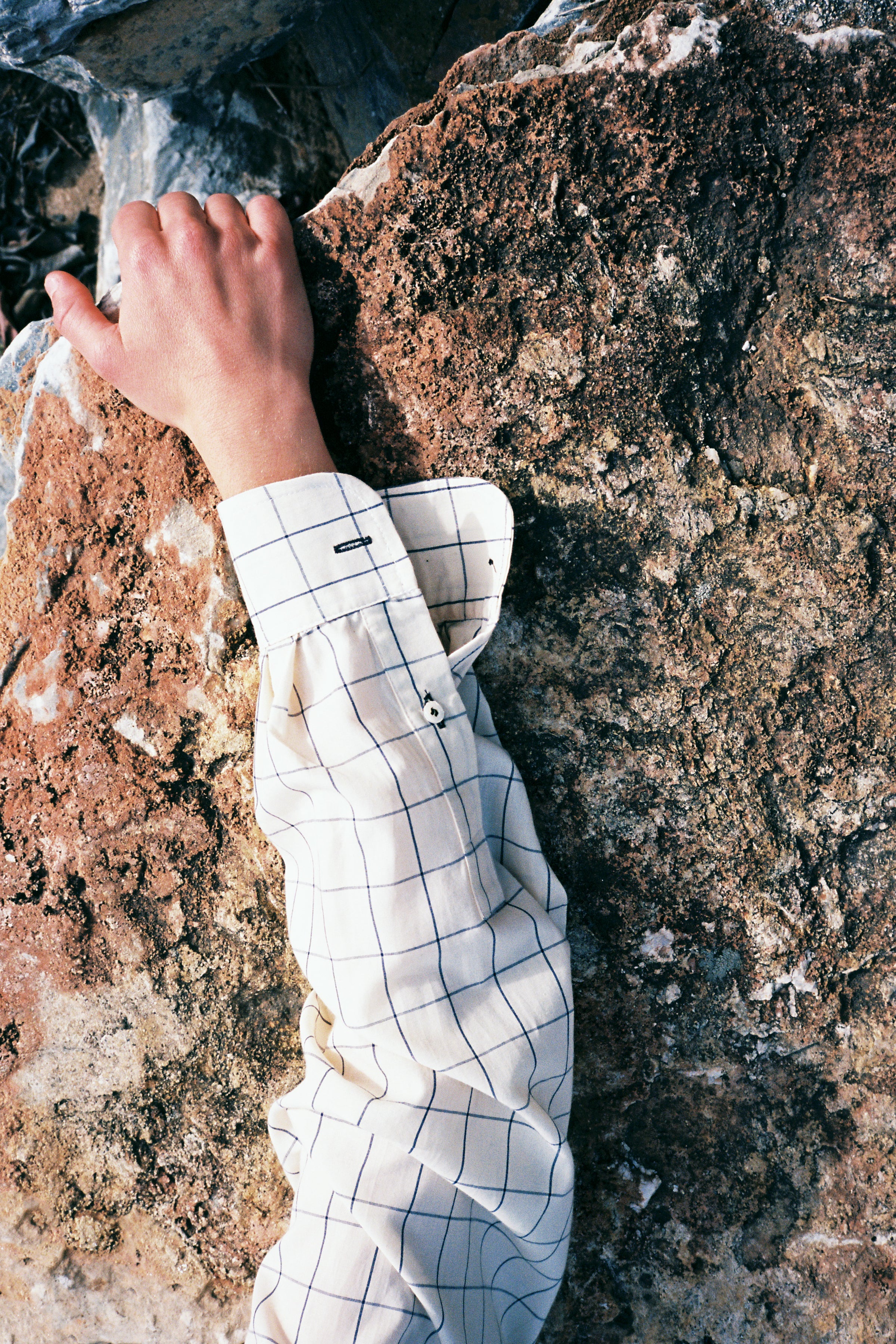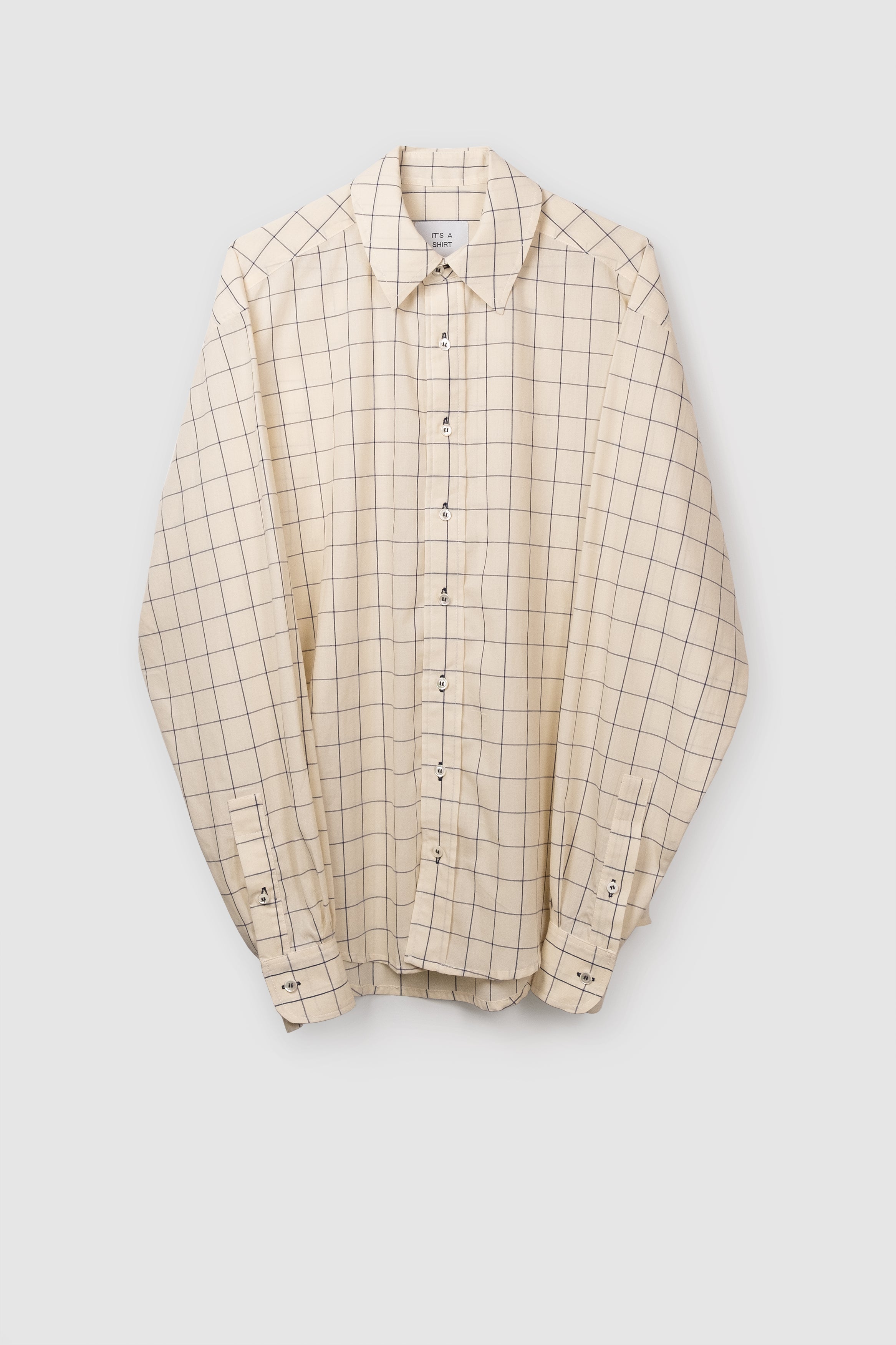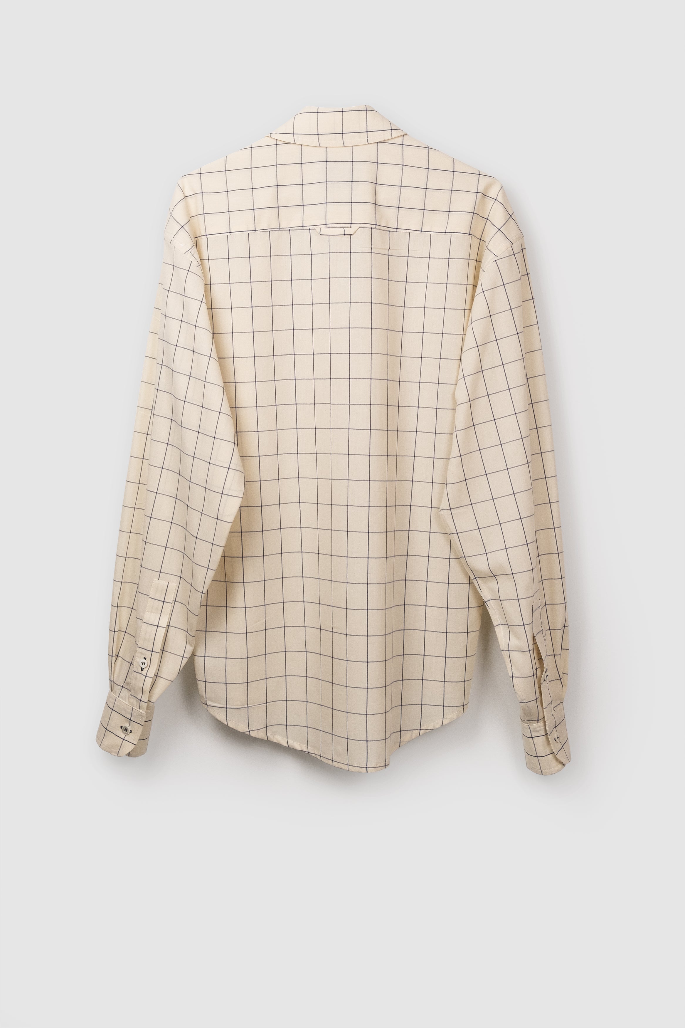 Village belongs to our CLASSICS collection, it's a long sleeve timeless shirt with a unisex cut and a contemporary twist. Through trials and errors we transformed the strict button down collar into a more playful version of it for any occasion. The fit is relaxed and the sleeves are quite loose. To create this garment we used soft beige cotton with dark grids from north Italy. It is finished with natural mother of pearl medium sized buttons and dark buttonholes. Each and every shirt is produced in our small-family-production space. This garment is made to last and accompany you all the way.