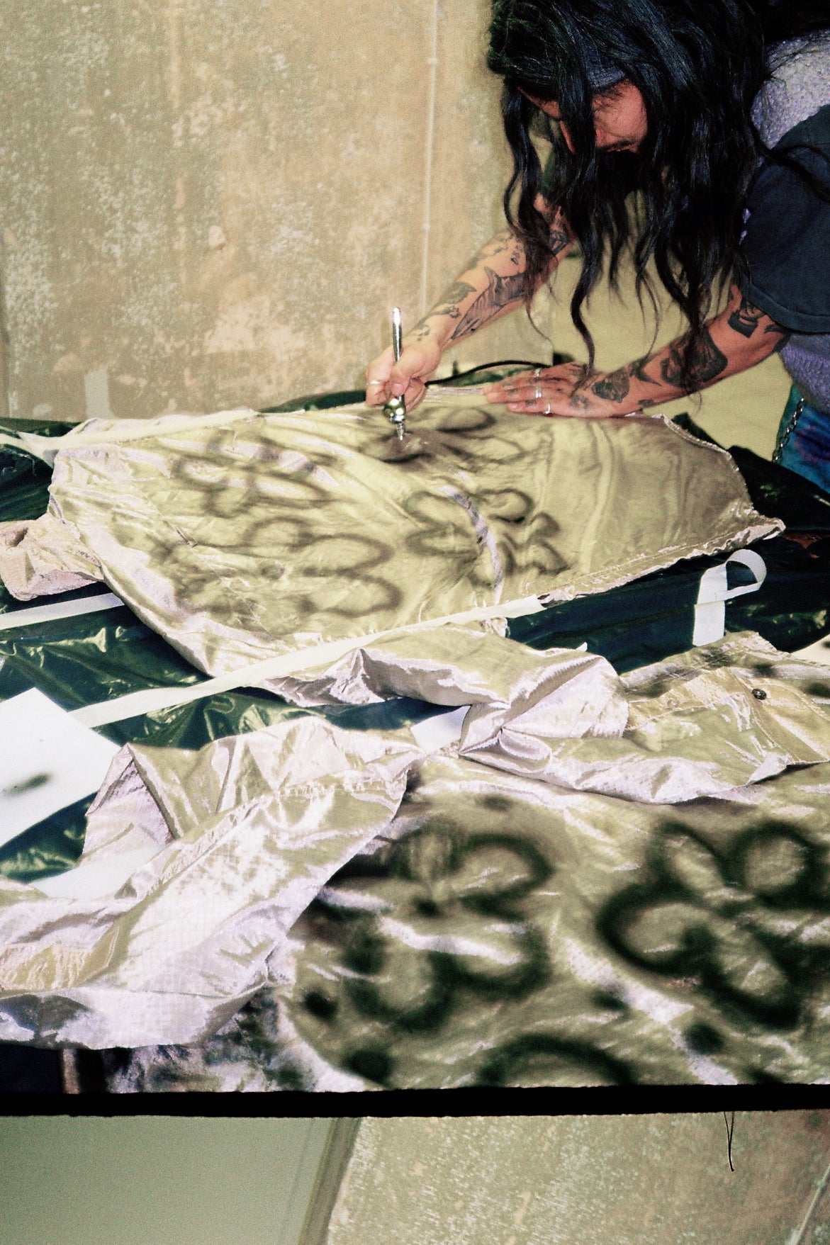 Dreamscapes consists of 13 individually hand-painted shirts using the airbrush technique in Hank's studio in Stockholm, Sweden. Parachute shirt is made from woven ripstop parachute nylon fabric with a two dimensional structure creating a silky texture yet a shiny surface. Every piece is unique which means that each shirt is slightly different from the other. More information about Hank Grüner here .