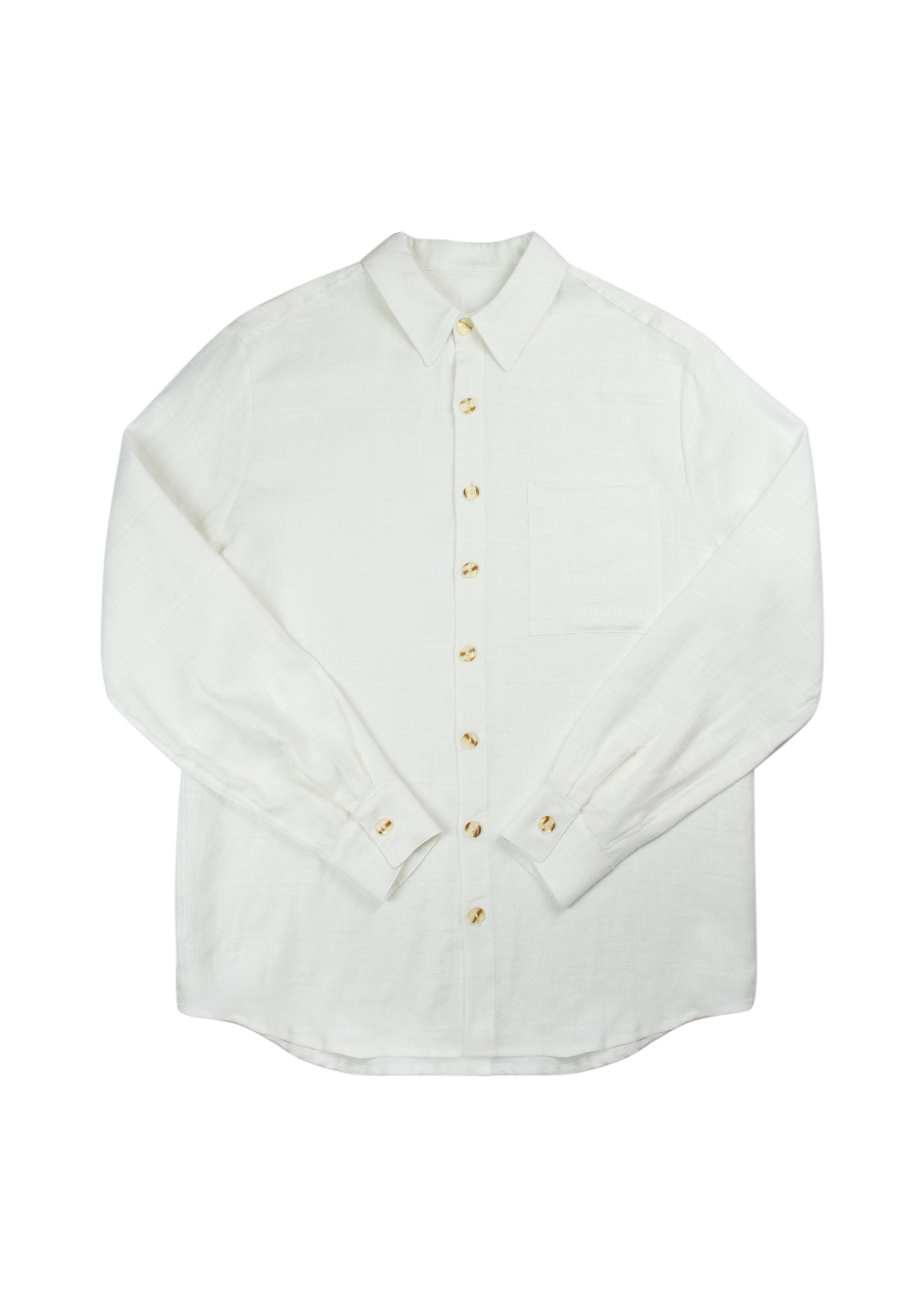 Oversized and loose fit, fabric flow, point collar,  finished with tortoise shell buttons.