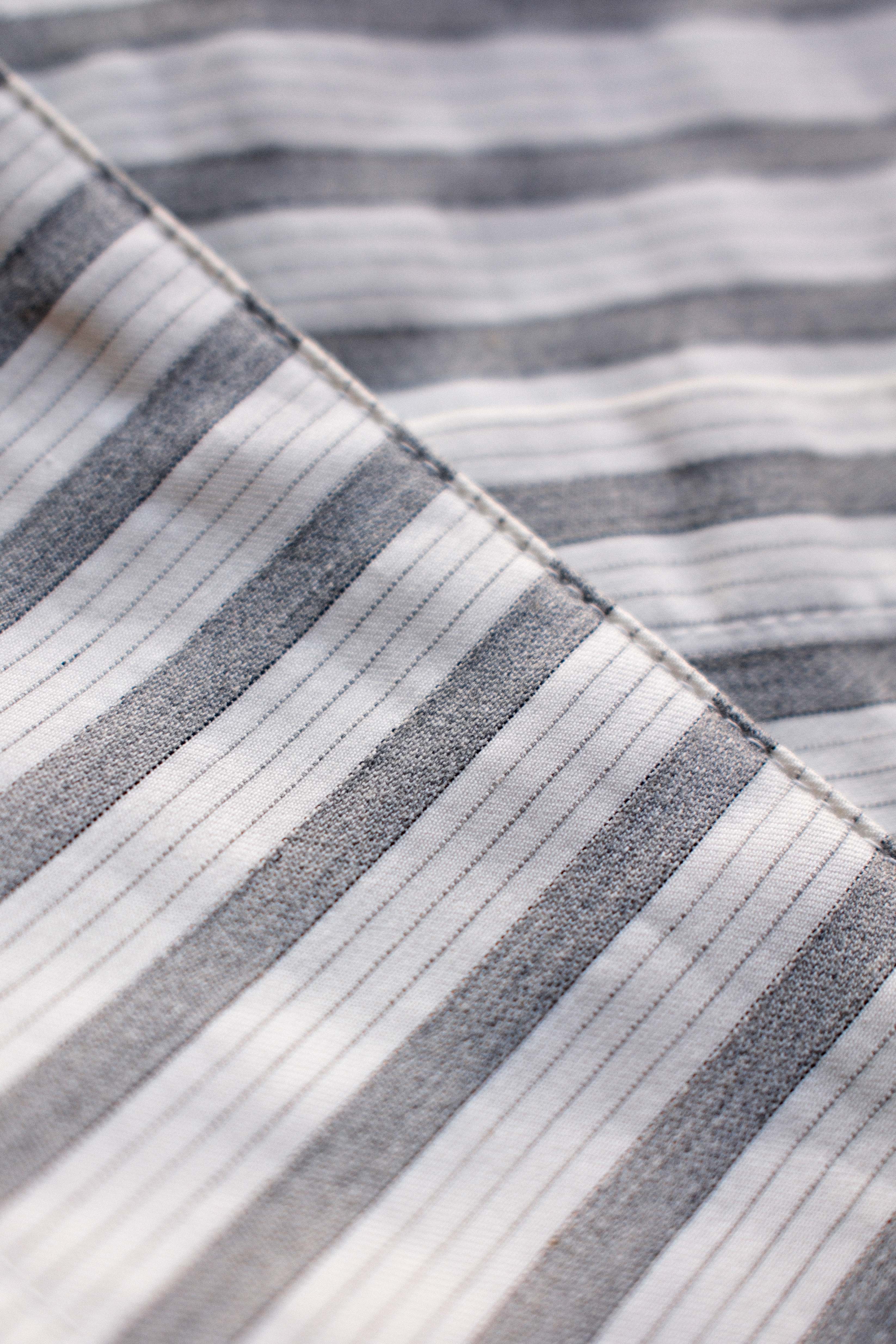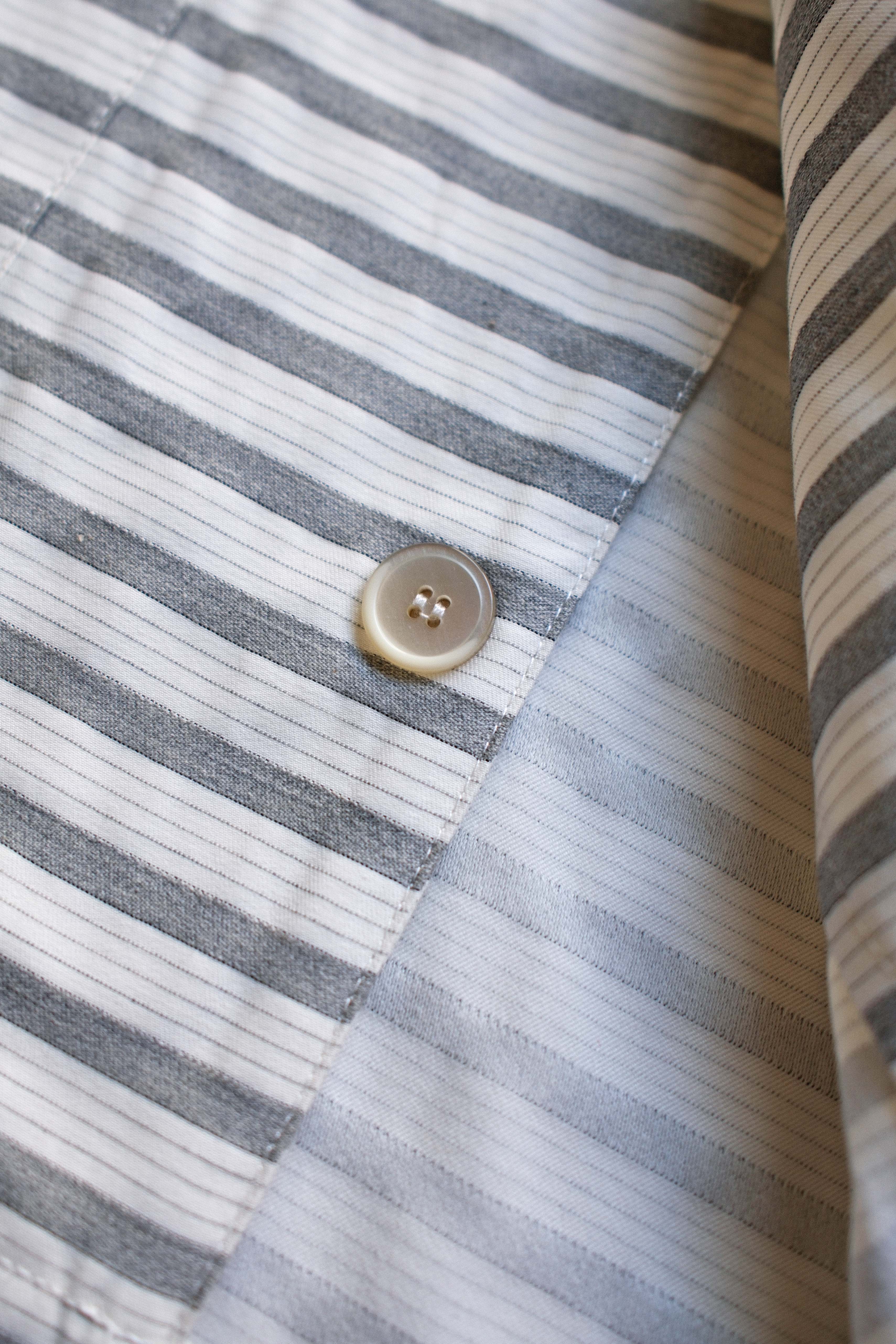 It has been crafted from semi-heavy soft Italian cotton with velvet feel-woven stripes. This is a rare fabric with horizontal stripes.