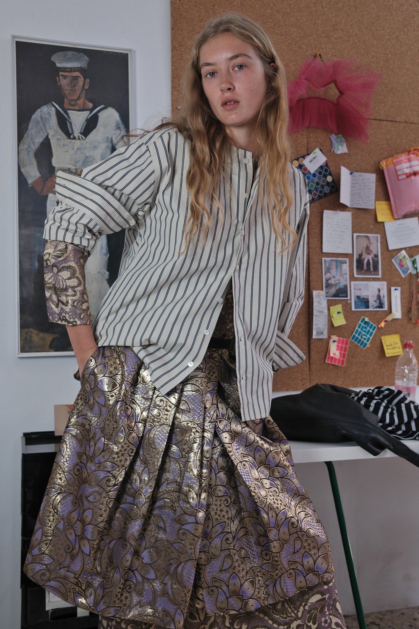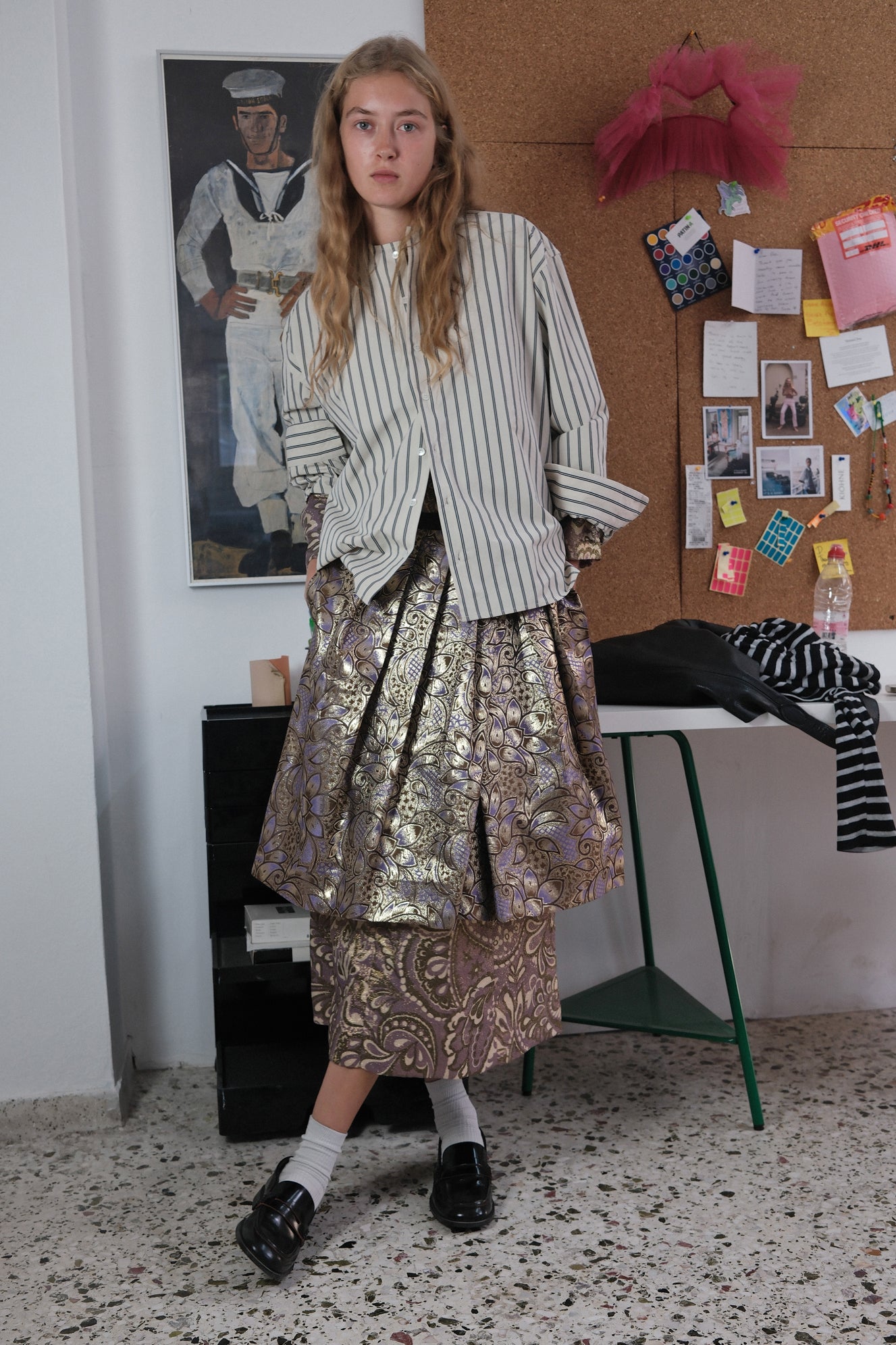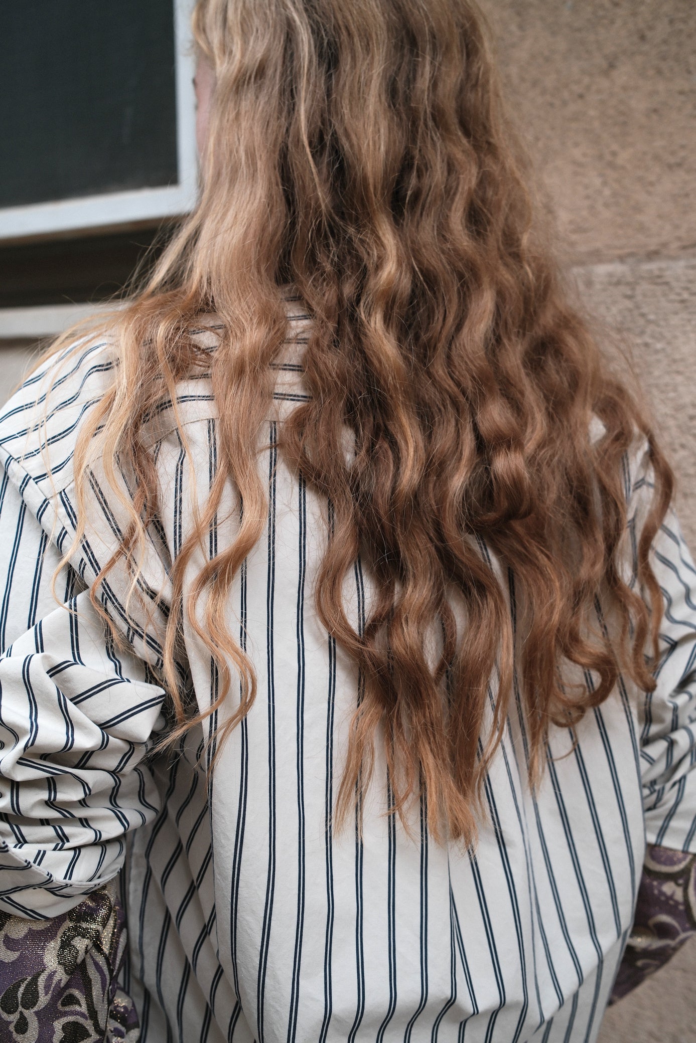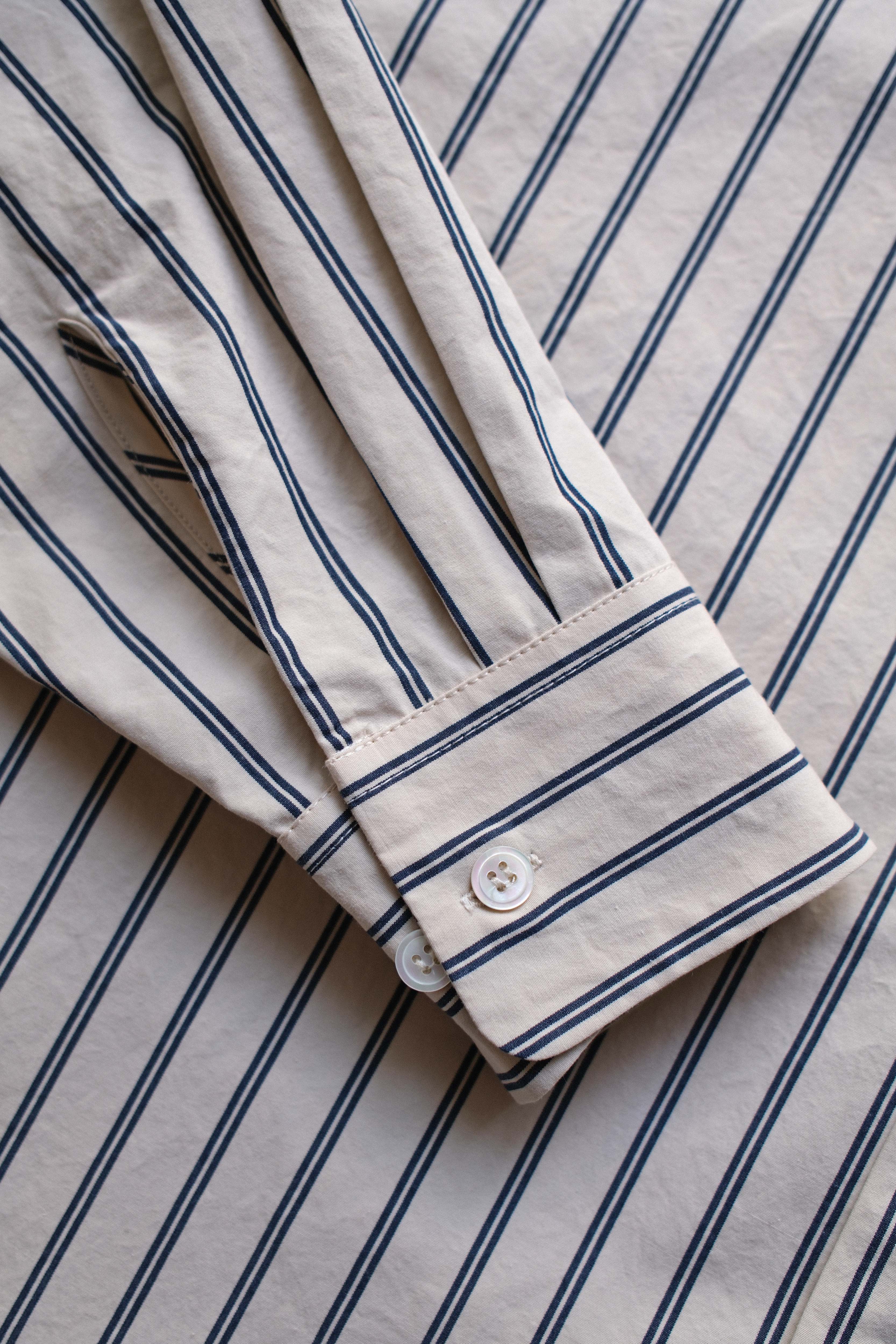 We firstly created the cut in 2022, and this is the elevated version of the initial design. It offers a relaxed fit, but not too oversized, and features a rounded neckline in place of a collar, making it appropriate to be layered with other garments or be worn as an over-shirt. It has been crafted from a paper-feel crisp cotton sourced in Italy.