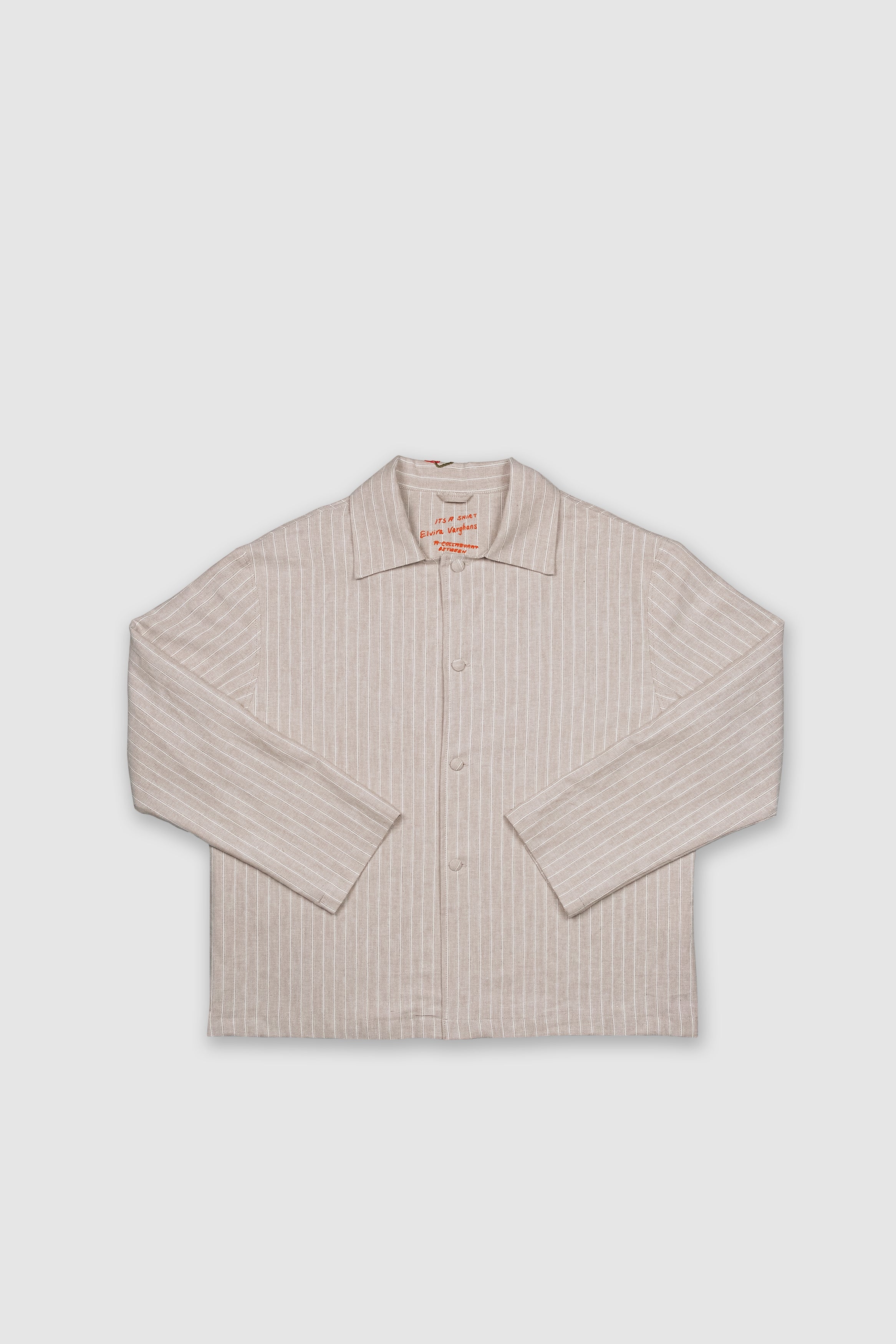 Last November we started a dialogue with Swedish artist Elvira Varghans questing whether is possible to create a workwear shirt with a twist. We exchanged ideas, fabrics and materials via regular post office. The outcome is the production of 24 unique shirts with a distinctive yet a discreet detail. Elvira embroidered each collar by hand in her studio in Malmö. Later, we received them back in Athens and we shaped one-off garments made from greek heavy-weight cotton. Every shirt is unique and has its own embroidery. The inner back is screen printed on the top with our collaboration's signature, handwritten by the artist.
