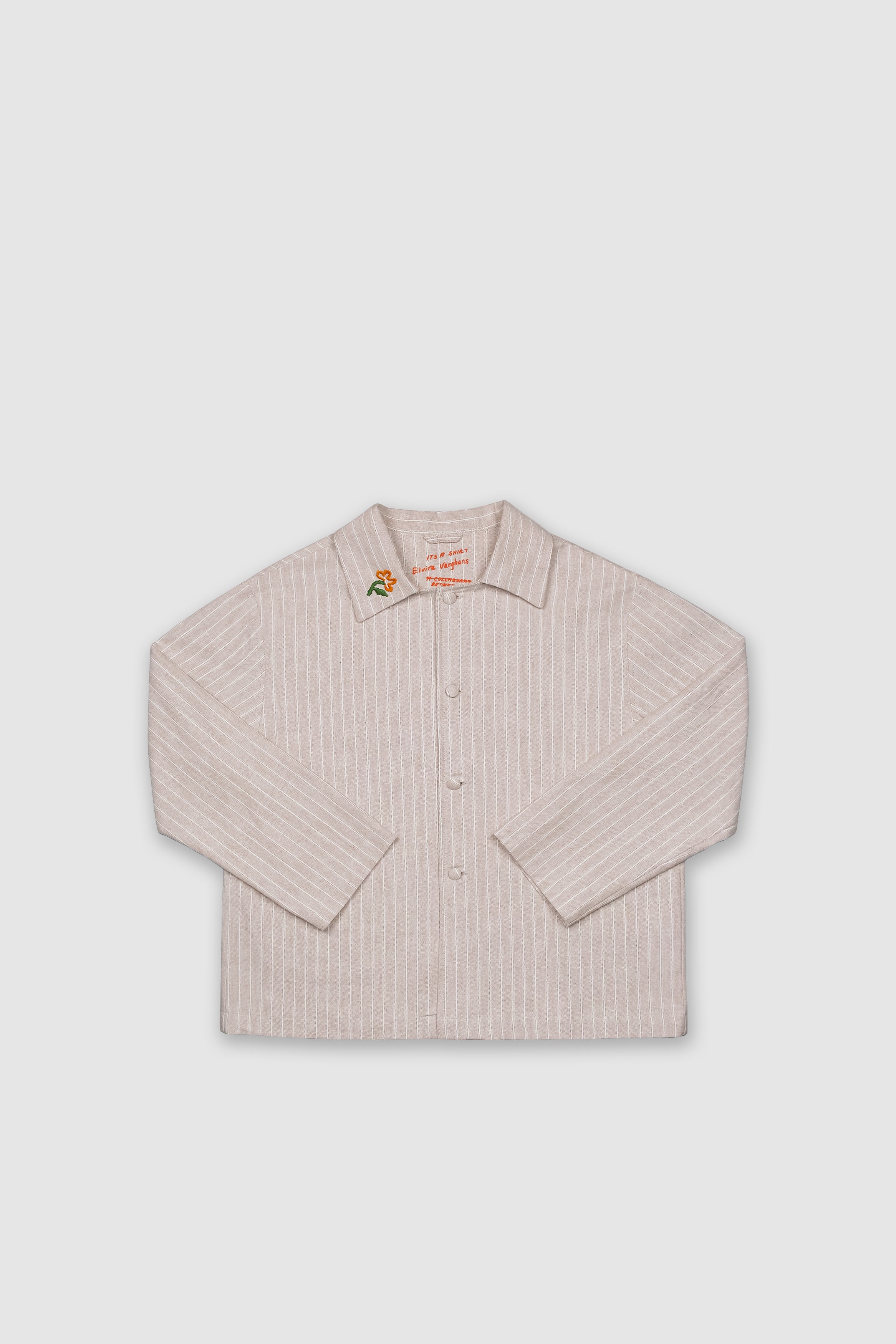 Last November we started a dialogue with Swedish artist Elvira Varghans questing whether is possible to create a workwear shirt with a twist. We exchanged ideas, fabrics and materials via regular post office. The outcome is the production of 24 unique shirts with a distinctive yet a discreet detail. Elvira embroidered each collar by hand in her studio in Malmö. Later, we received them back in Athens and we shaped one-off garments made from greek heavy-weight cotton. Every shirt is unique and has its own embroidery. The inner back is screen printed on the top with our collaboration's signature, handwritten by the artist.