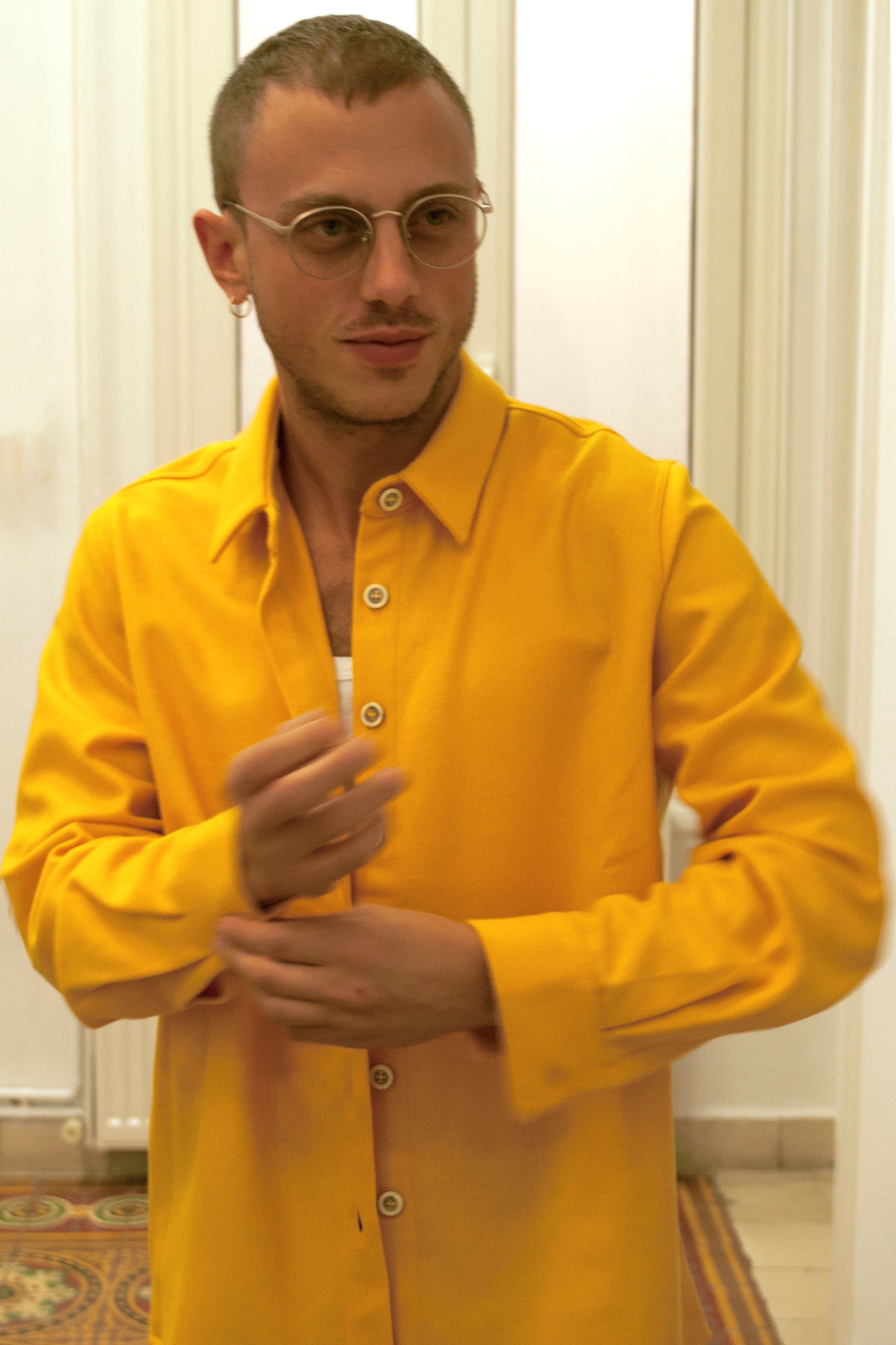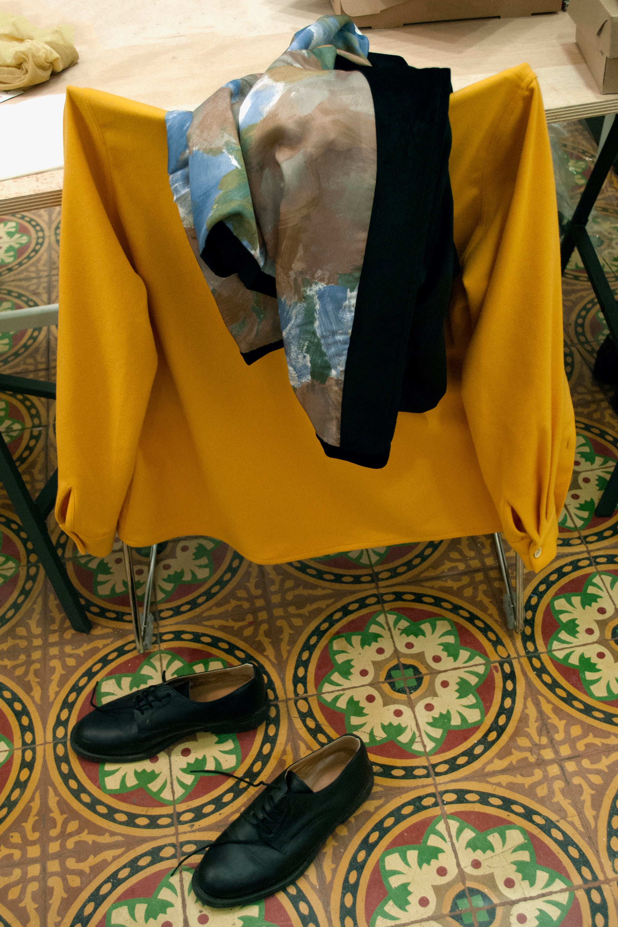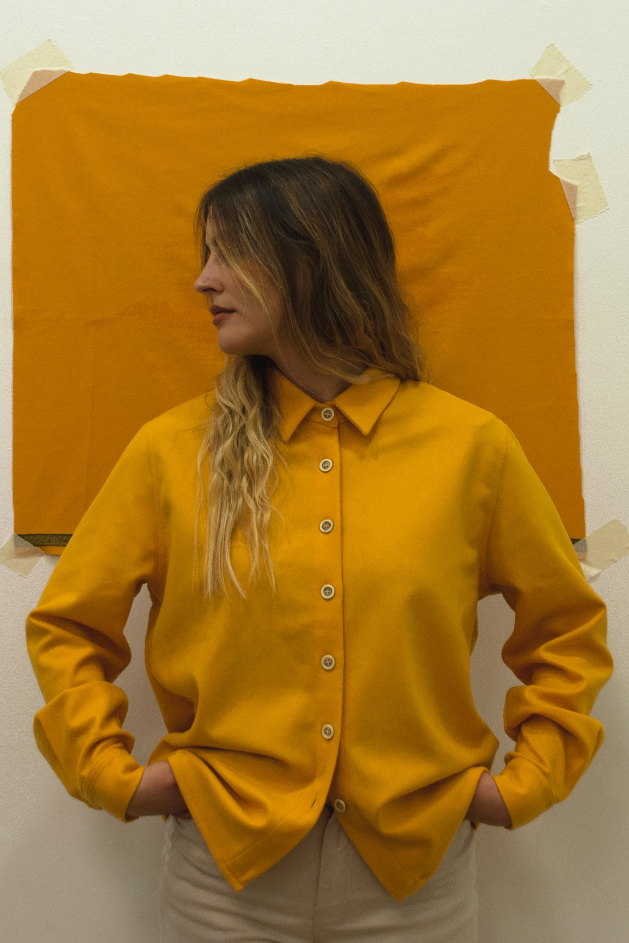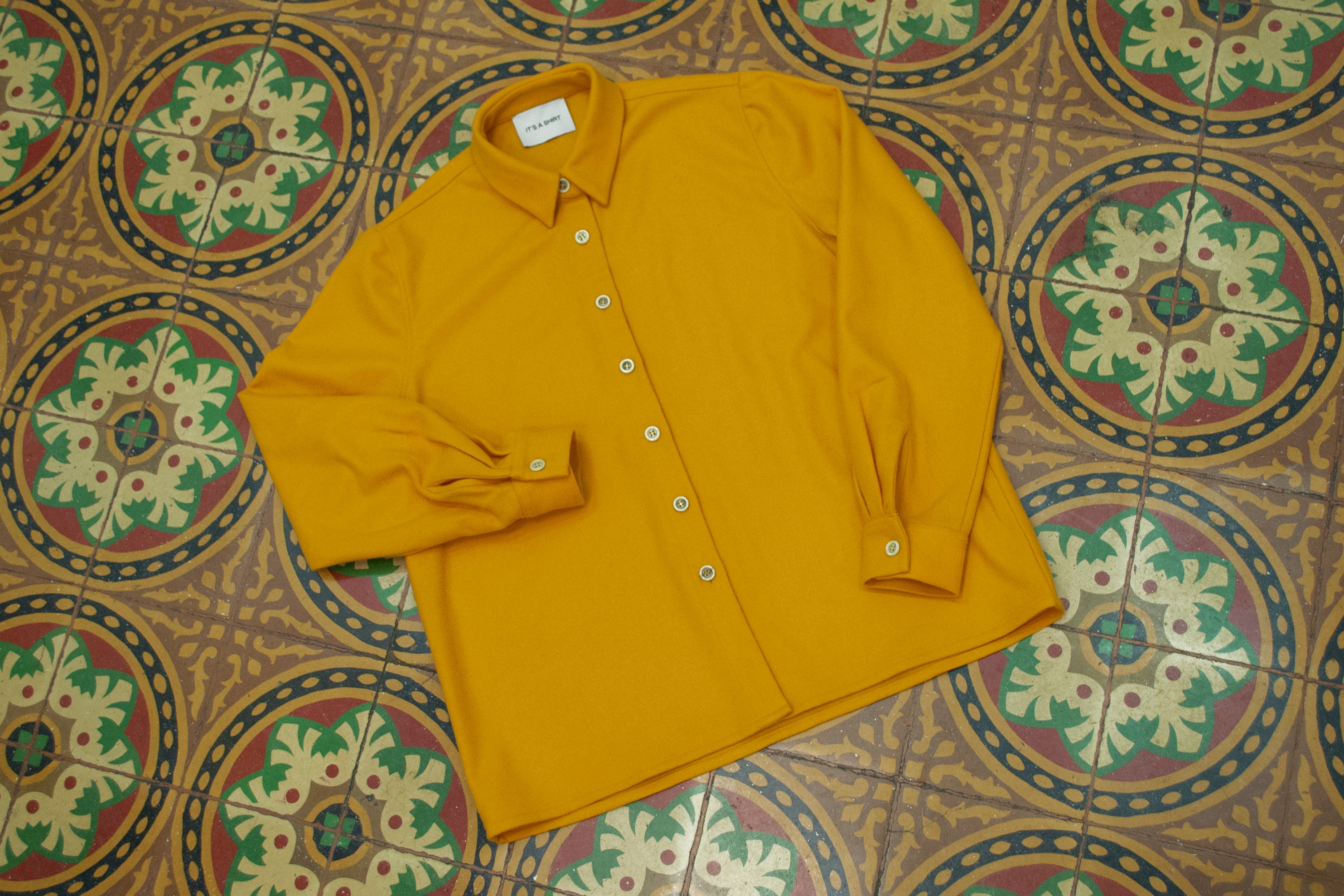 22.33 is a boxy unisex shirt with our classic collar finished with bone middle sized-buttons. Made of one of the finest pure wool from France produced during late 90s transforms it in a delicate garment. The color of it will remind you of the egg yolk literally.