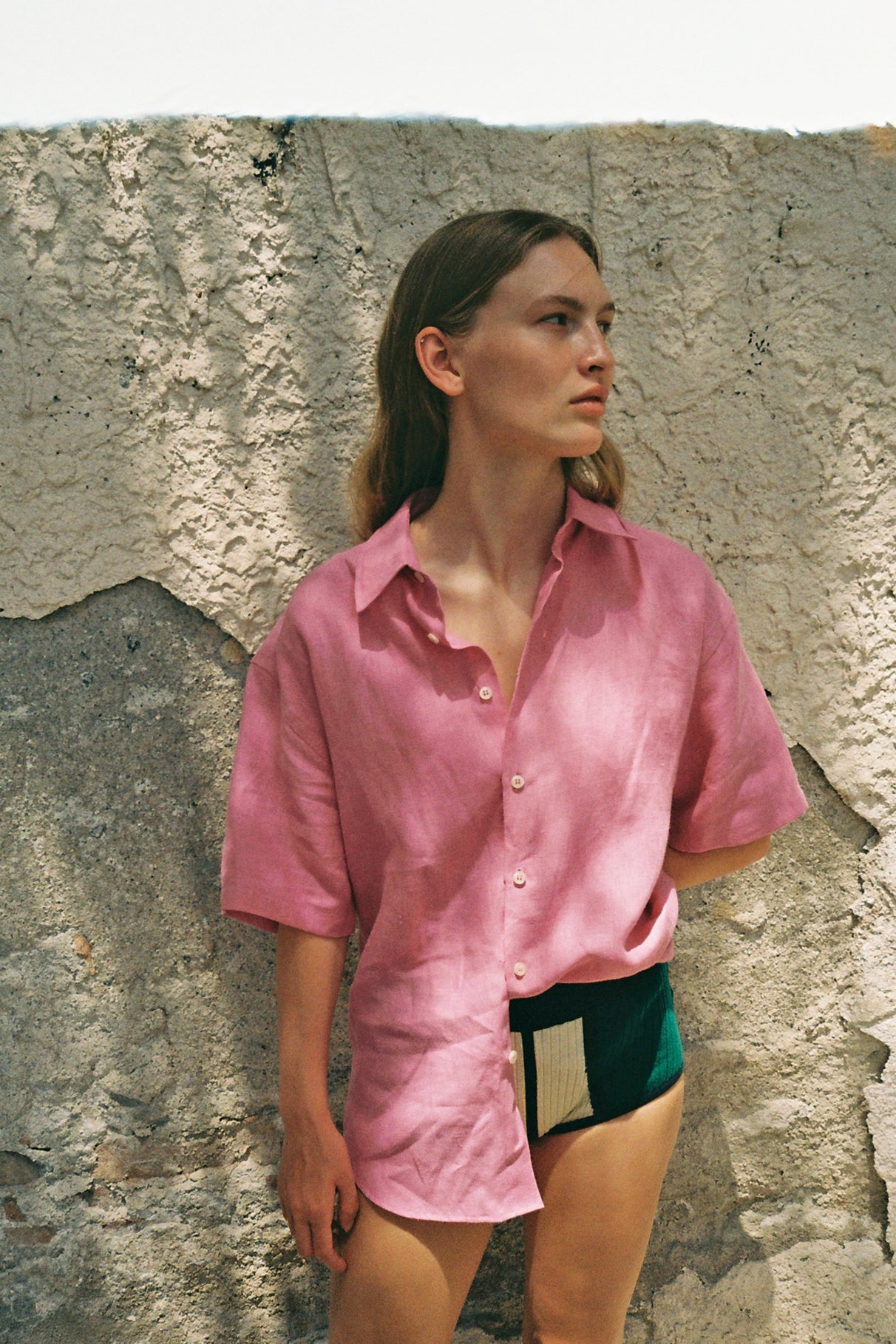 Pink Panther is a short sleeve shirt shaped in our classic timeless cut. The fit is relaxed and airy, appropriate to accompany you during the whole summer. The garment is crafted in a dead stock printed cotton full of colourful stripes. This garment is available in 3 pieces. Each and every shirt is produced in our family production space located in Athens.