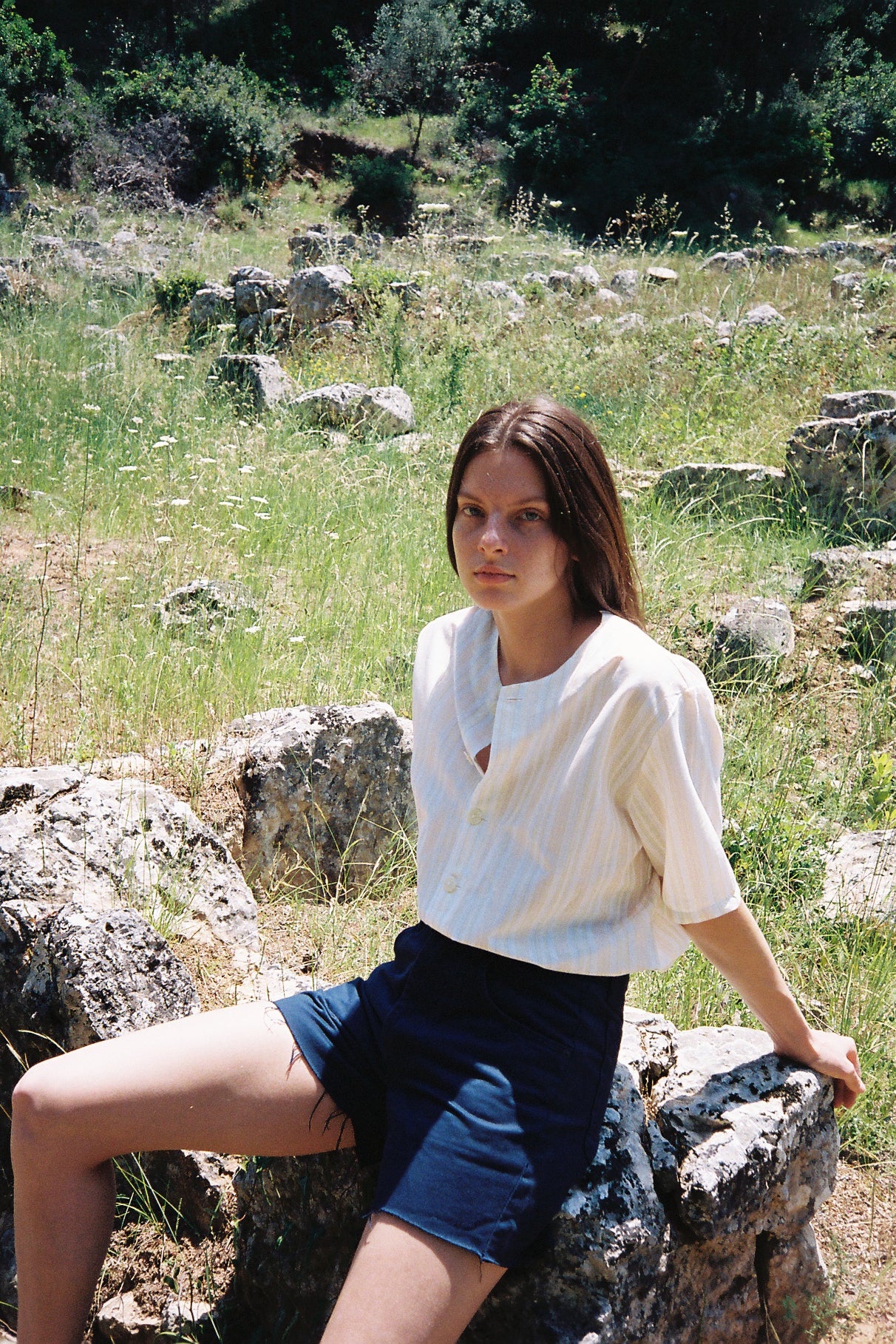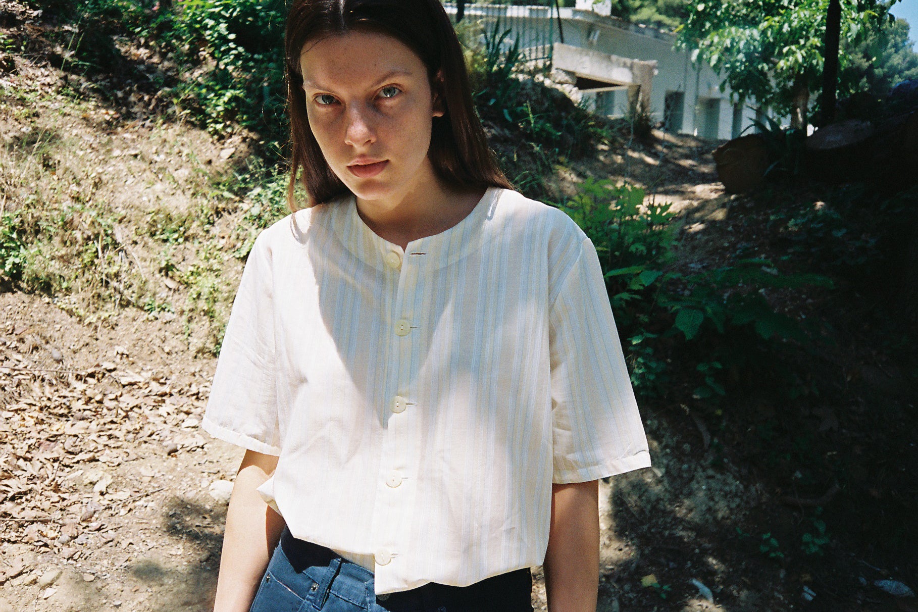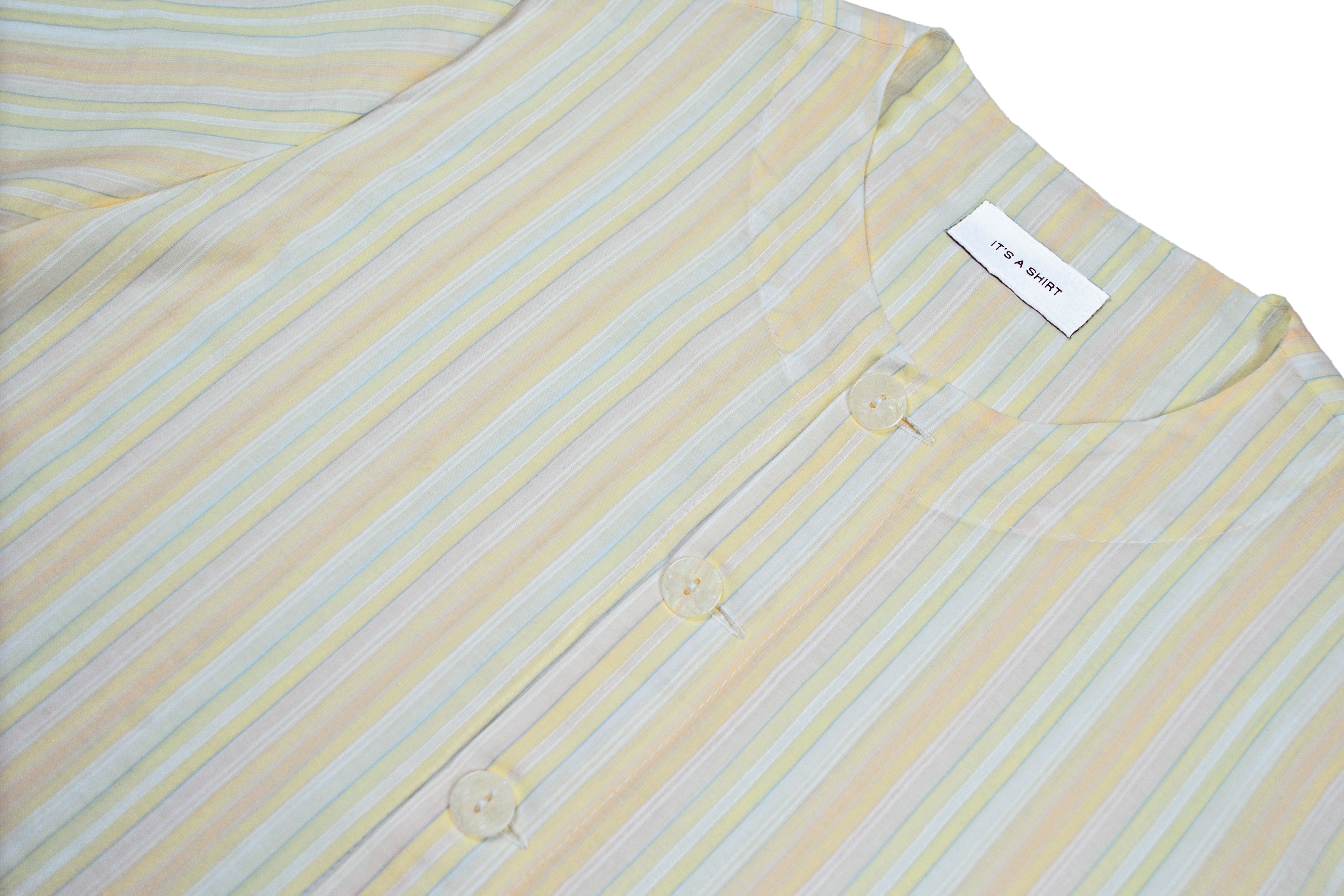 LIGHT AND BRIGHT is a unisex boxy-shaped short sleeve shirt made from light greek cotton/rayon with stripes in pastel shades. The shirt has no collar and is finished with white bone buttons. Each garment has been produced and curated in our house in Athens. This shirt is limited and we never do restocks.
