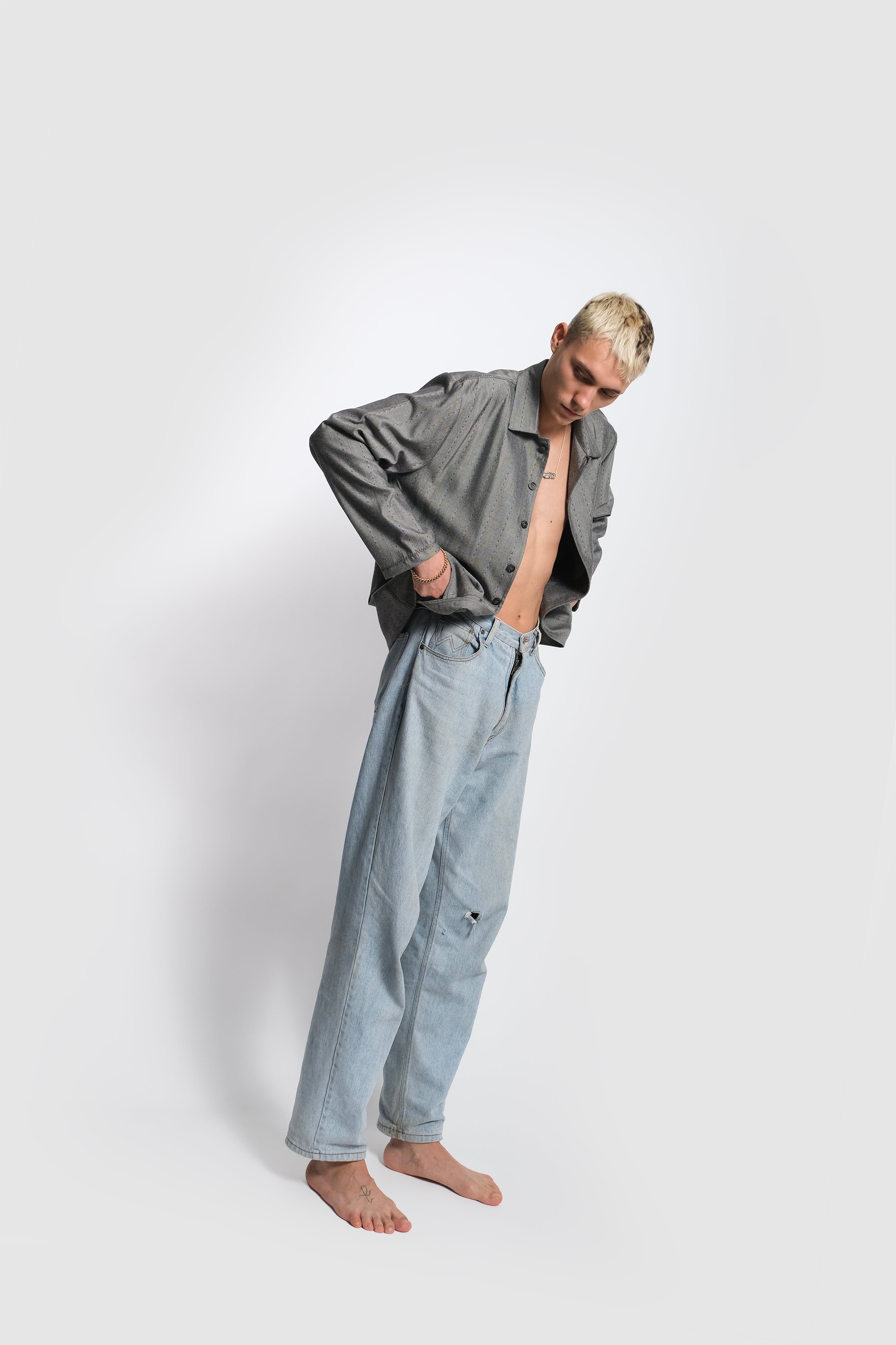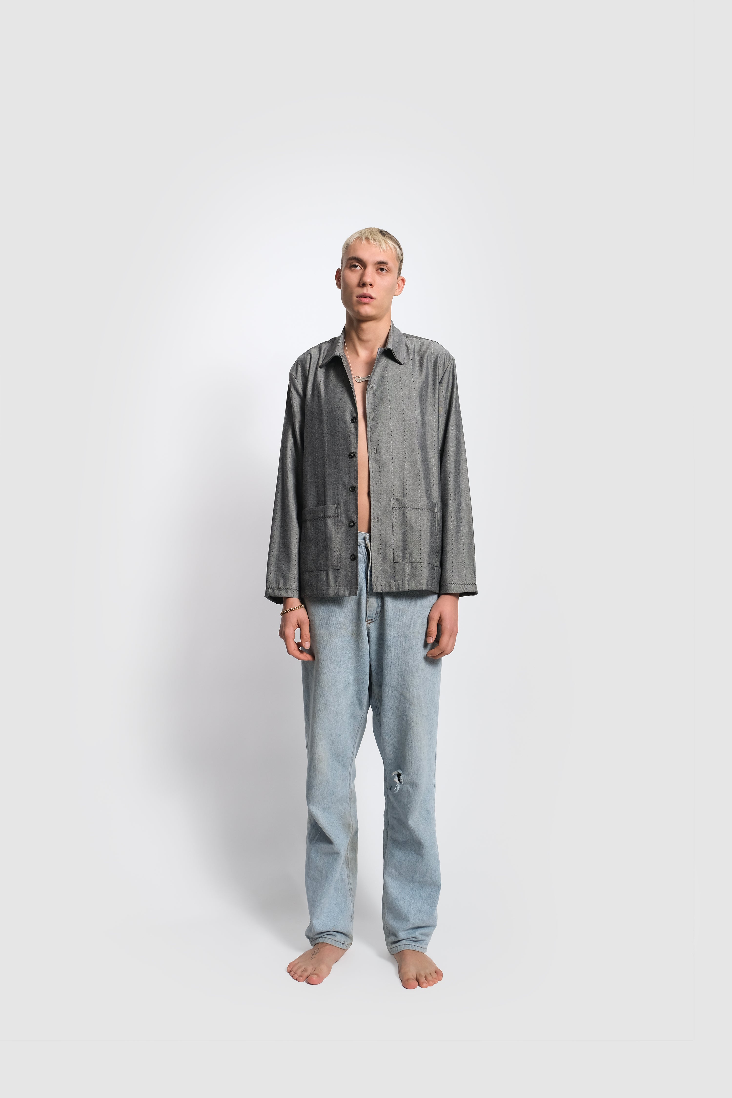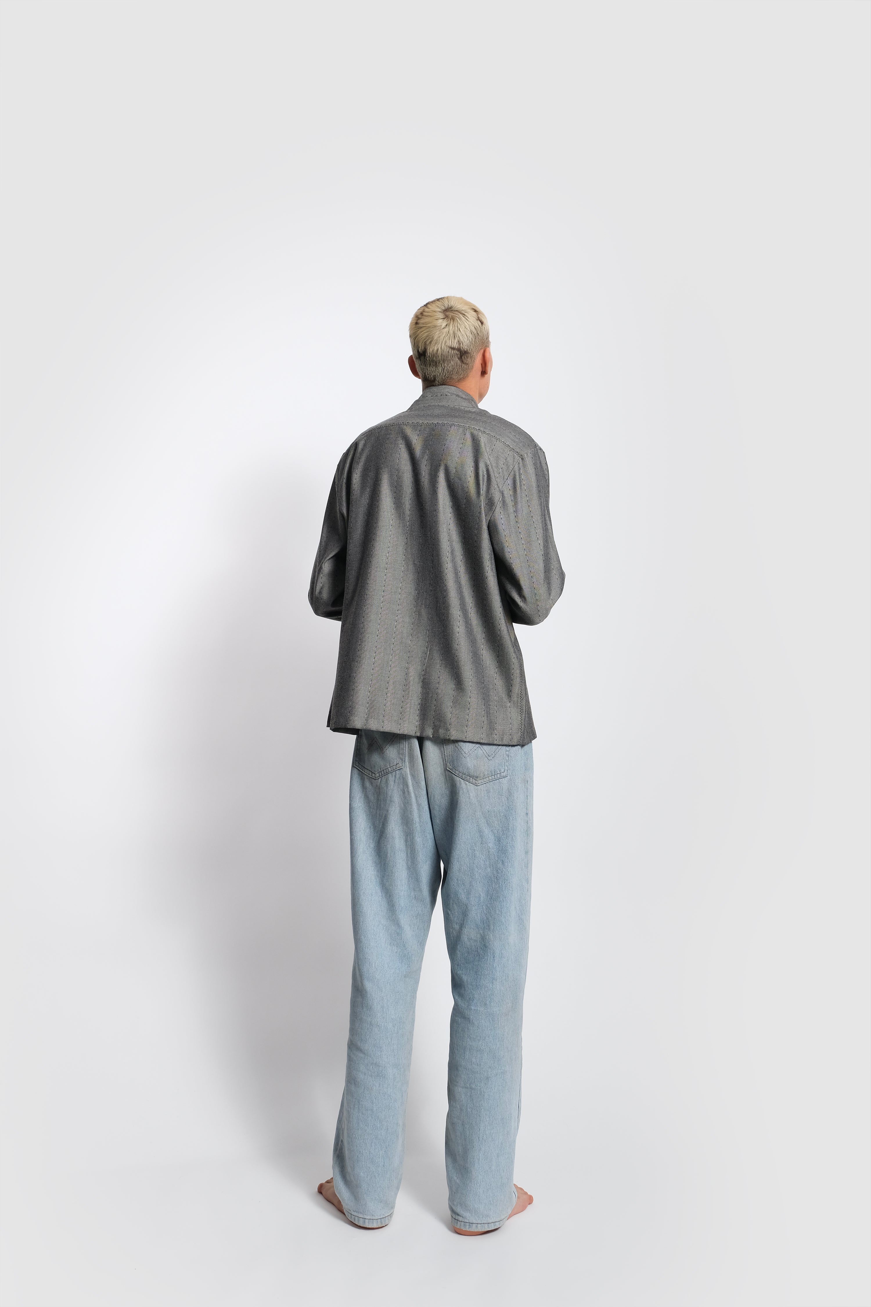 Old Fashioned is a long sleeve unisex shirt that owns a straight-formal fit. Its cutaway collar can either be buttoned up or left wide open. Crafted in a premium light wool/cashmere from Italy, the garment can stand alone or be layered as an over shirt. There are two front pockets alongside its surface as well as contrast zig zag stitching as embellishment.