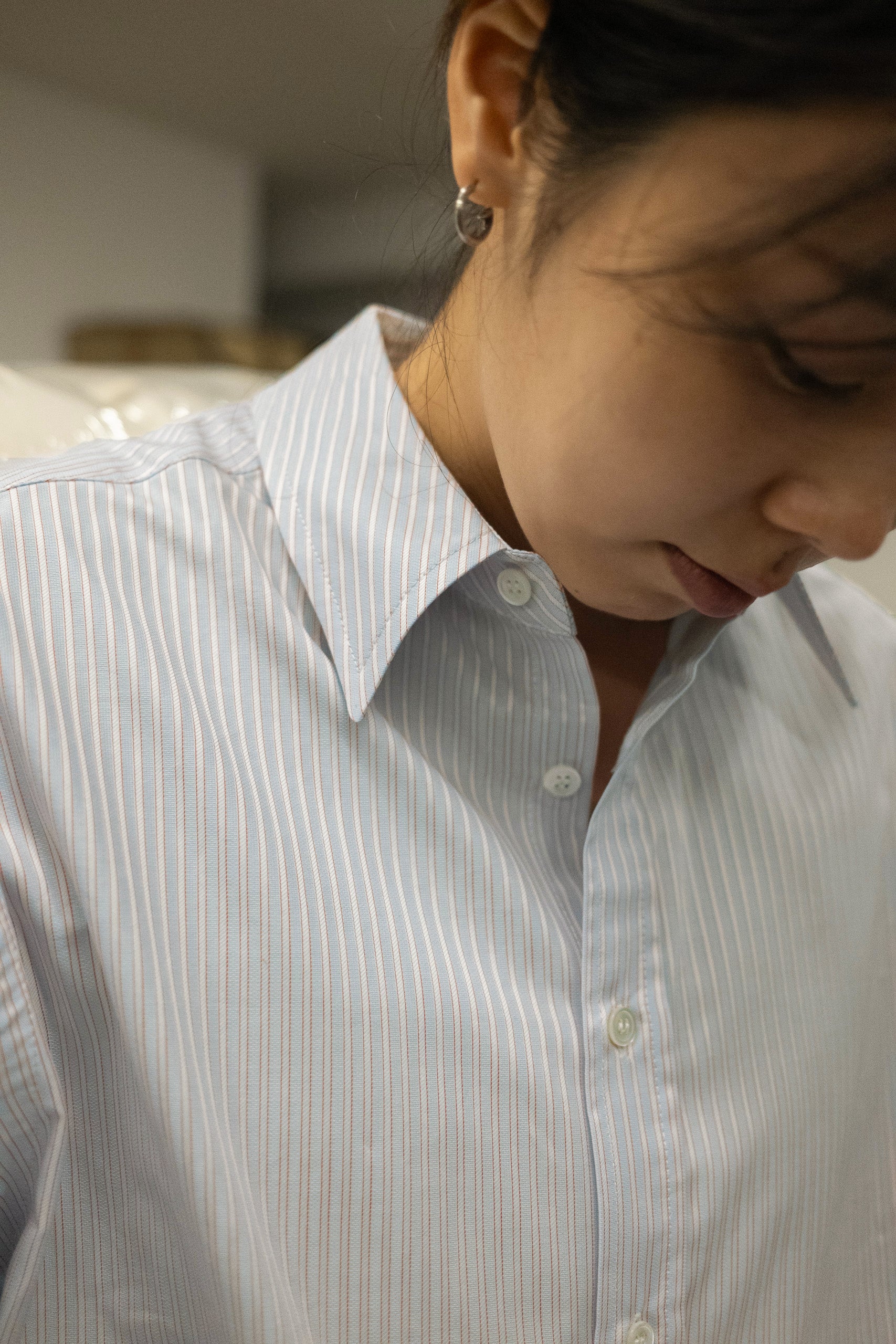 Our timeless long-sleeve unisex classic shirt features a contemporary fit that strikes the perfect balance between relaxed and refined, making it an ideal companion for any occasion throughout the day or even the year. Crafted from shiny, woven, dead stock Italian cotton, it owns delicate red and white stripes and is elegantly finished with natural mother or pearl buttons. Each garment is crafted in our family-run workshop, where quality and care shape every shirt we produce. Designed for lasting wear, the CELEBRATION Classic is a very limited edition shirt for those who twist the classic into playful and distinctive.