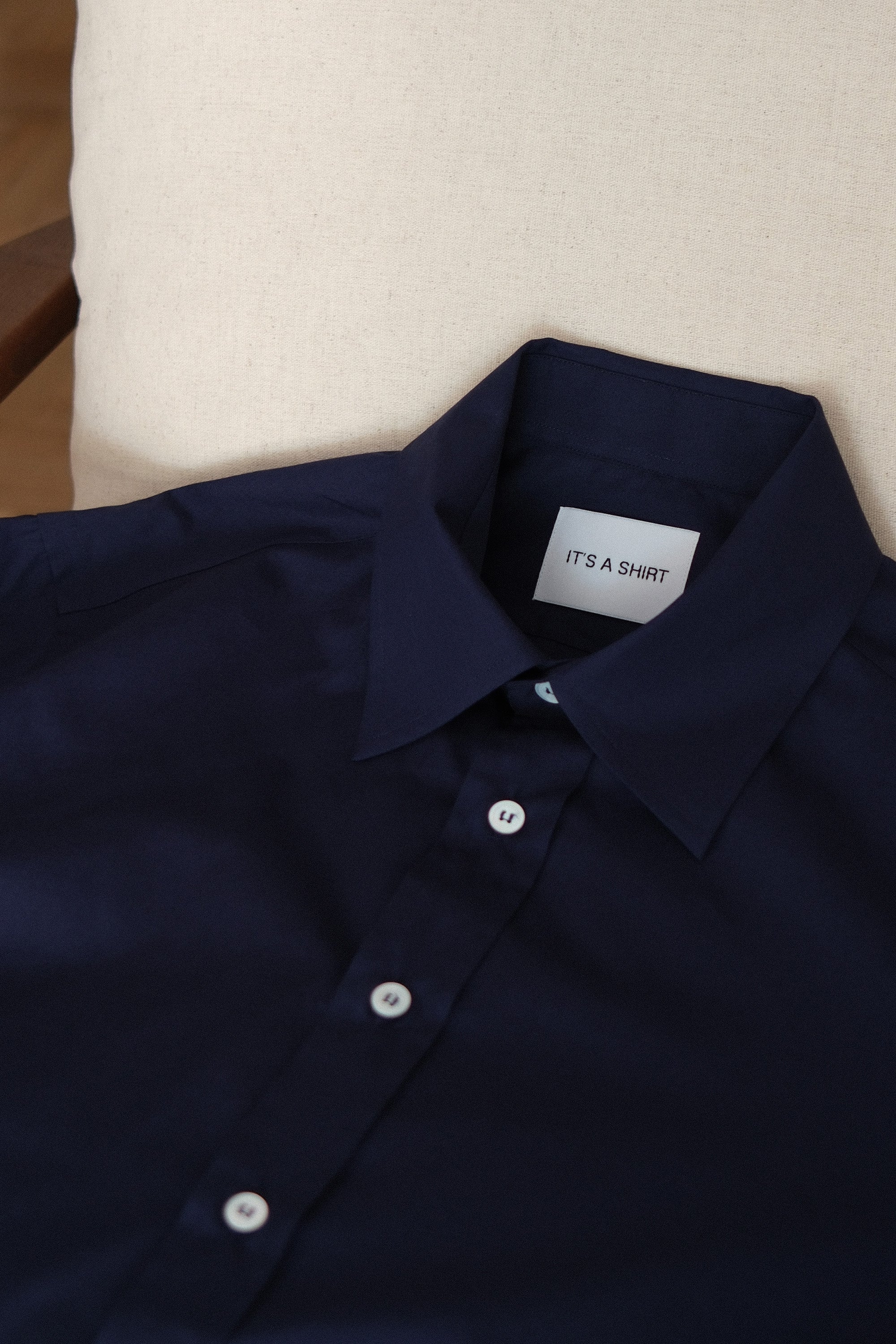 Fabric details: premium Italian poplin in navy blue colour, 100% cotton