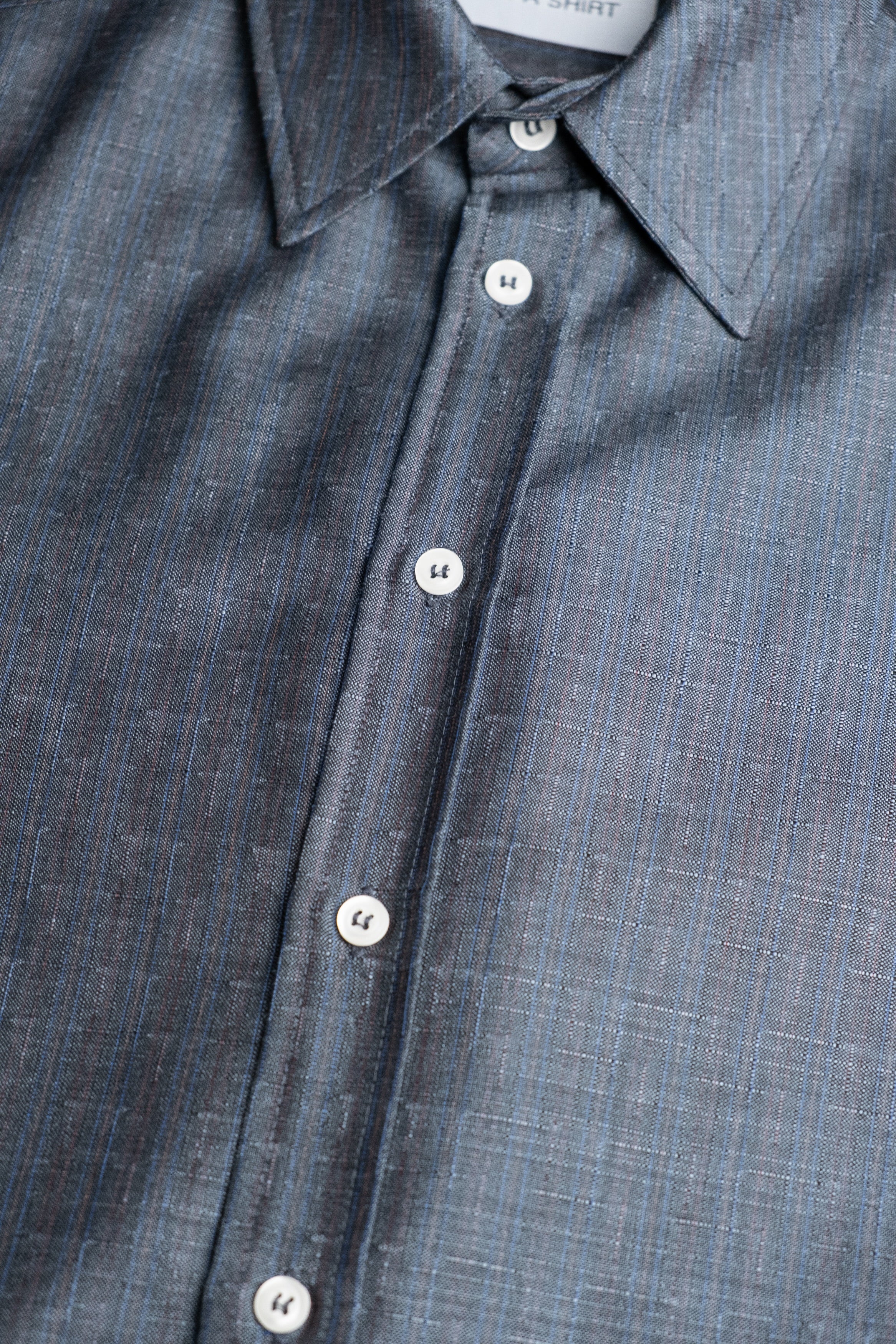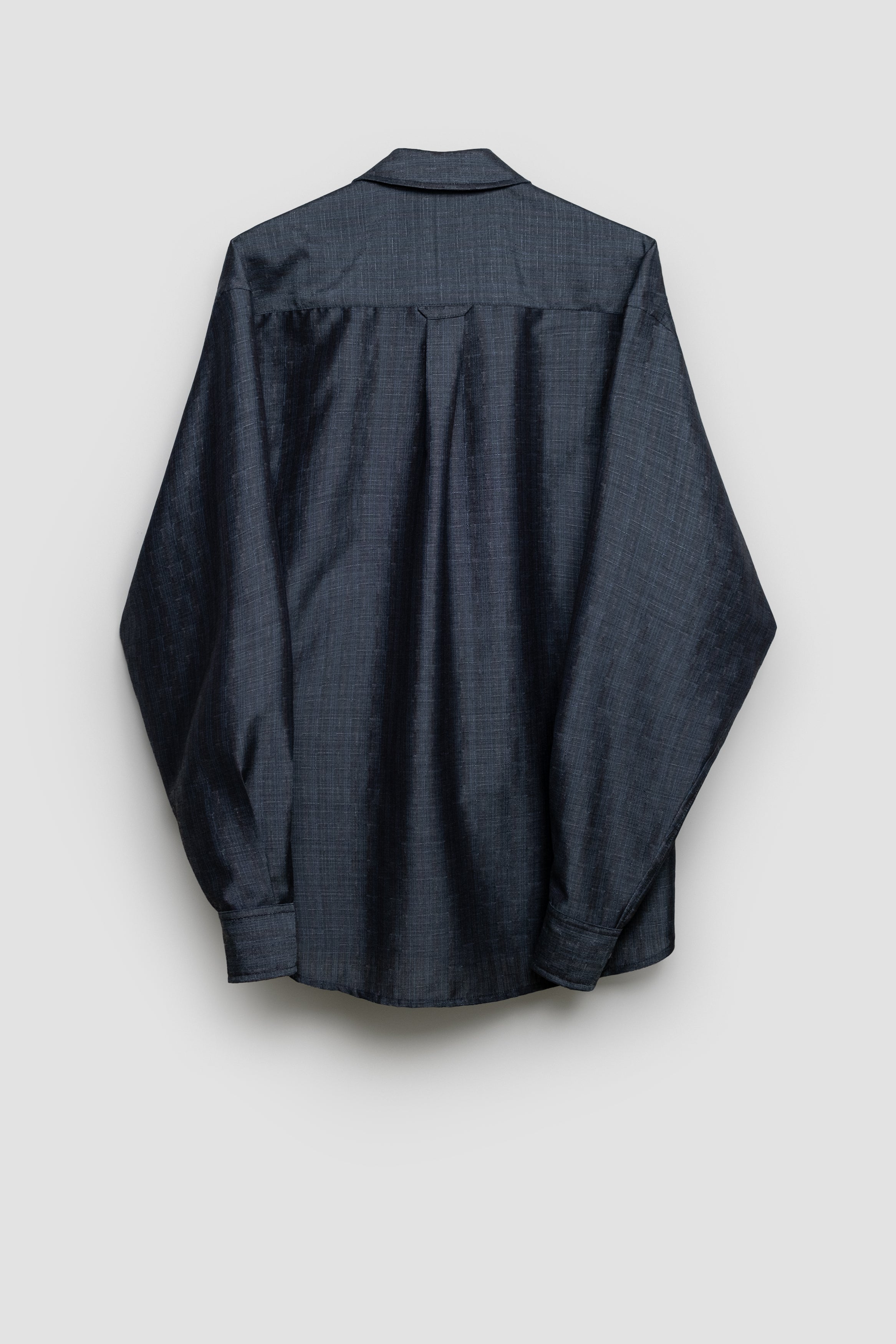 Crafted from an exceptional shiny mohair&wool dead-stock fabric sourced in Athens, Dusk till Dawn shapes a sleek silhouette and is beautifully finished with white matte bone buttons. Each shirt is produced in our family-run workshop, ensuring quality and care in every piece. Designed for durability, this versatile shirt is perfect for any season. Only three pieces available!