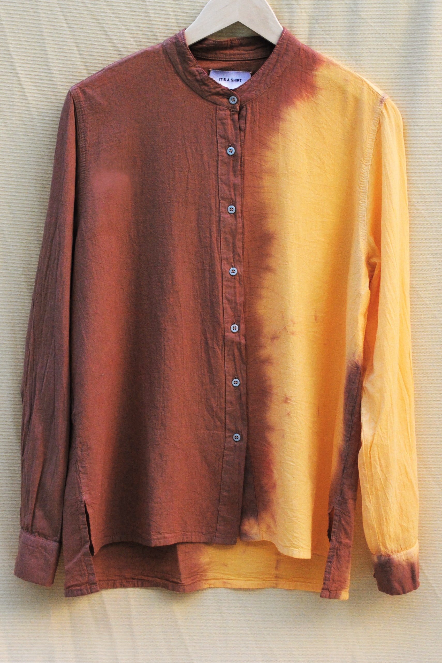 FORMA no.16 is a unisex -one-off- long sleeve shirt made from greek cotton produced in Nafpaktos. This garment used to be in peach colour and it has been re-dyed and re-constructed for FORMA exhibition which was cancelled due to the current circumstances. All the shirts of this series are different from each other and their number is indicated on their tag.