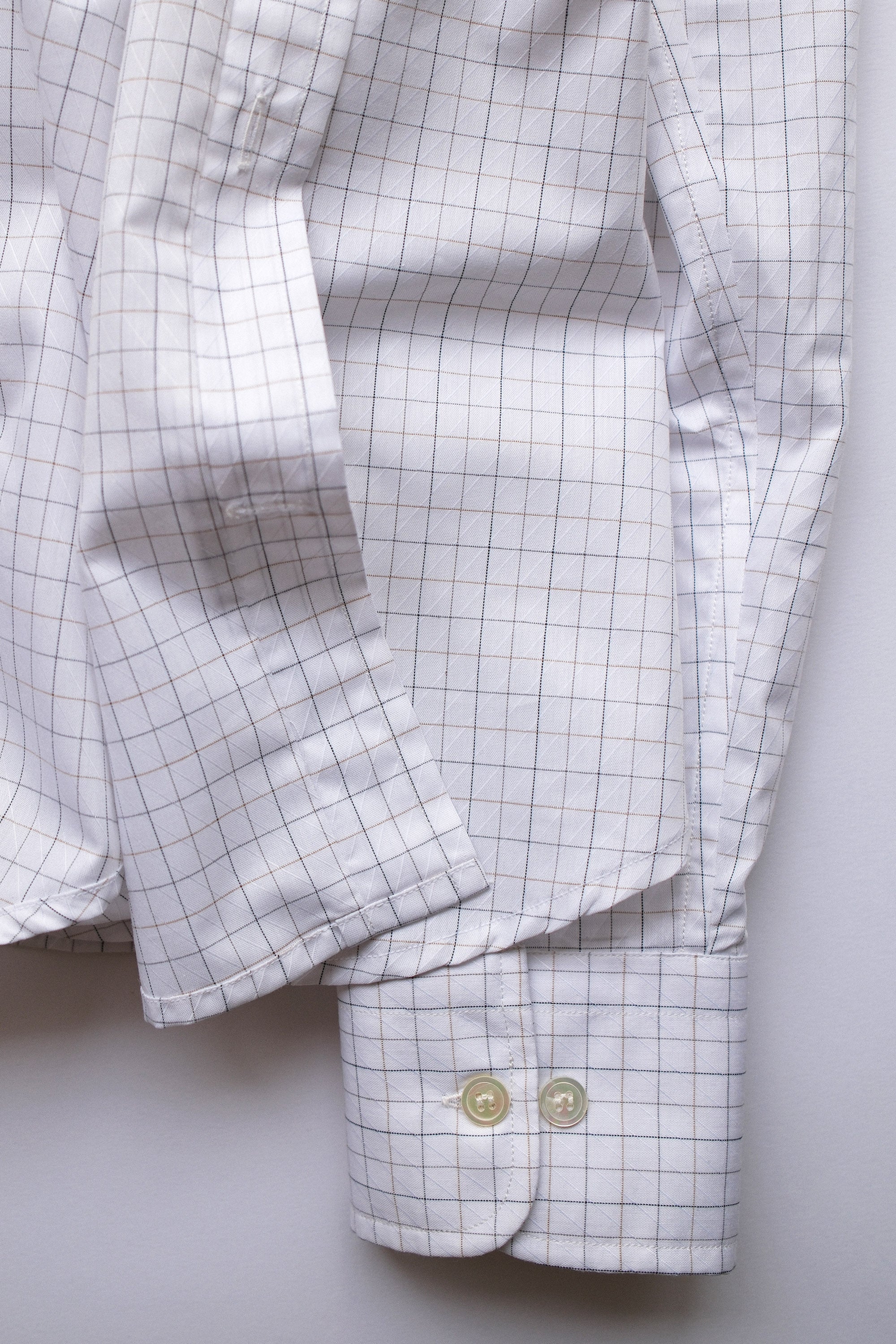 Fabric details: Dead stock premium Italian cotton with woven details and checks.