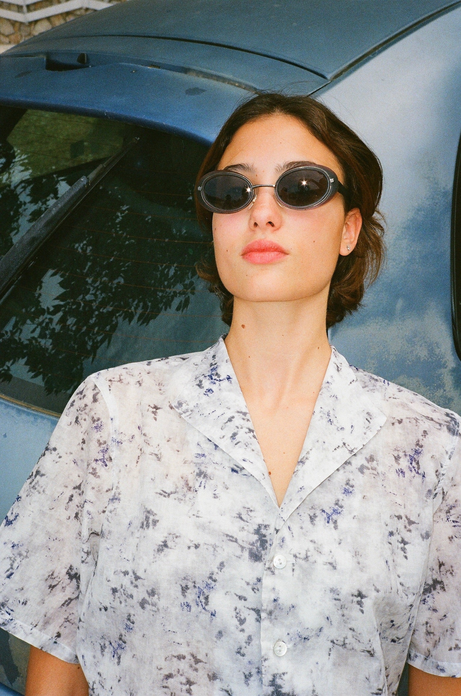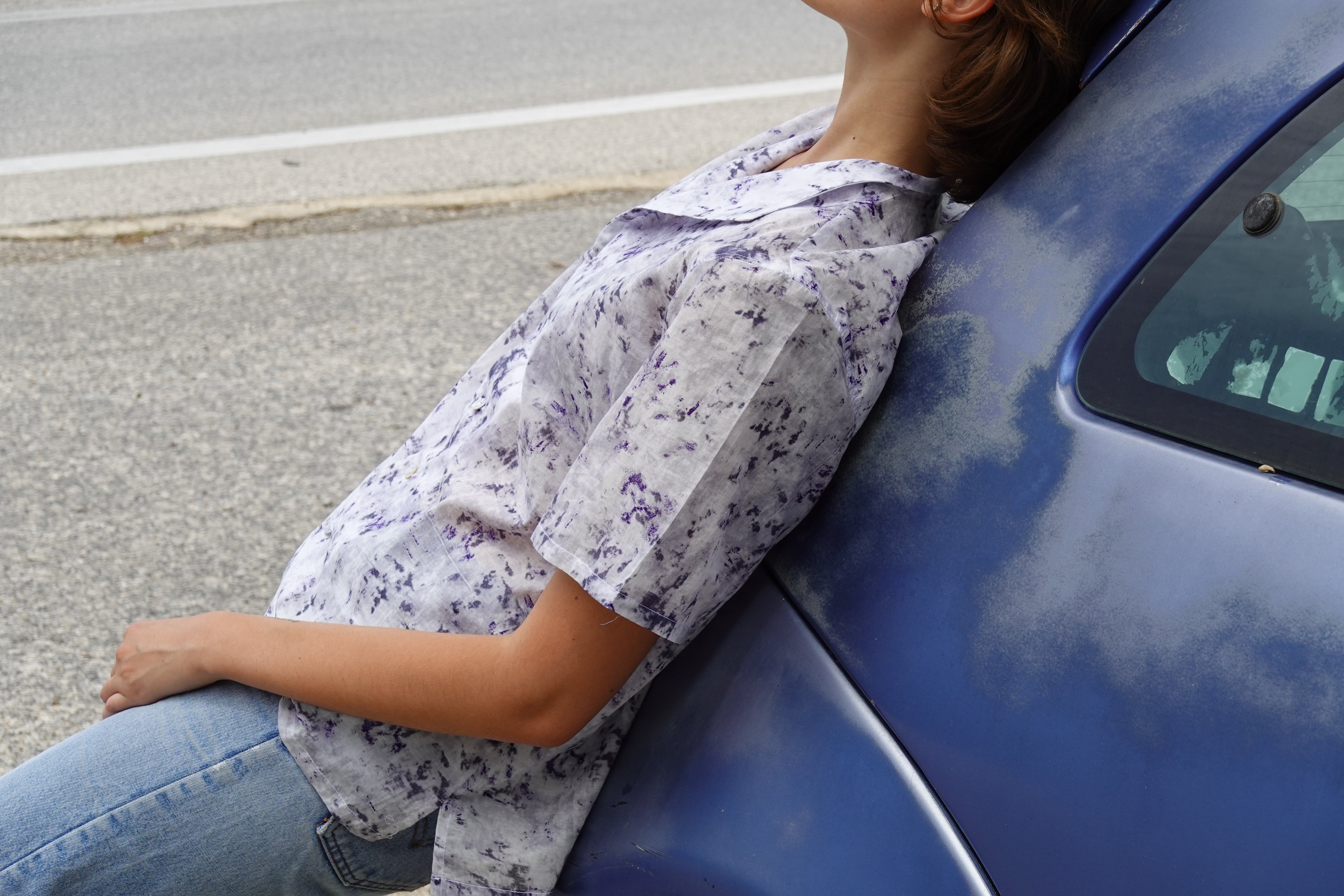 Potpourri is one of our short-sleeve shirts. The main parts of the shirt end up to shape a collar around the neck which reminds us of a folder. The garment is crafted from voile lightweight printed cotton and is finished with middle-sized dead-stock buttons. It is light and easy-to-wear yet delicate letting the skin breathe during the warm days. Each and every shirt is produced in our small-family-production space.