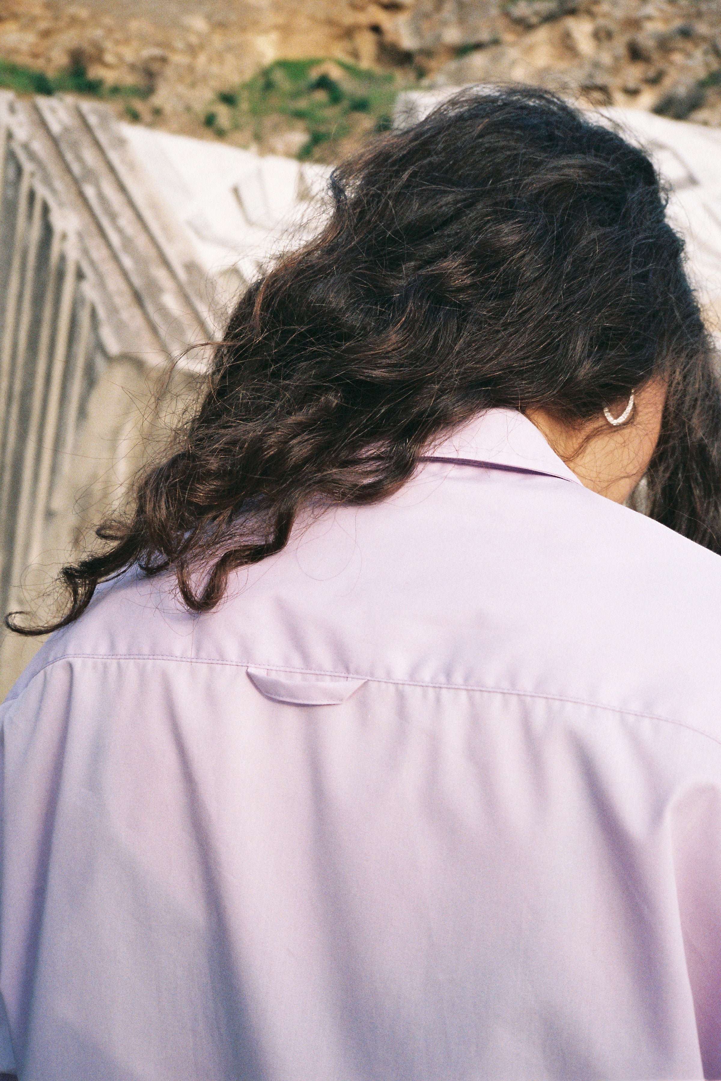 Lilac roller belongs to our CLASSICS collection, it's a long sleeve timeless shirt with a unisex cut and a contemporary twist. Through trials and errors we transformed the strict button down collar into a more playful version of it for any occasion. The fit is relaxed and the sleeves are quite loose. To create this garment we used premium quality poplin produced in north Italy. It is finished with natural mother of pearl medium sized buttons. Each and every shirt is produced in our small-family-production space. This garment is made to last and accompany you all the way.