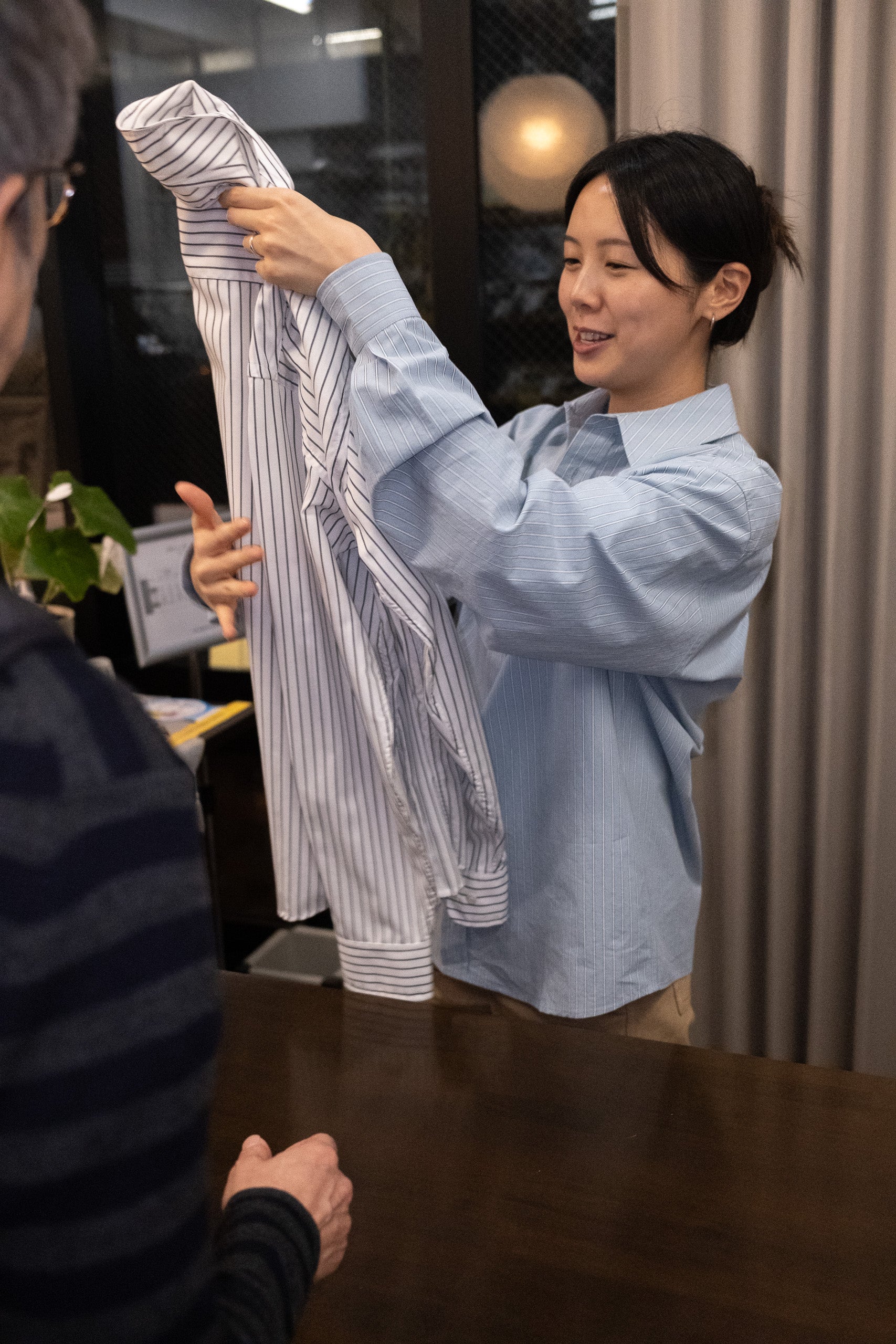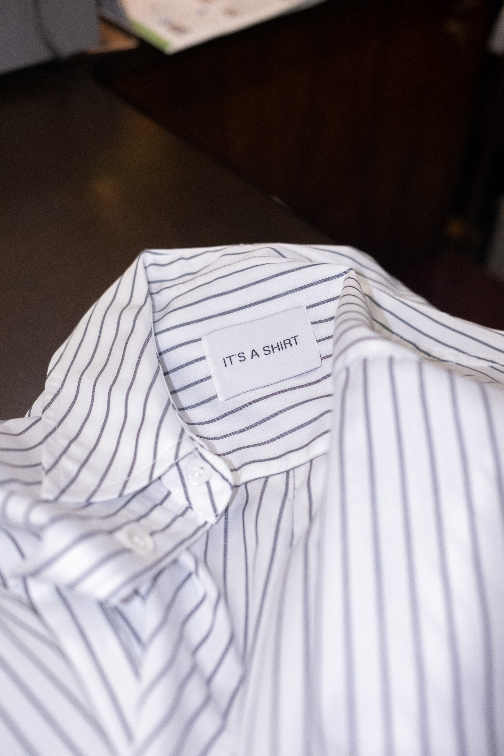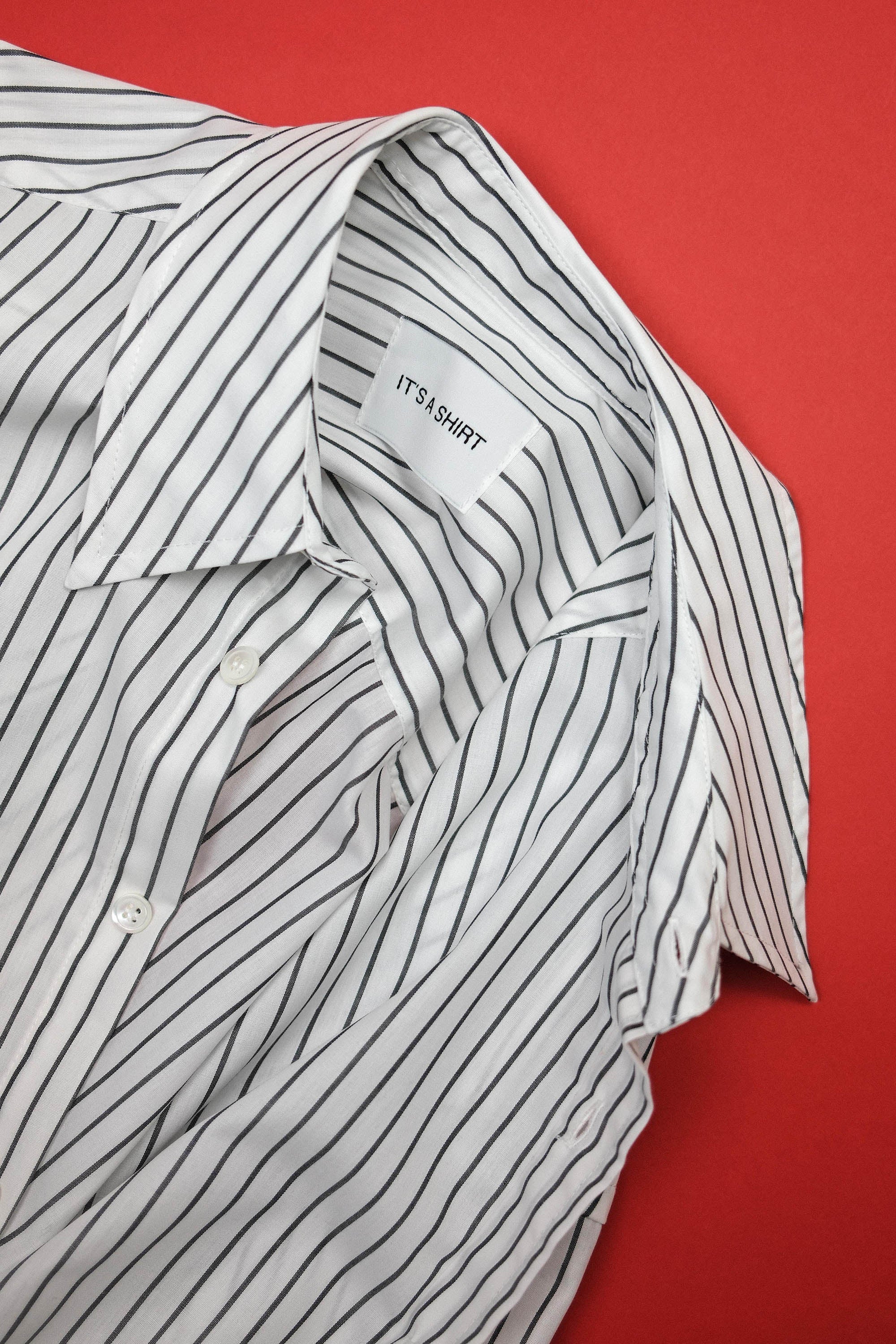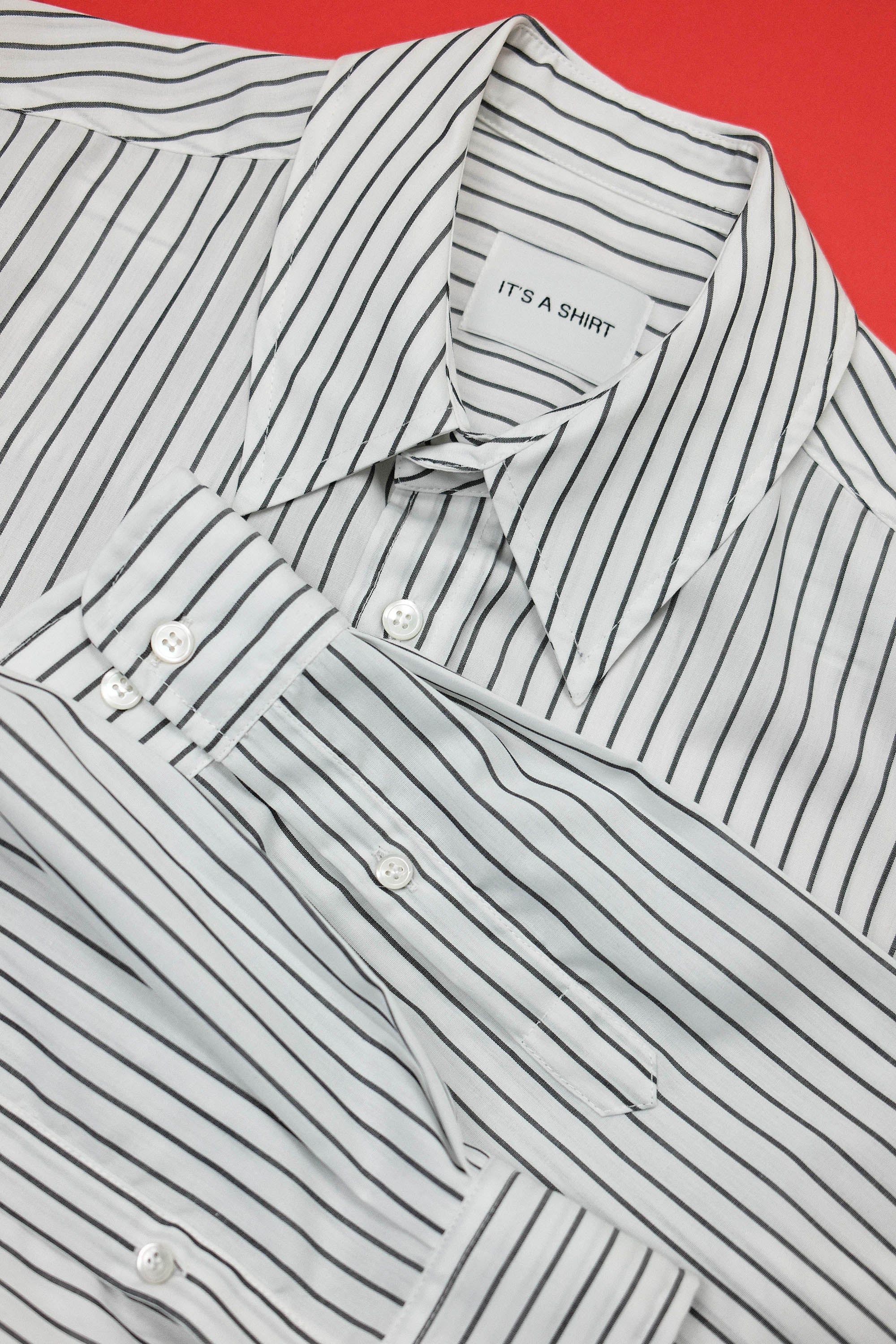 Our timeless long-sleeve unisex classic shirt features a contemporary fit that strikes the perfect balance between relaxed and refined, making it an ideal companion for any occasion throughout the day or even the year. Crafted from light Italian cotton, it owns dark grey stripes and is elegantly finished with natural mother or pearl buttons. Each garment is crafted in our family-run workshop, where quality and care shape every shirt we produce. Designed for lasting wear, the REUNION Classic is a limited edition piece for those who twist the classic into playful.